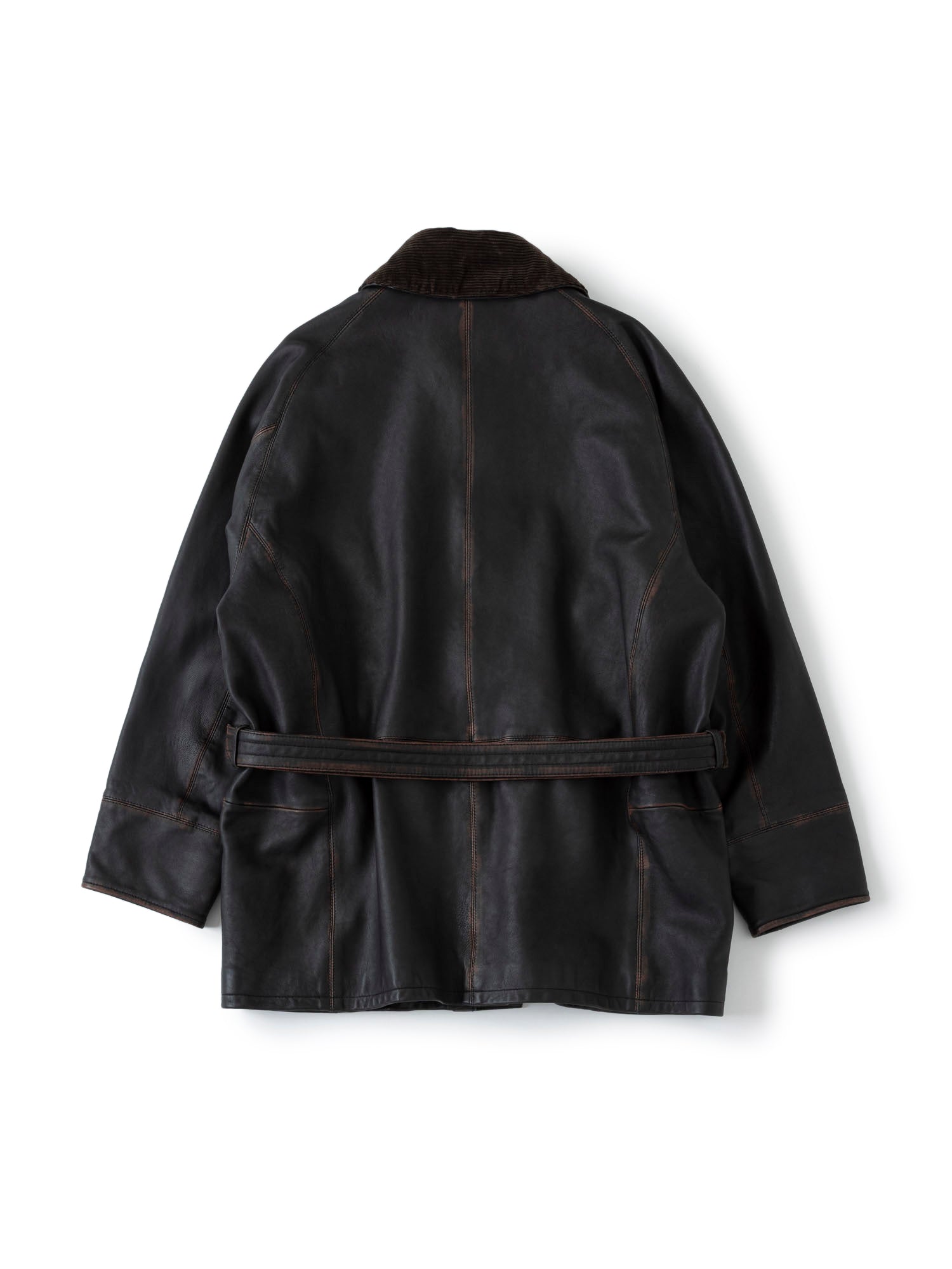 This jacket maintains the thickness of the raw hide while retaining the softness unique to lamb leather.