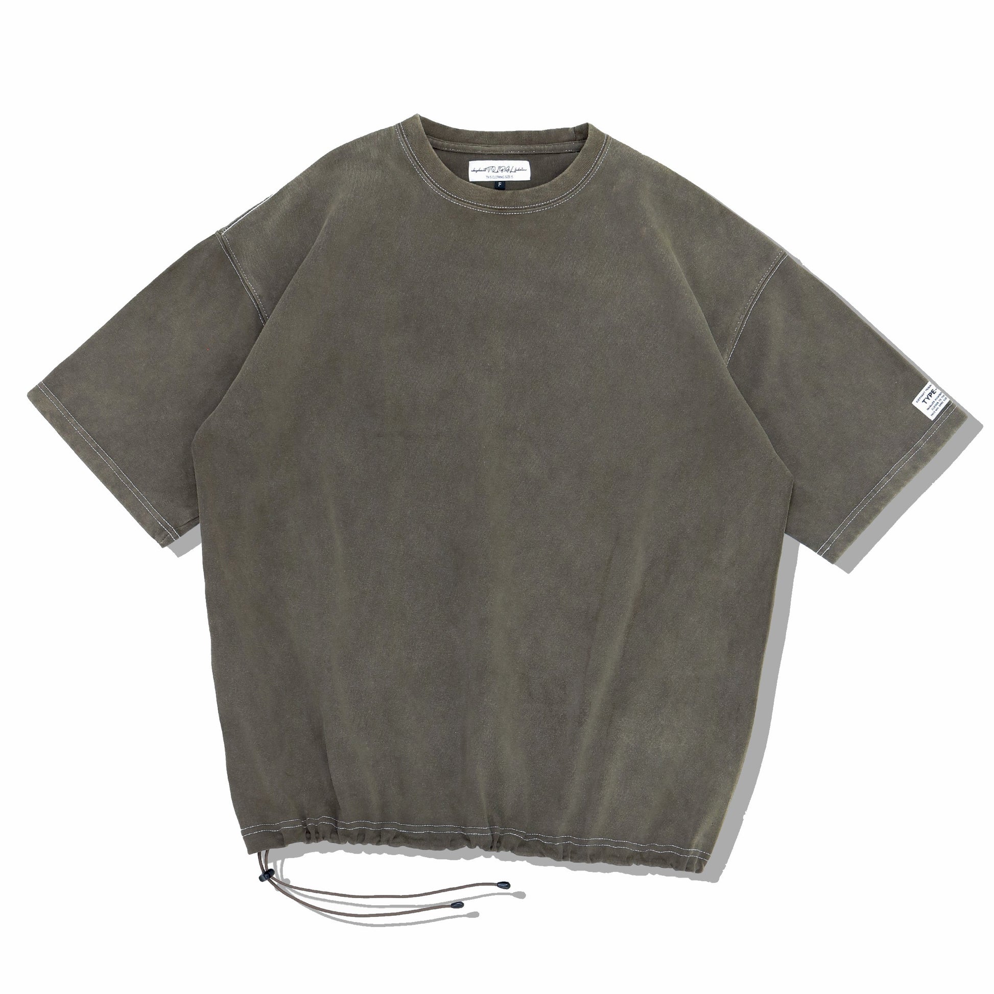 It features a boxy silhouette with a roomy body. After production, it's sulfur dyed and then treated with a nano-sized bleach mist for a subtle faded look.