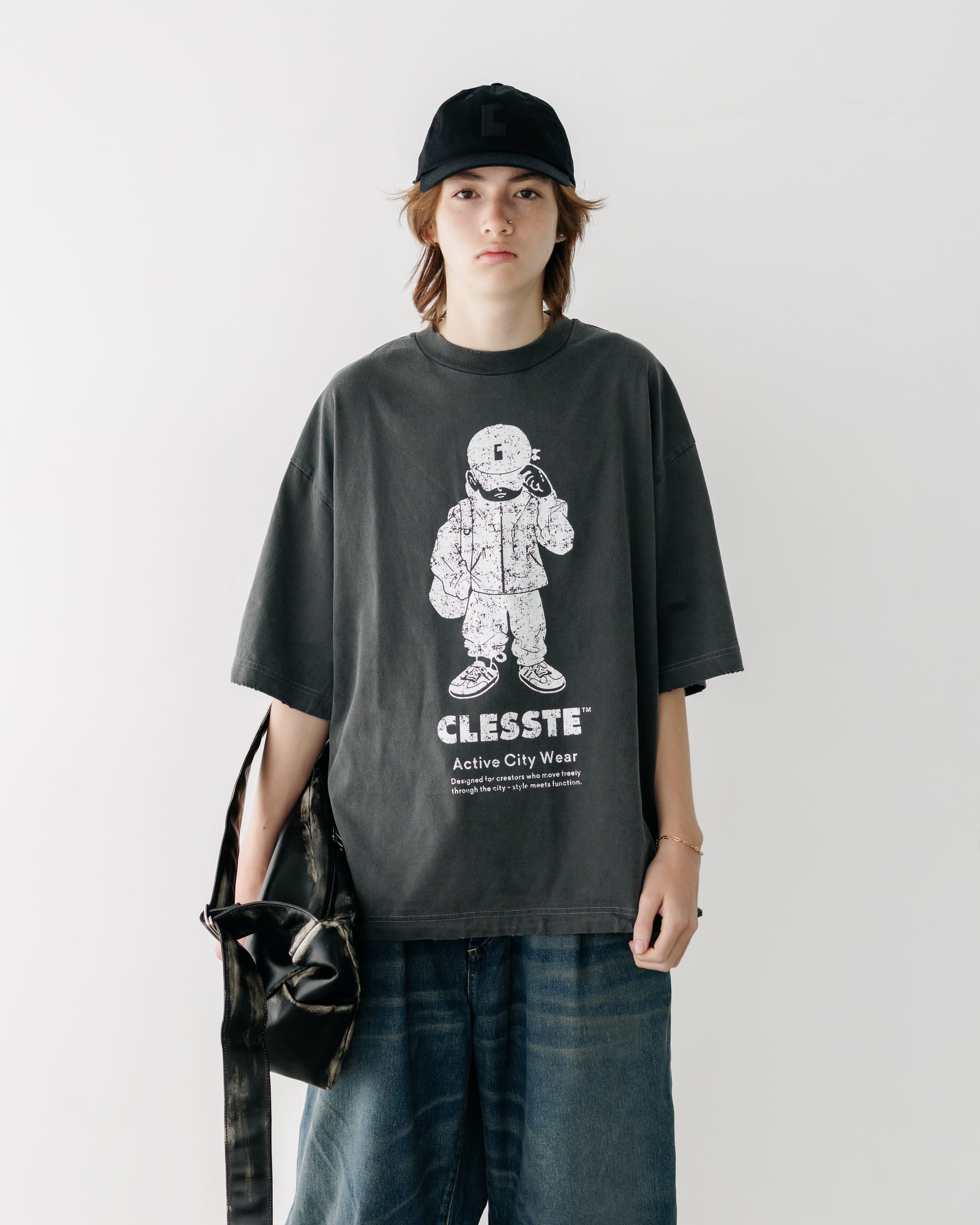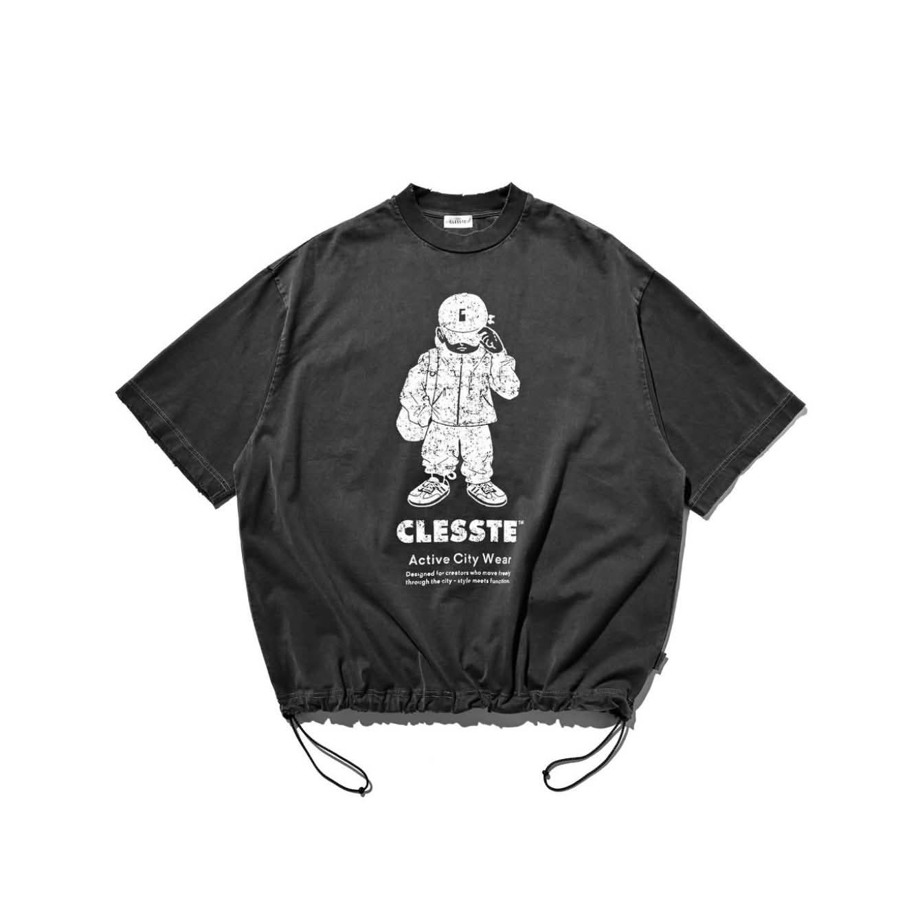 CLESSTE / 'Clesste Boy' Pigment Dyed S/S T-Shirt With Drawstrings (Faded Black)
