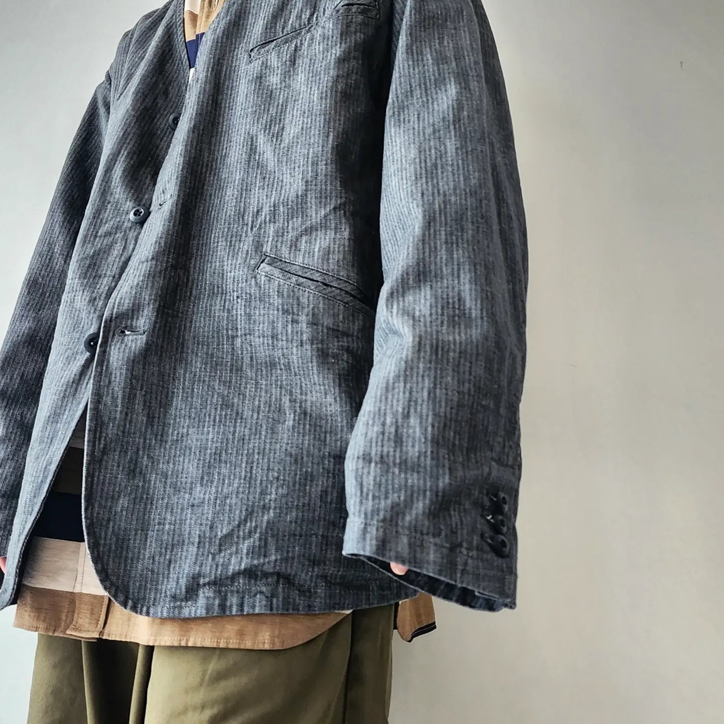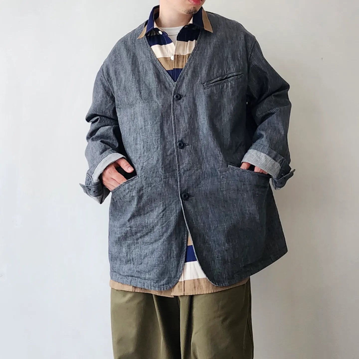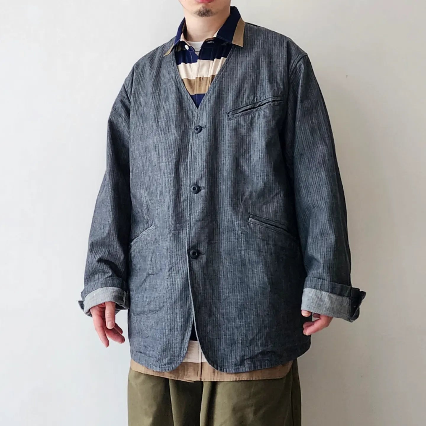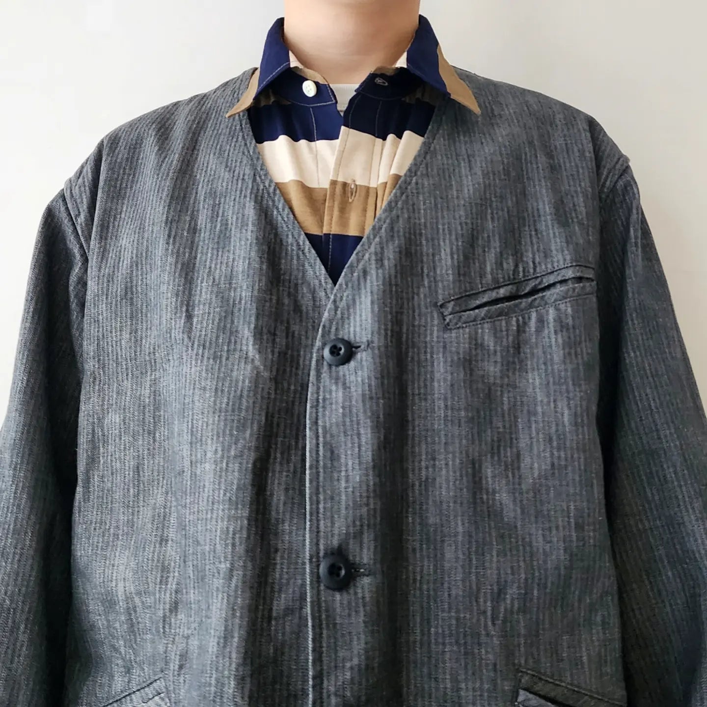 10.5oz. Cotton Herringbone Denim Cloth 3 Inside Pocket Collarless Jacket