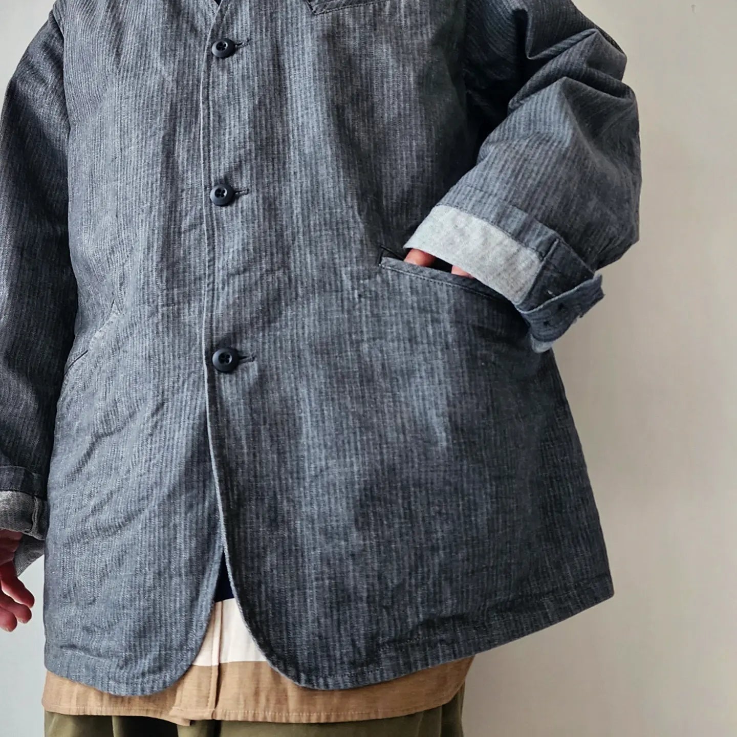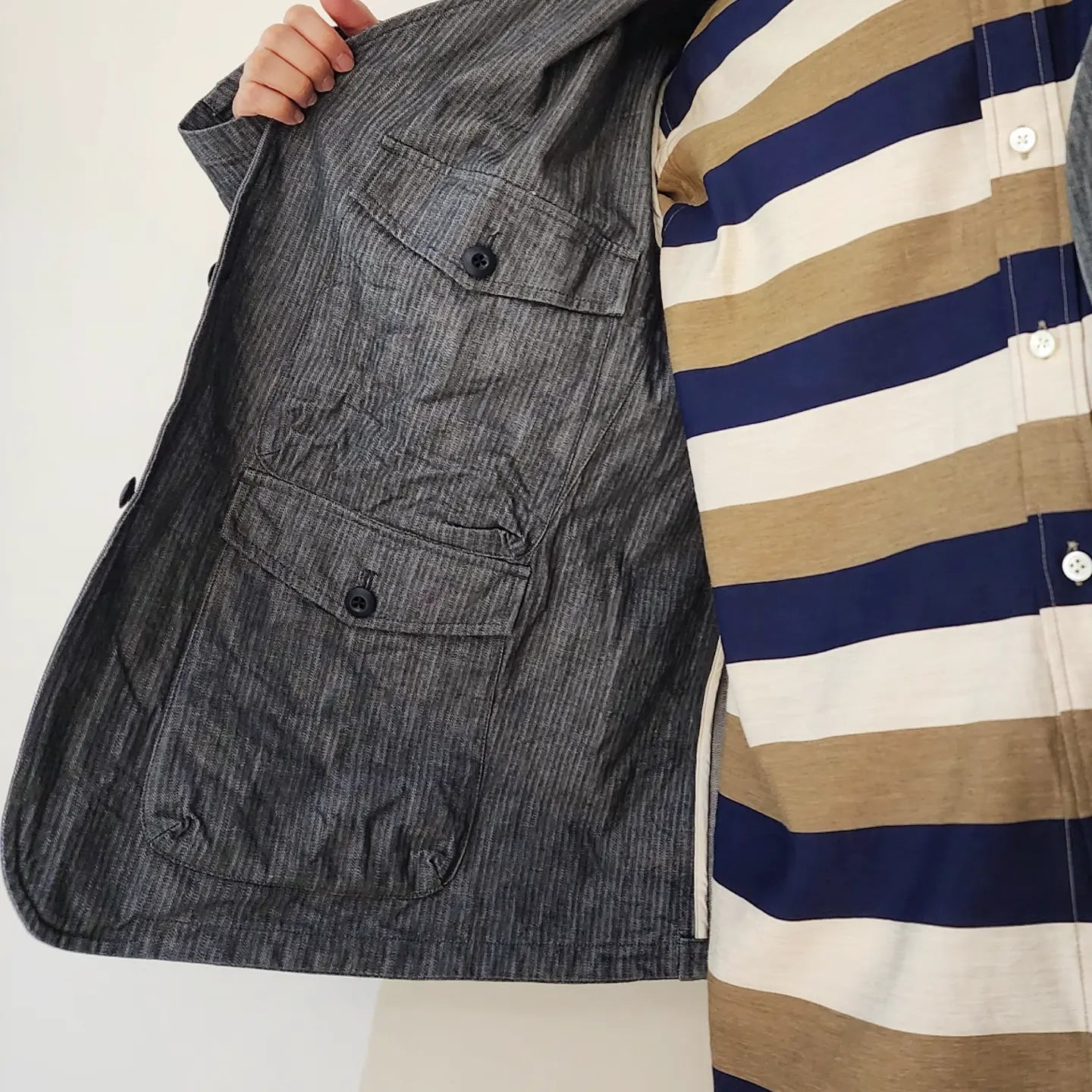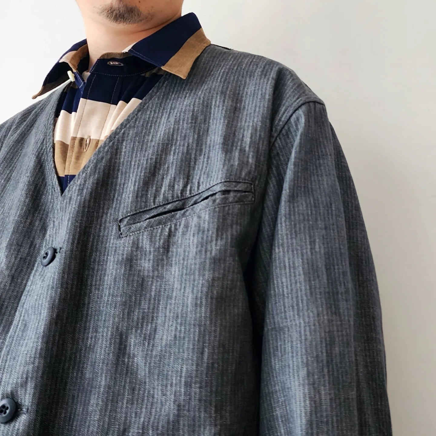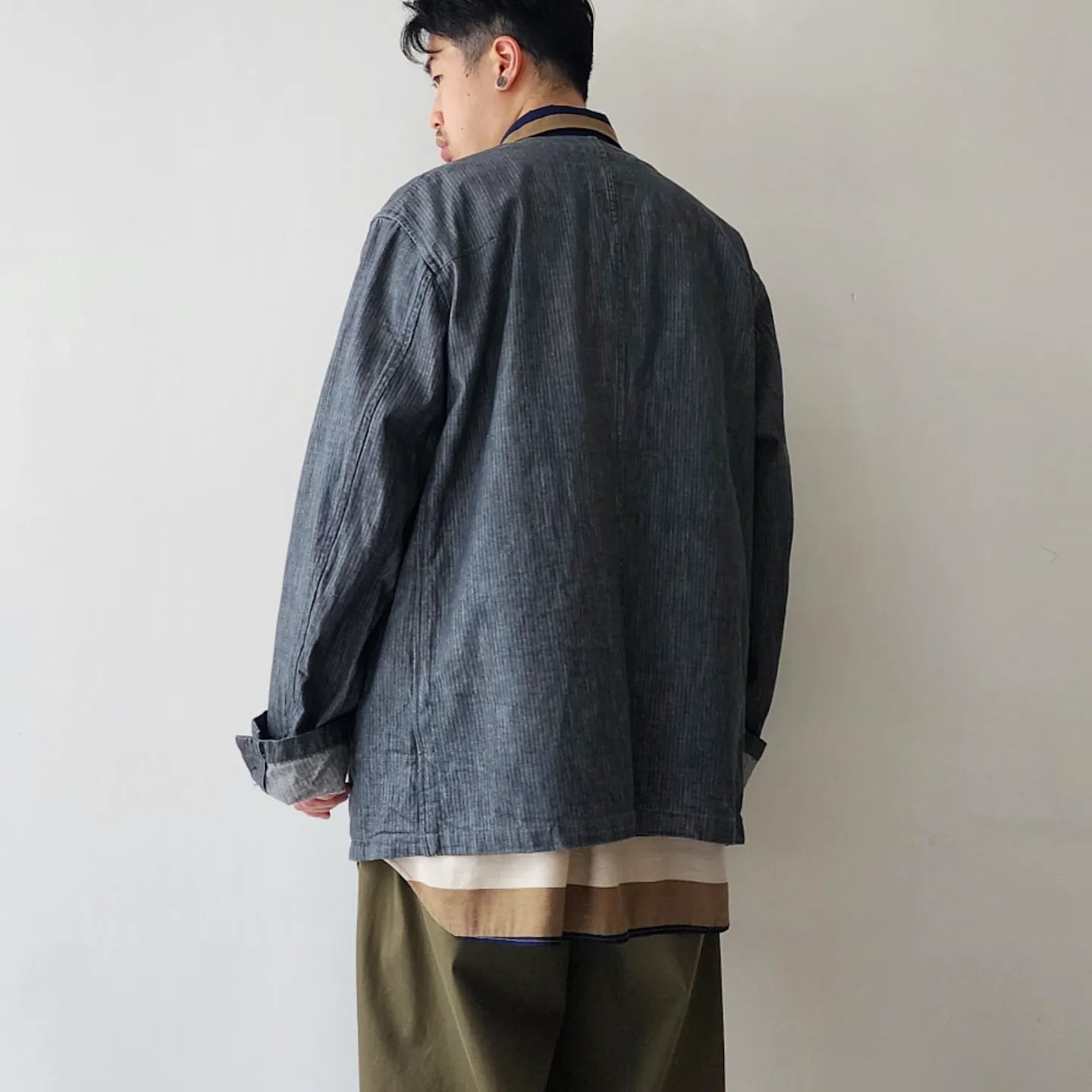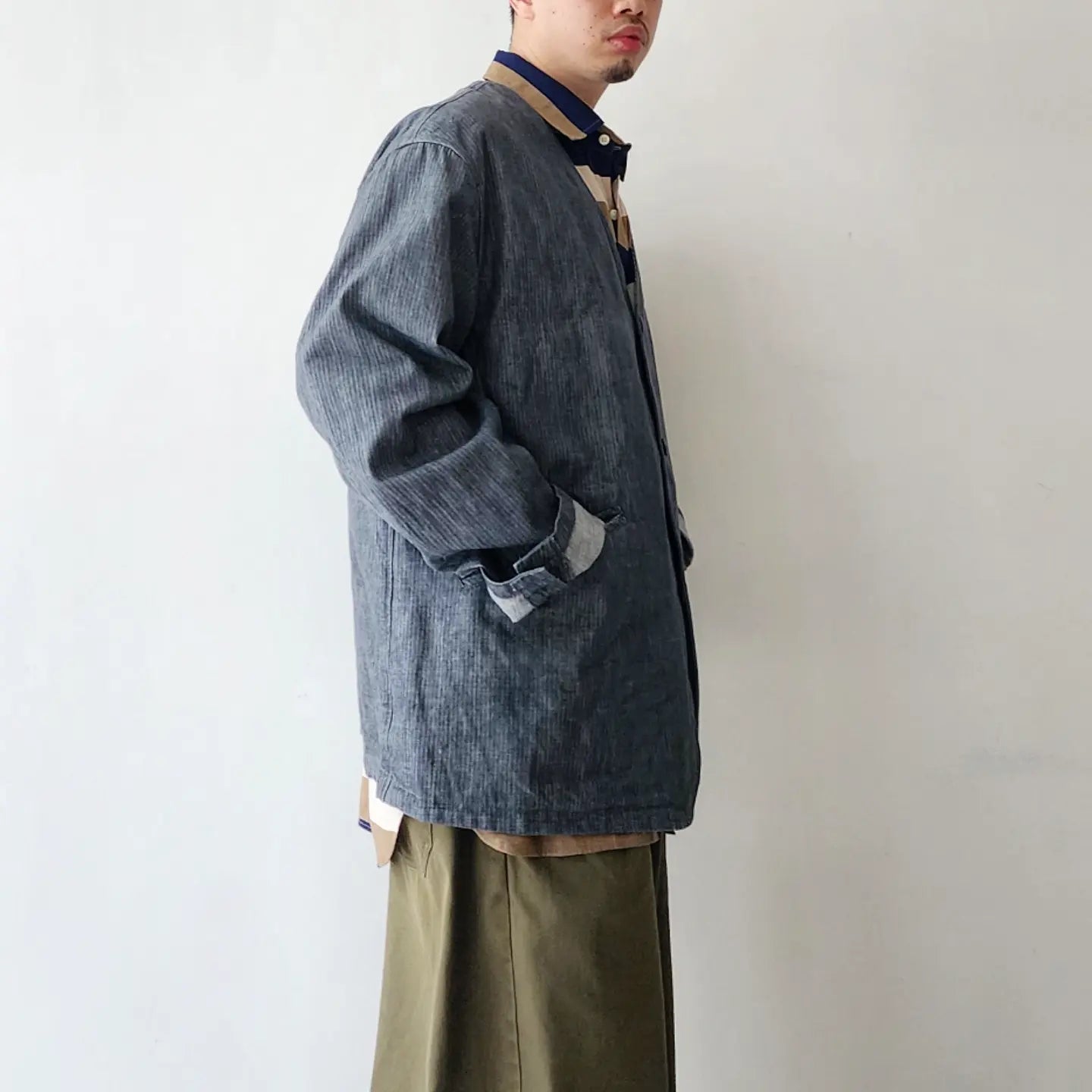 10.5oz. Cotton Herringbone Denim Cloth 3 Inside Pocket Collarless Jacket