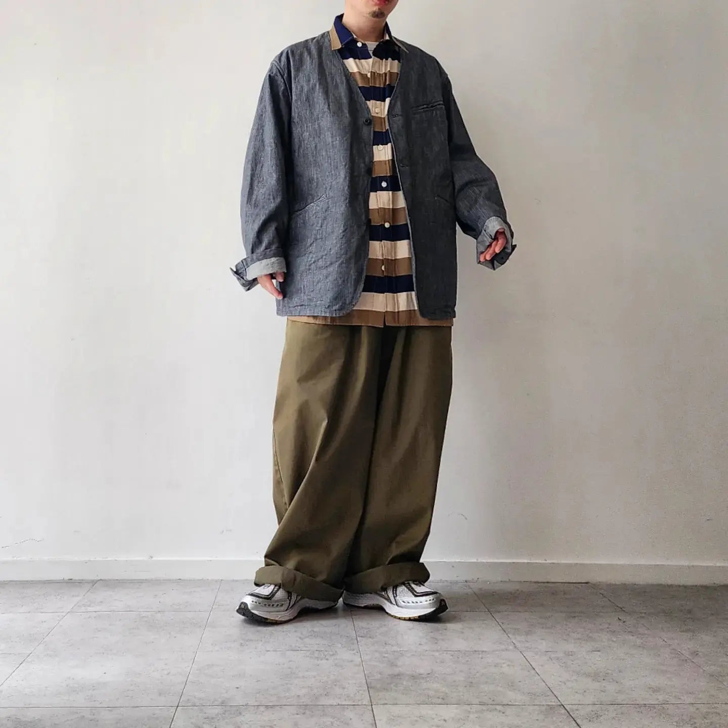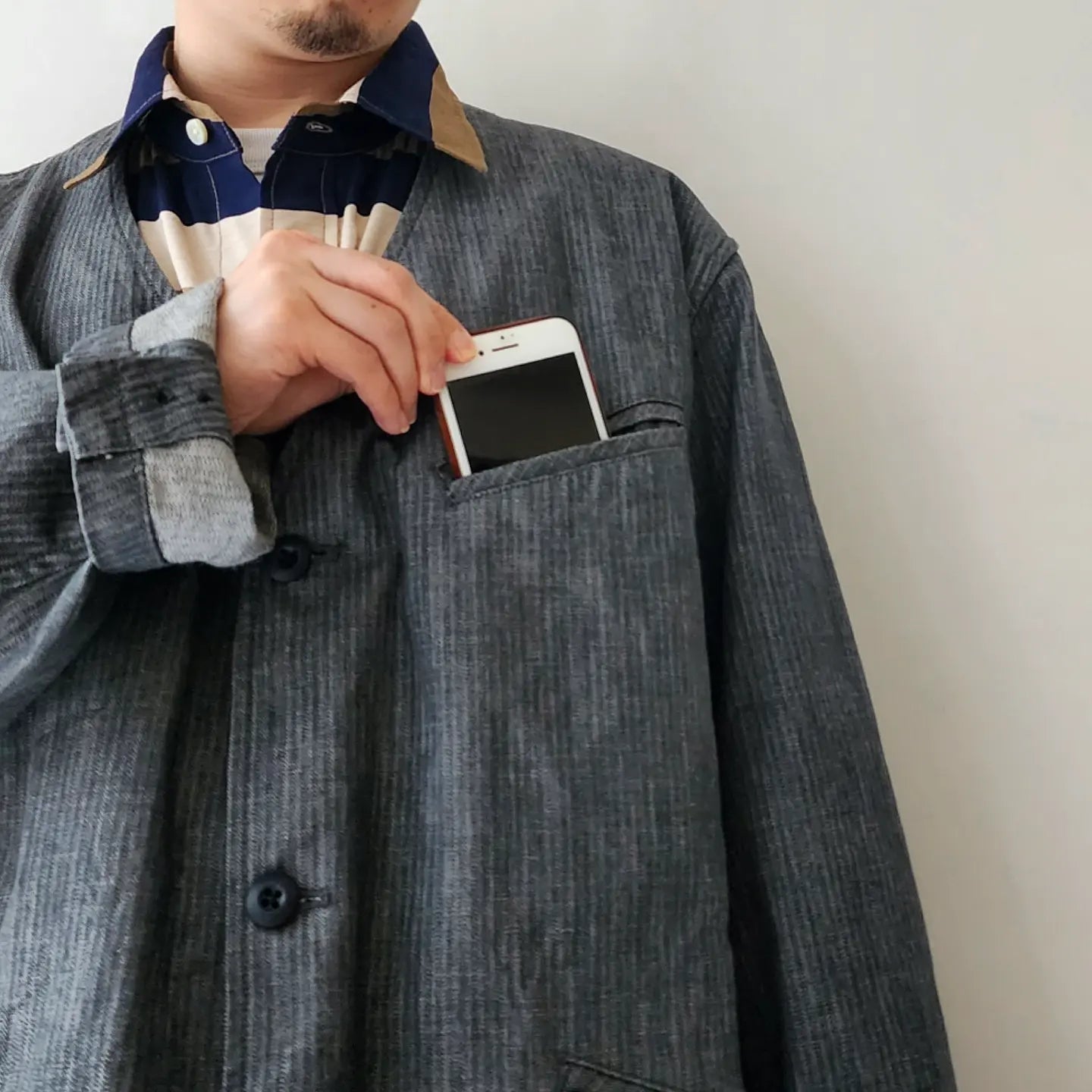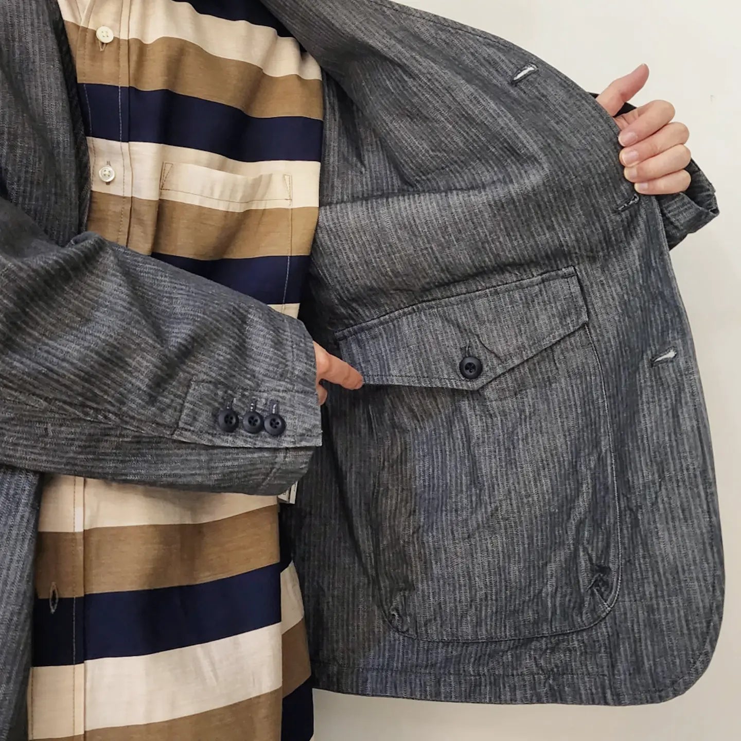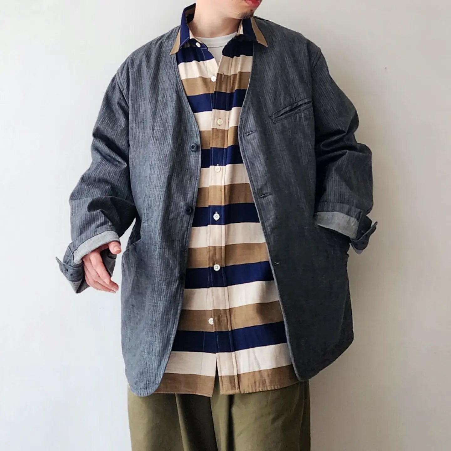 10.5oz. Cotton Herringbone Denim Cloth 3 Inside Pocket Collarless Jacket