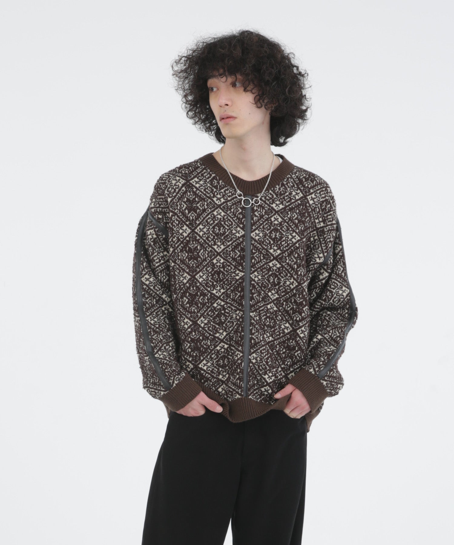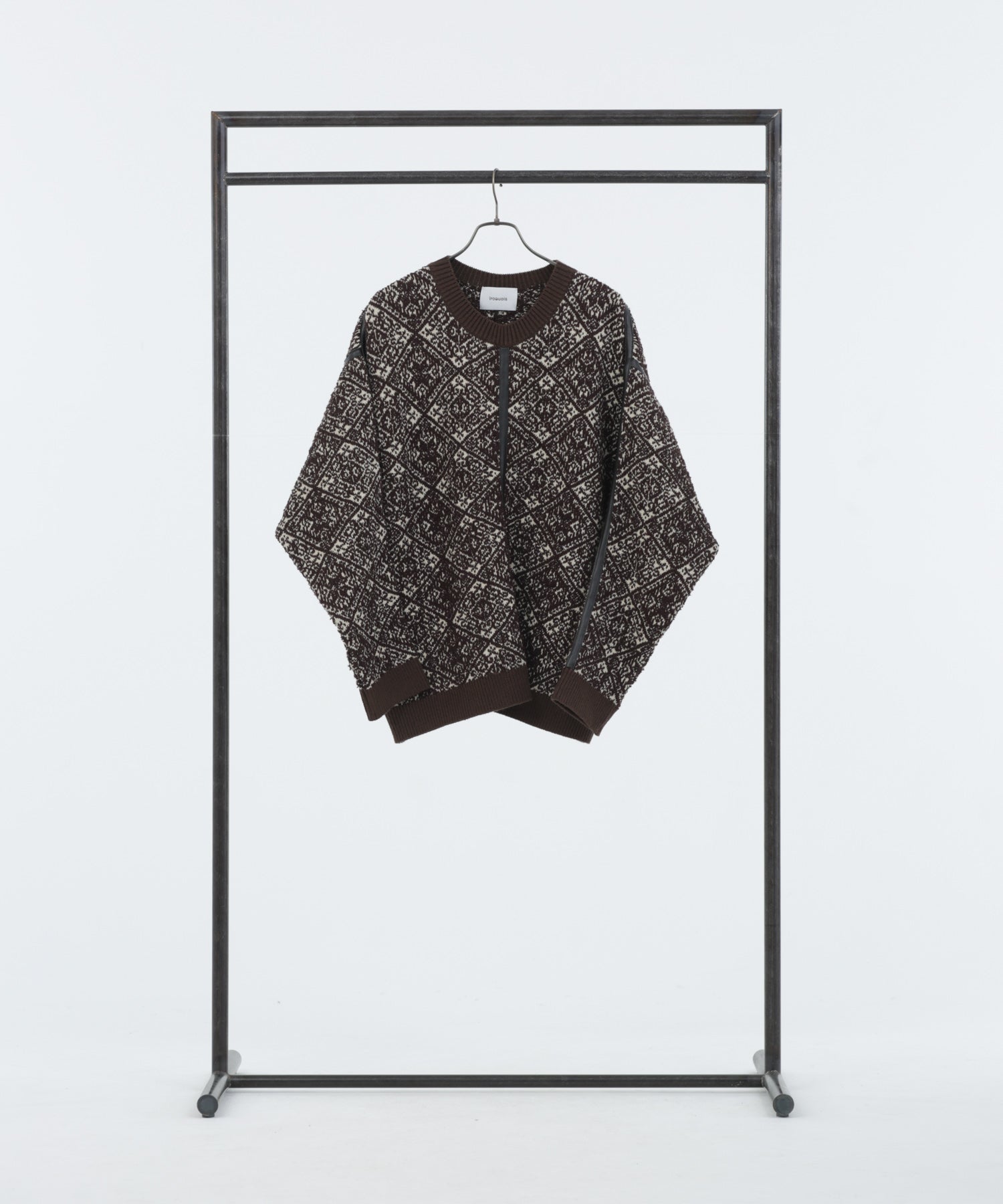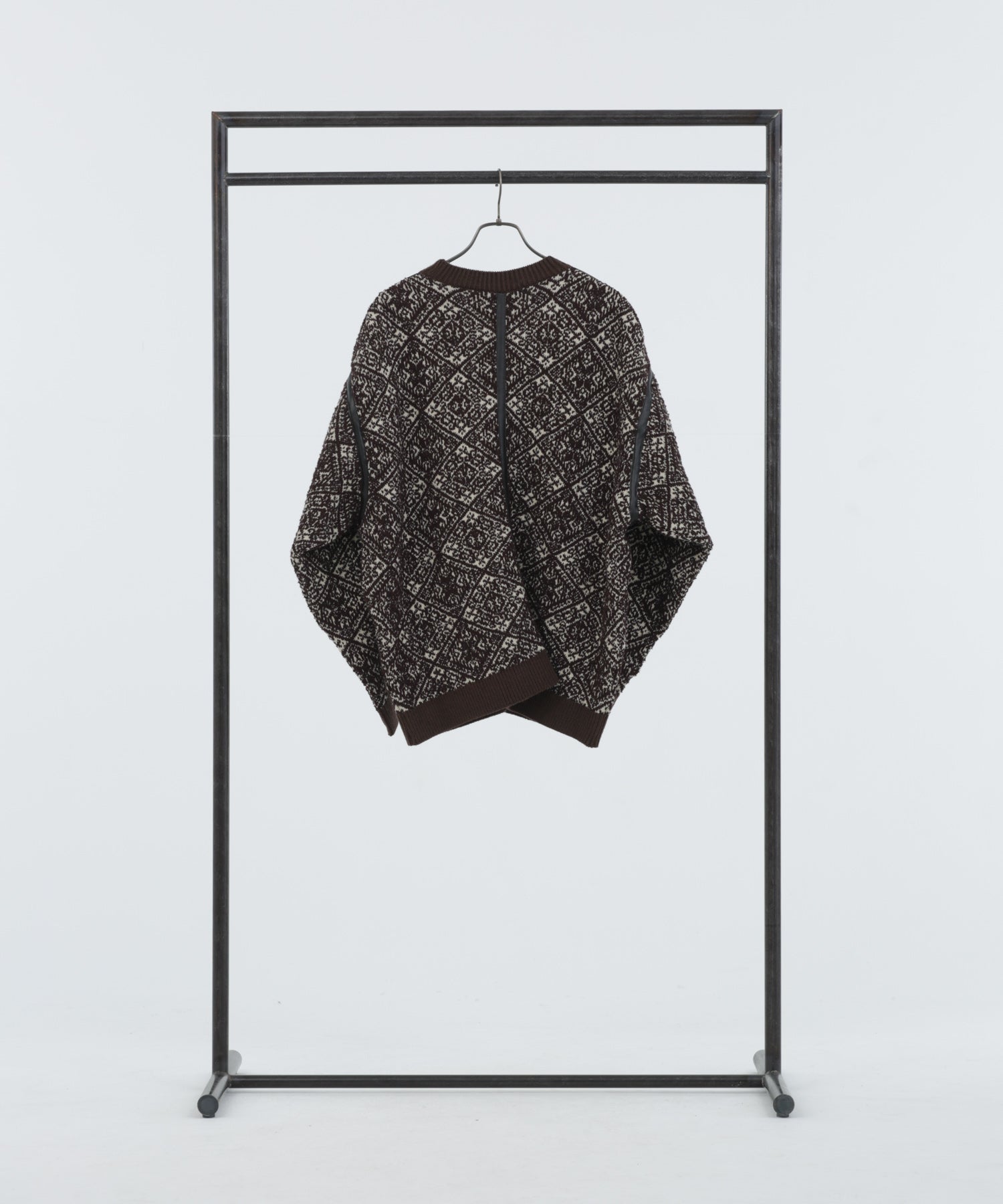 ■We use boucle thread which spun cotton of natural fiber. This lightweight and gentle material is characterized by a knitted fabric that is considered to make only the cotton boucle yarn float by knitting a delicate fair isle pattern with a jacquard jacquard that uses weakly stretchy yarn.