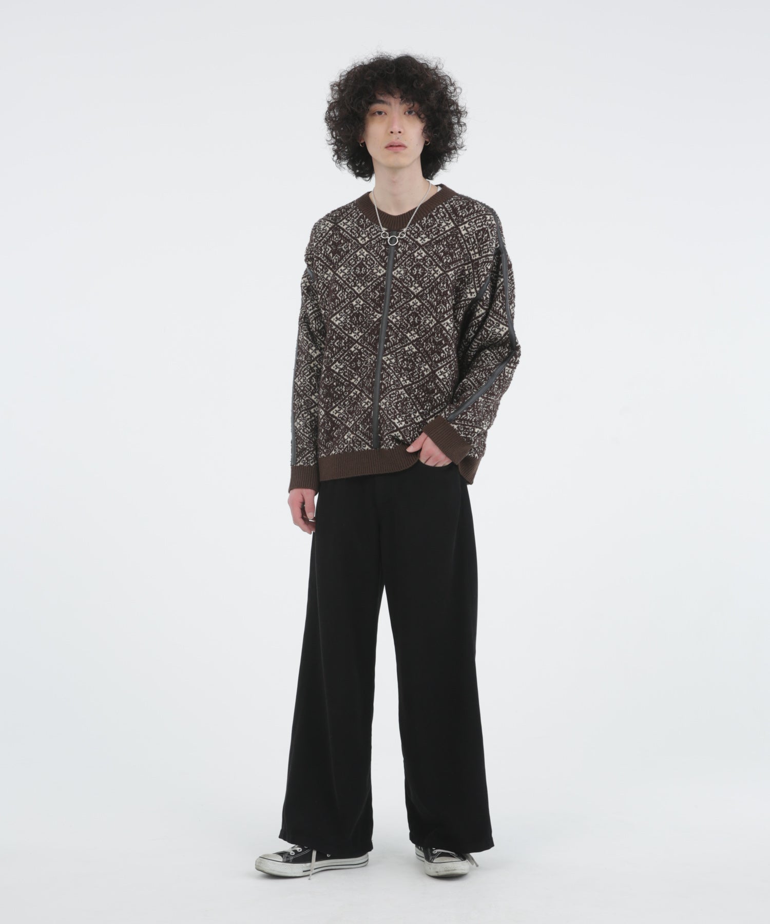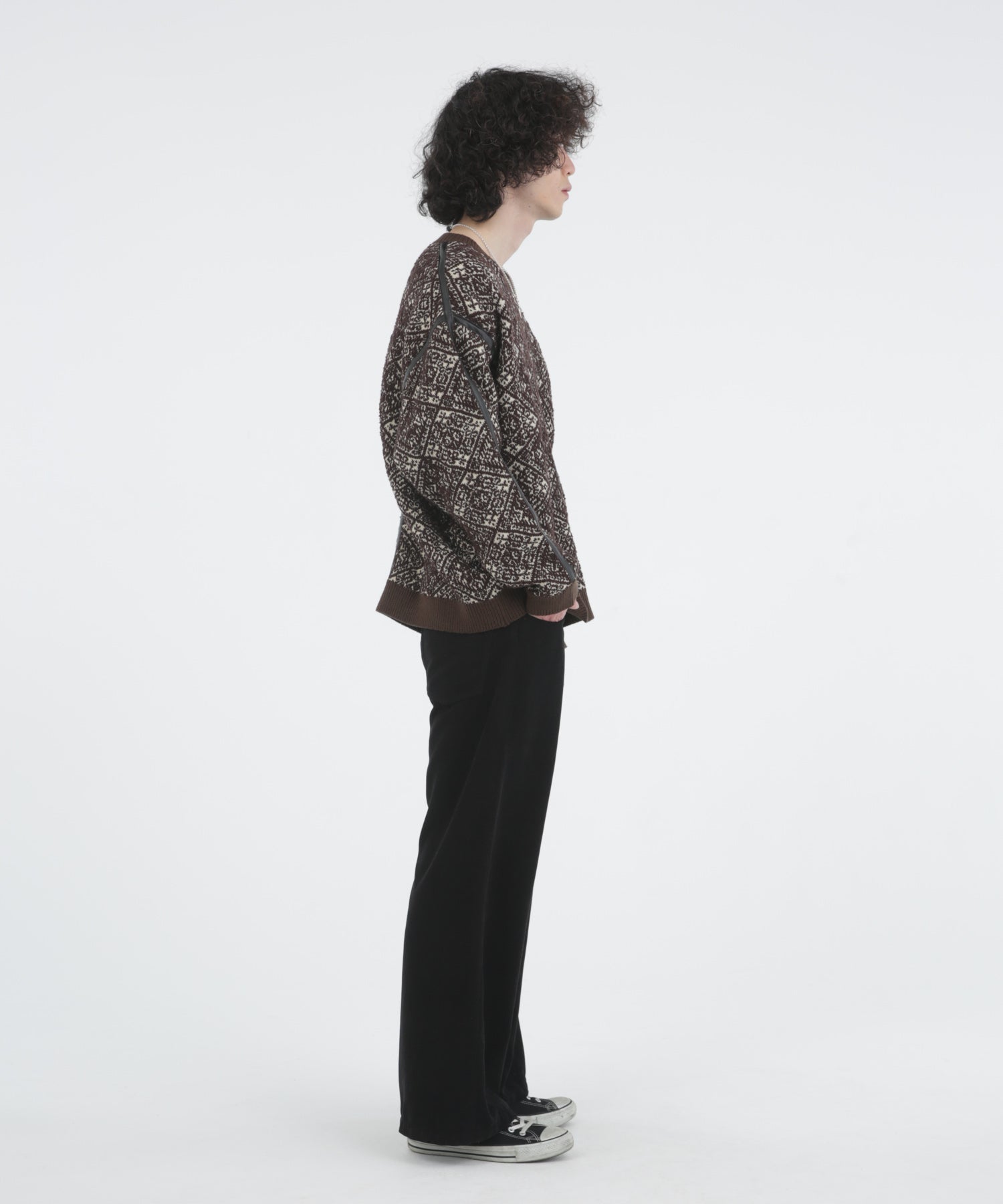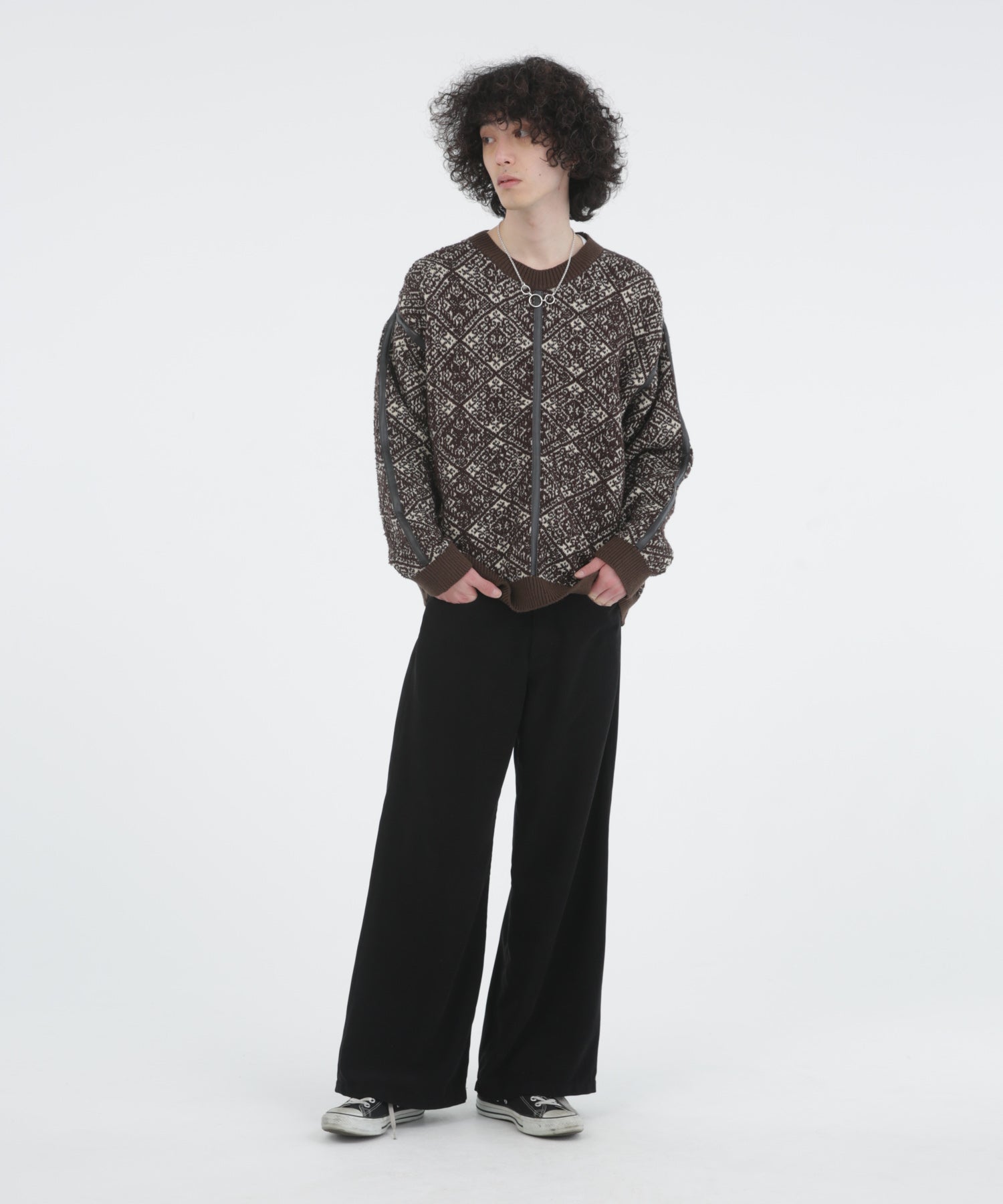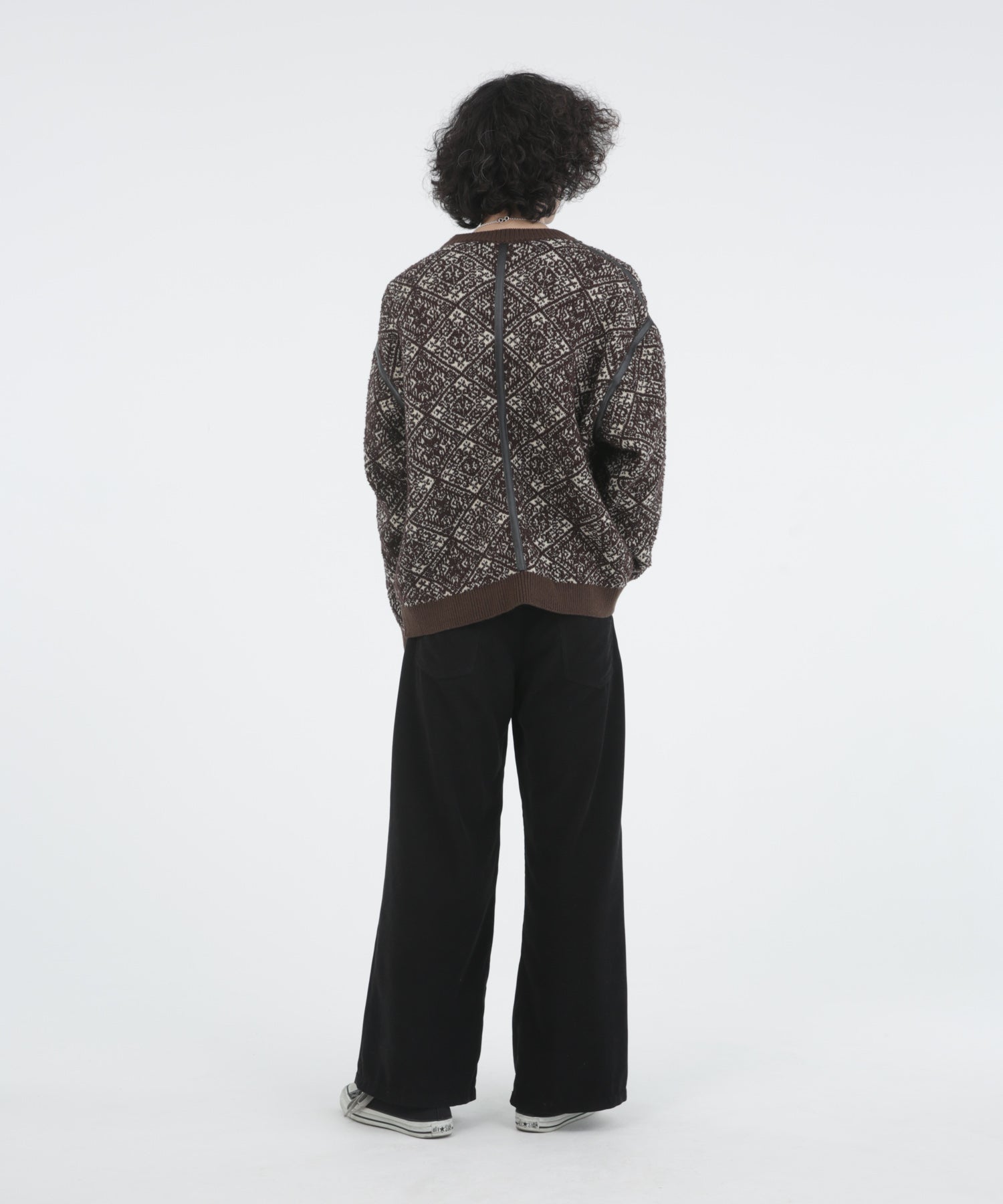 ■We use boucle thread which spun cotton of natural fiber. This lightweight and gentle material is characterized by a knitted fabric that is considered to make only the cotton boucle yarn float by knitting a delicate fair isle pattern with a jacquard jacquard that uses weakly stretchy yarn.