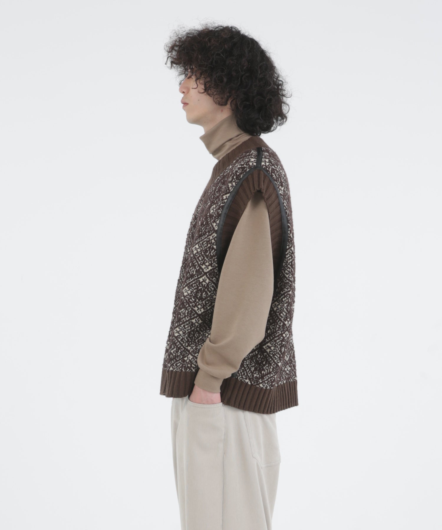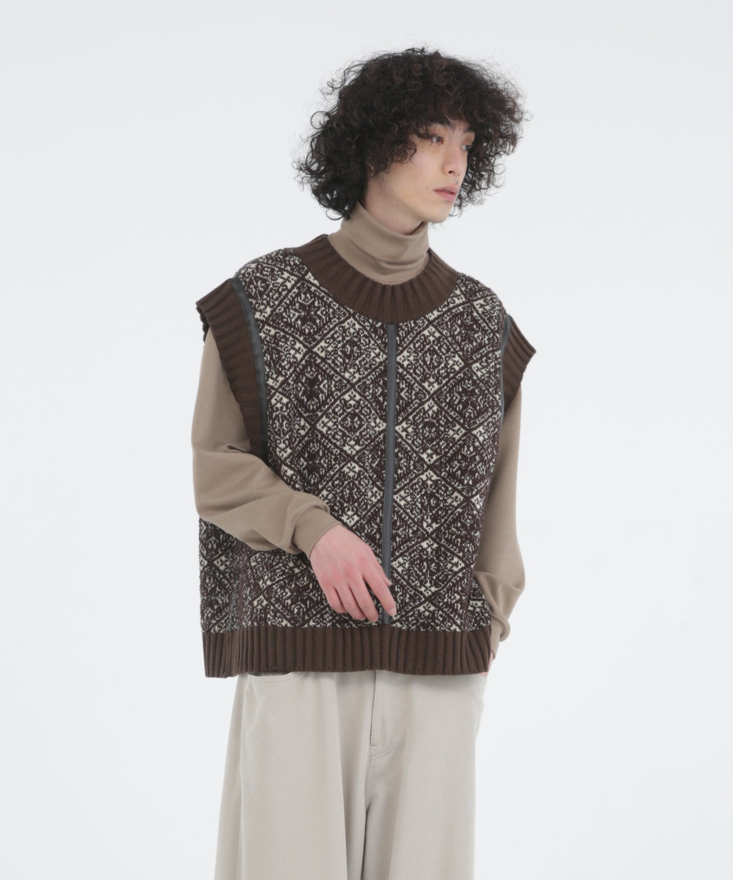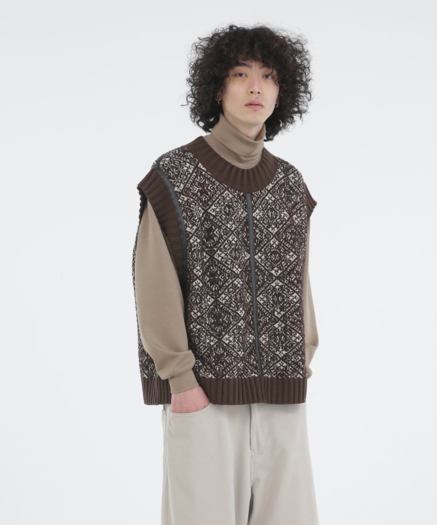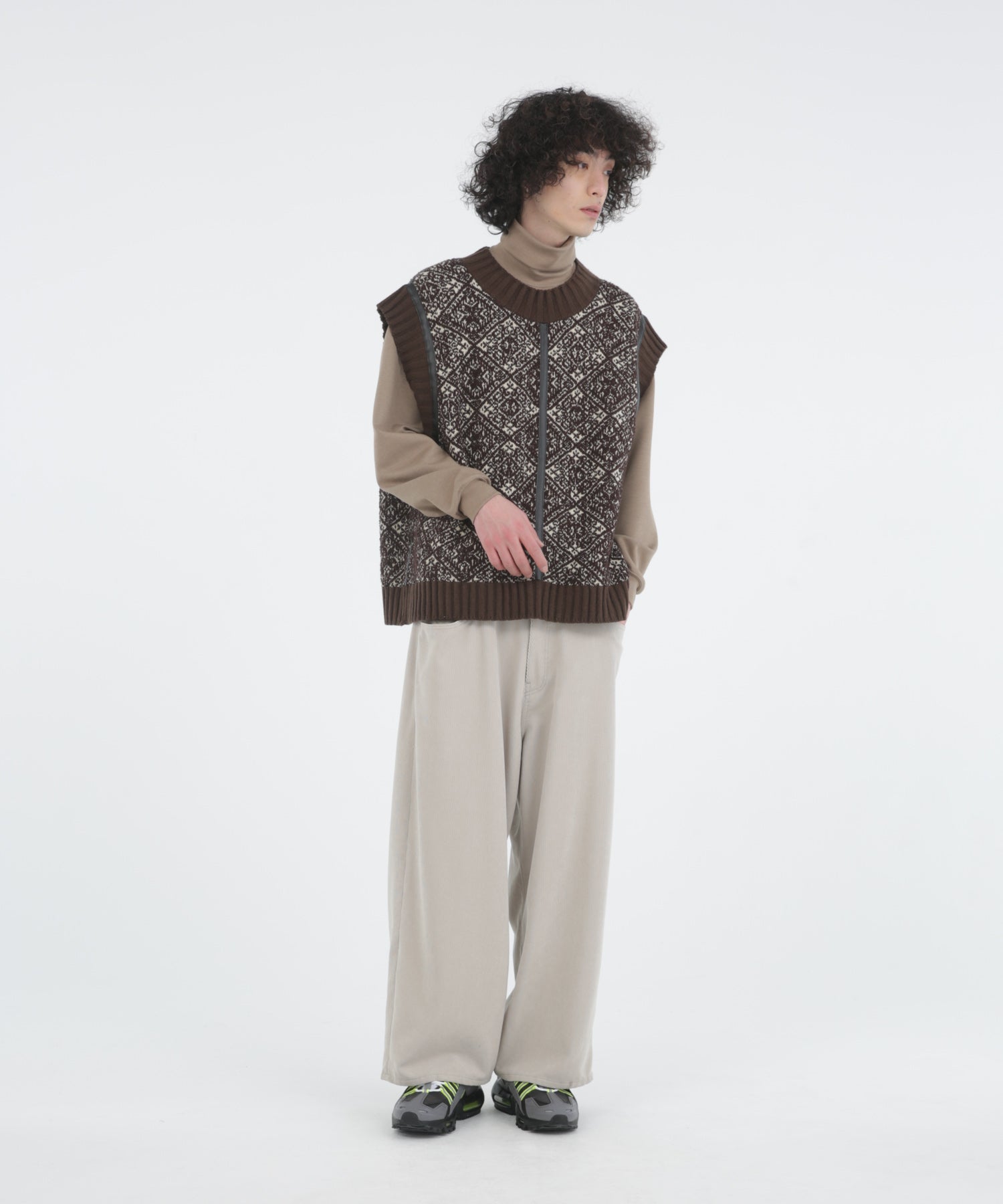 ■ A knit vest with a big silhouette with thick ribs on the neck and sleeves.