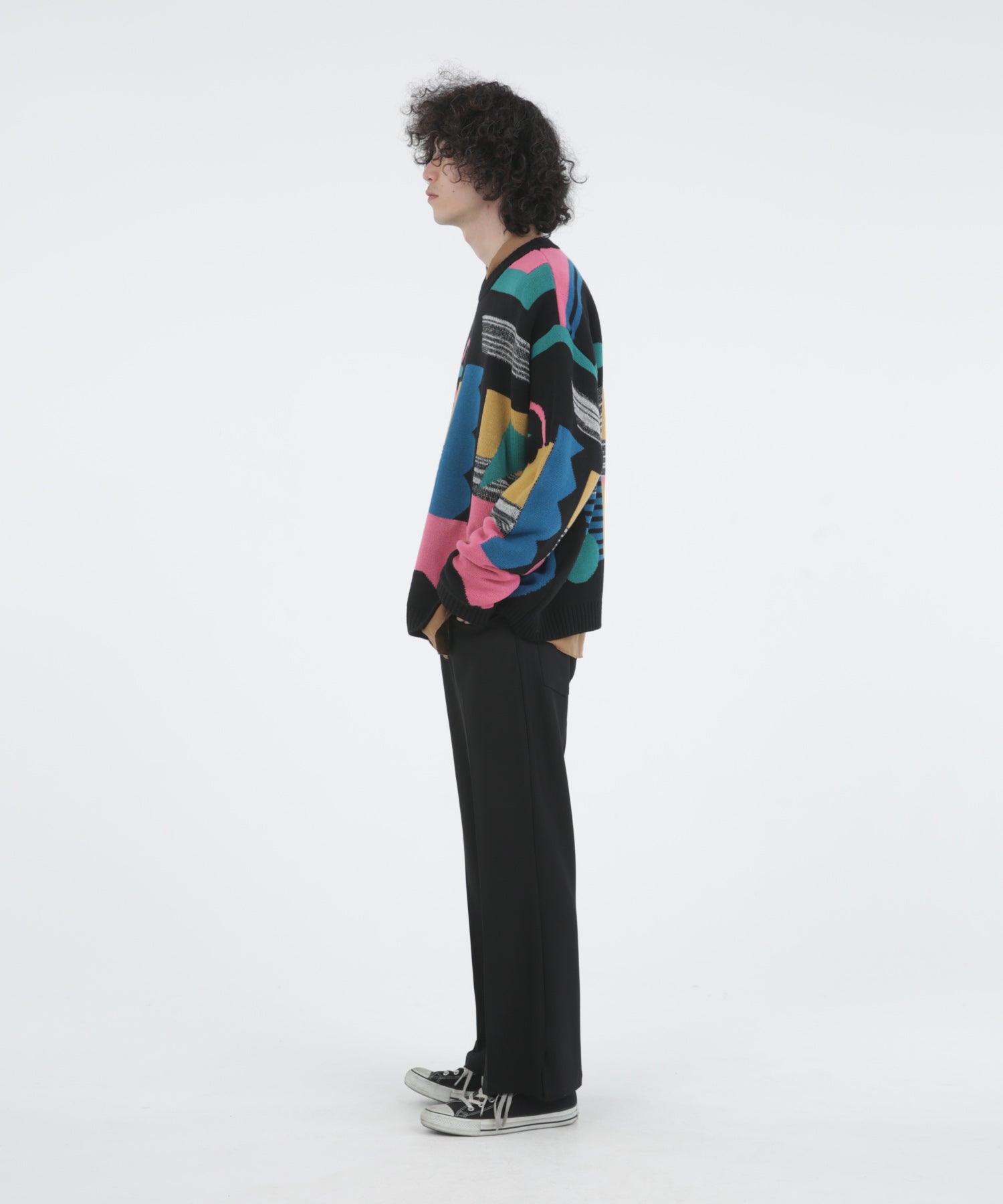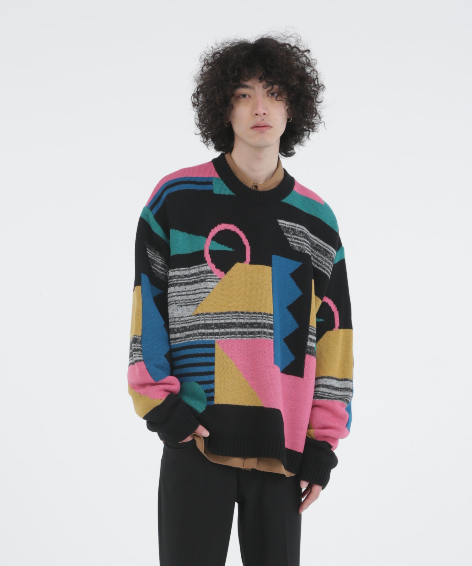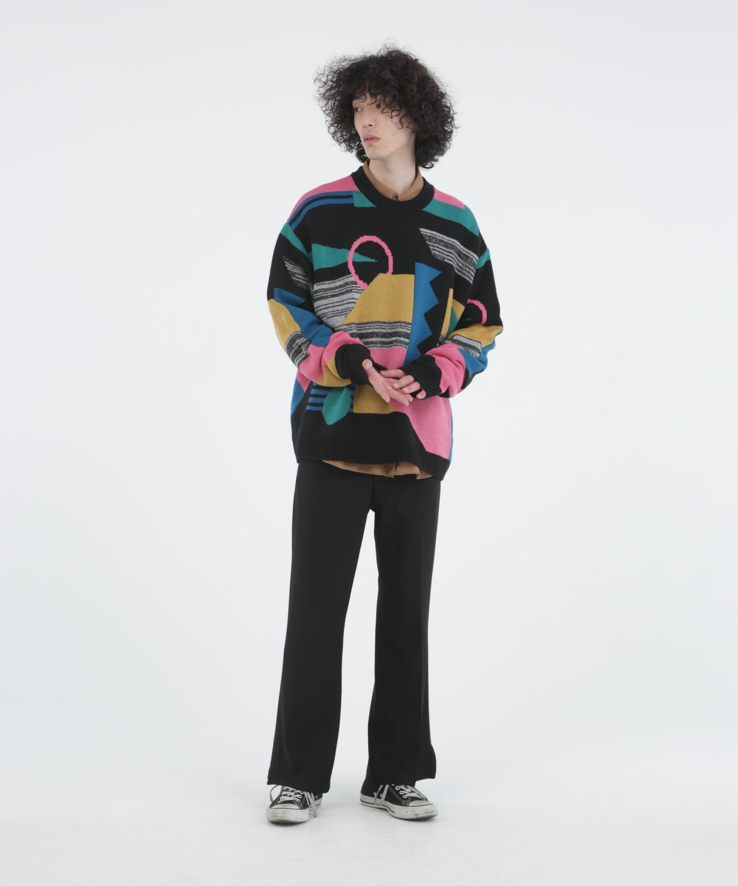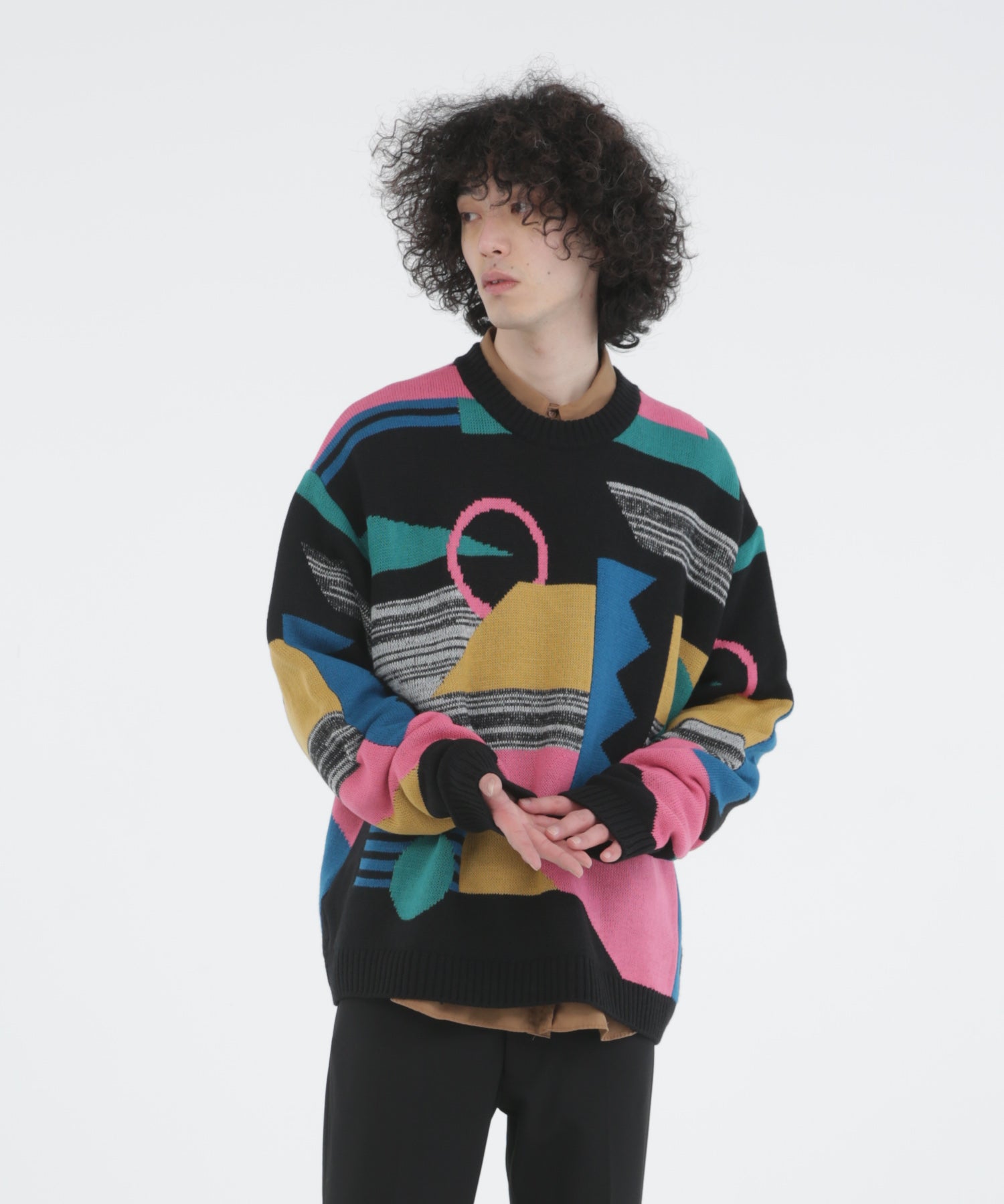 ■By knitting with multi-colored intarsia jacquard, the fabric is made so that the pattern color on the front can be clearly seen without the back color being visible like a normal JQ. In addition, the number of craftsmen with this pattern-making technique is decreasing in Japan. The material also expresses the texture of the material by using well-colored threads, bulging threads, and cord threads.