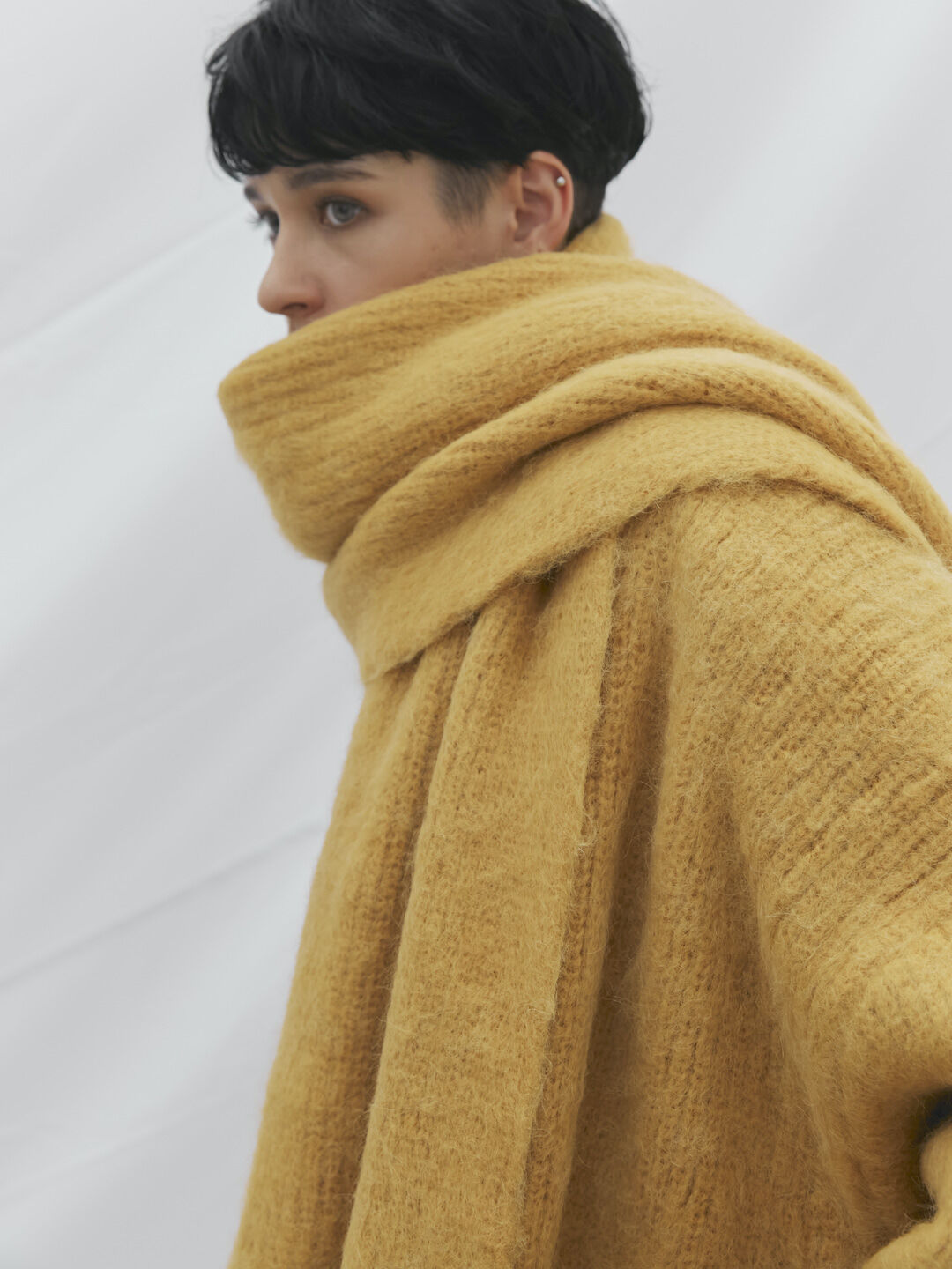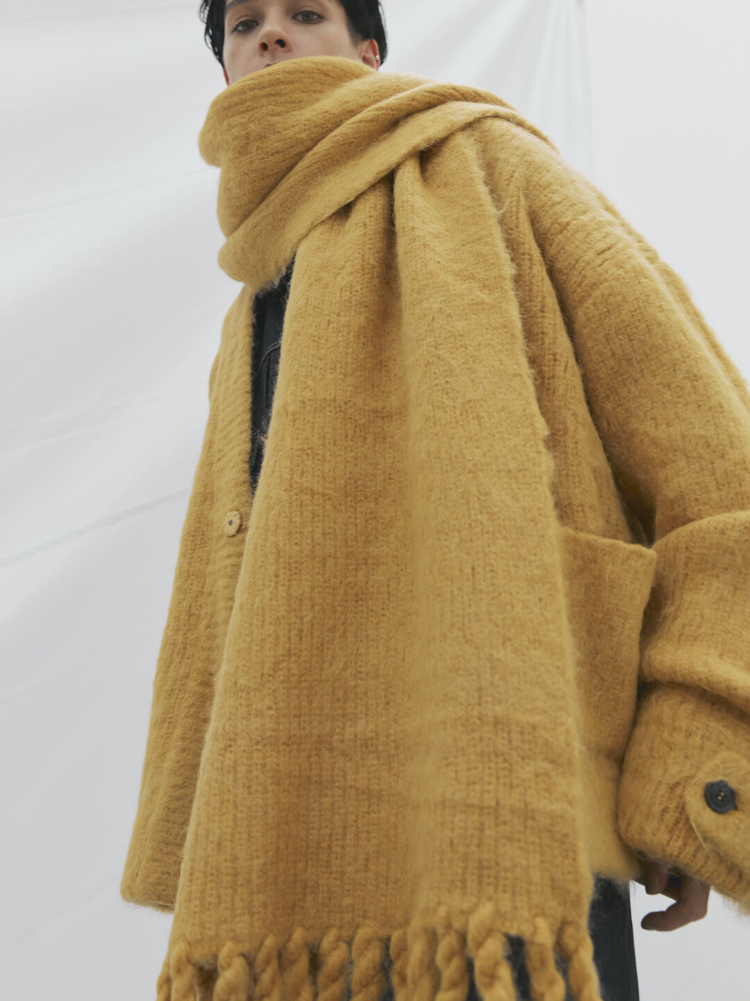 Large format stall. An item that will accent your autumn / winter styling. Since it is made of the same material as the cardigan, it can be combined as a set.