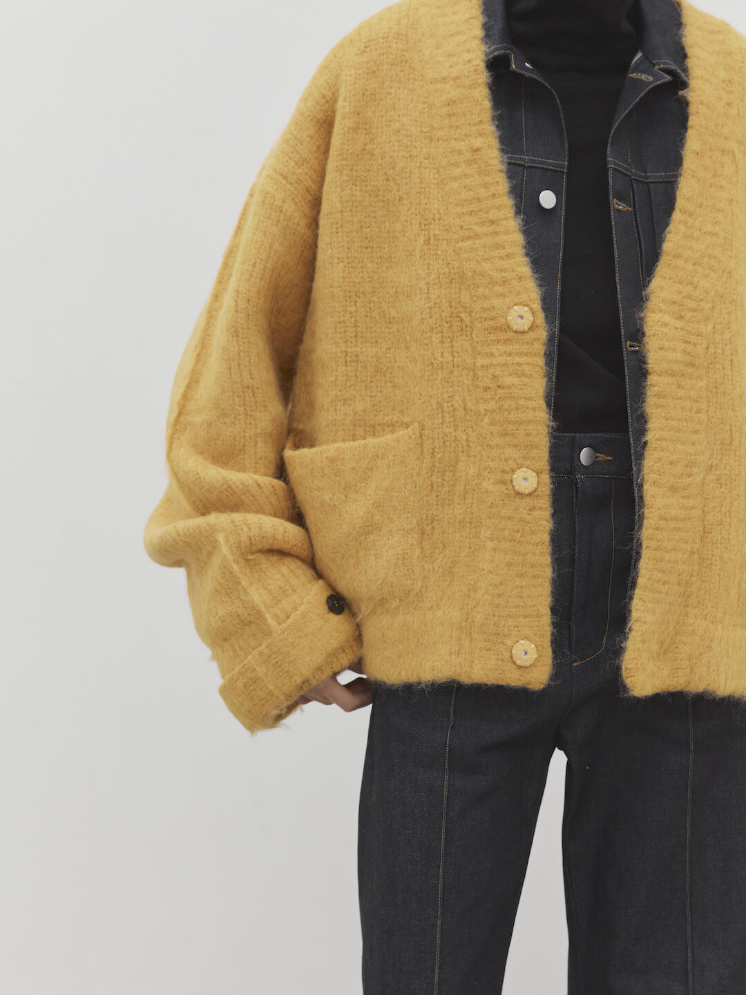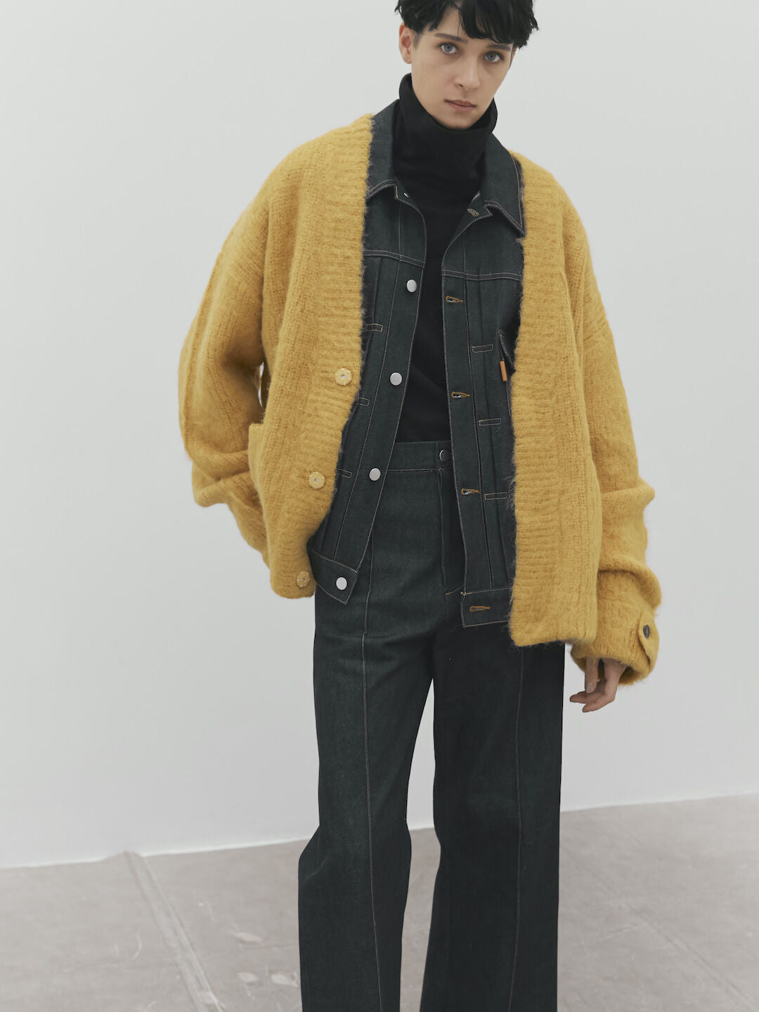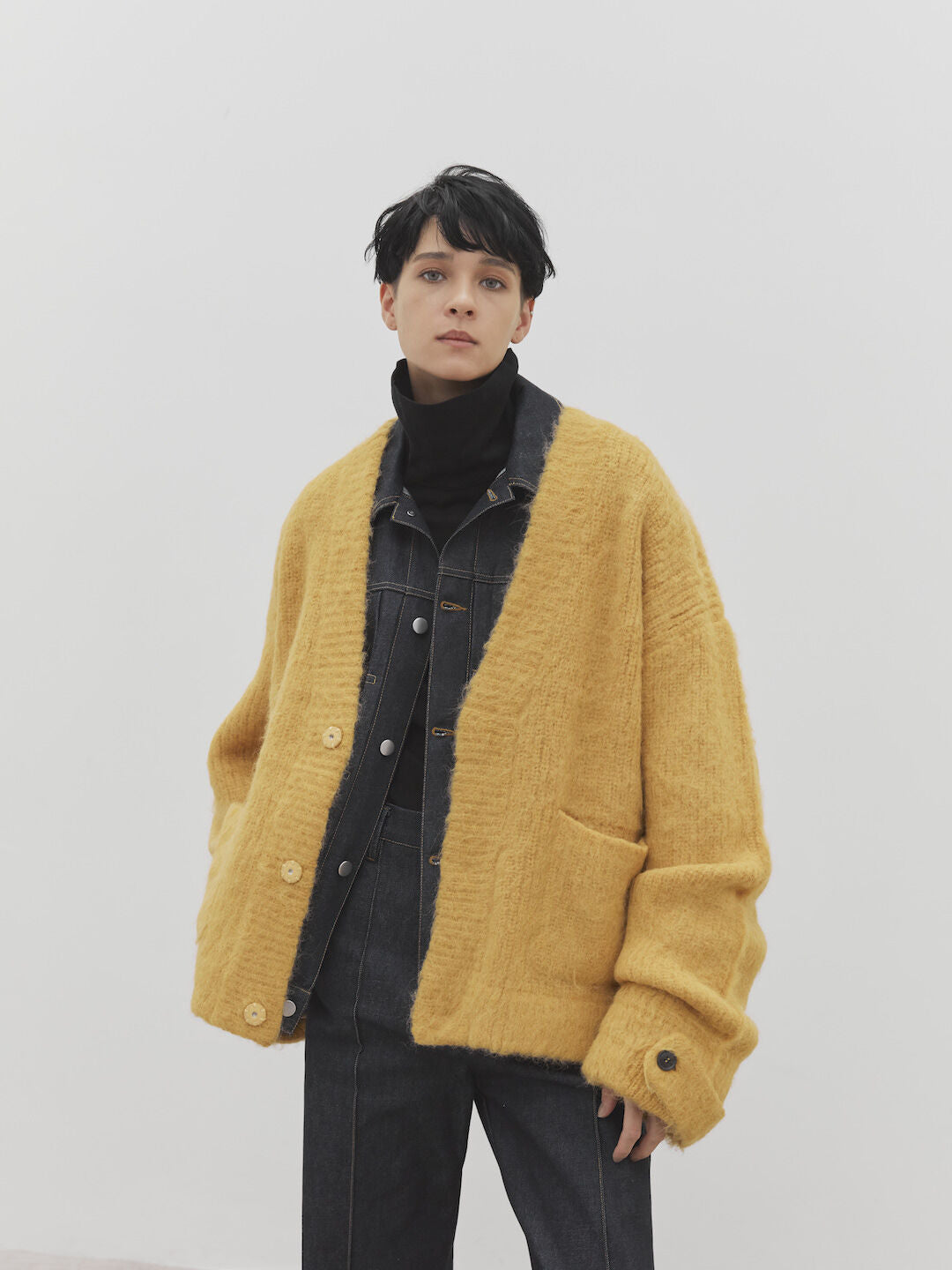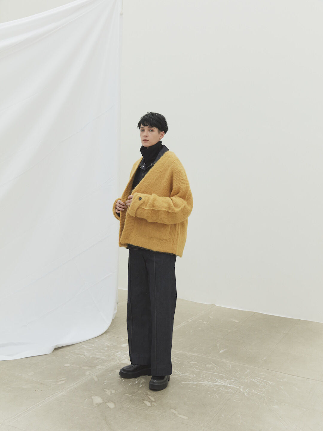 The finest touch. Uses a rare alpaca with long hair. We knit it into a light and warm cardigan. A 3G knit that makes the most of the fluffy yarn.