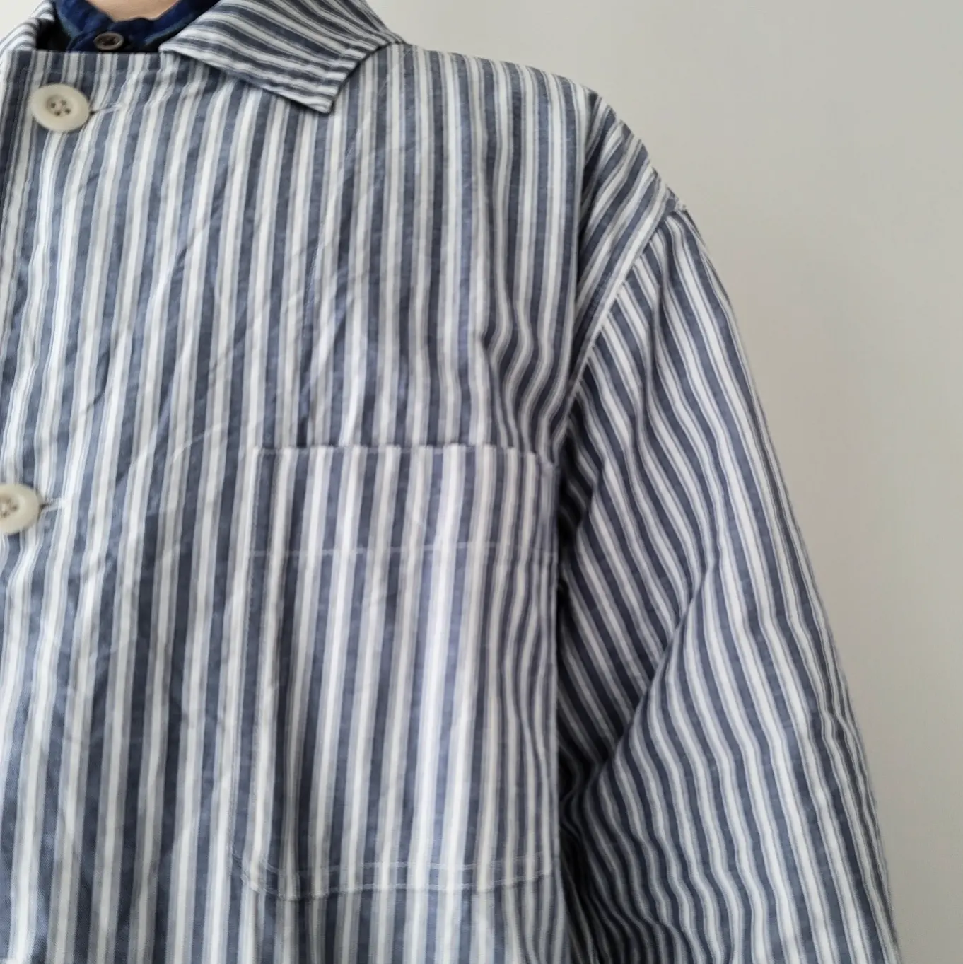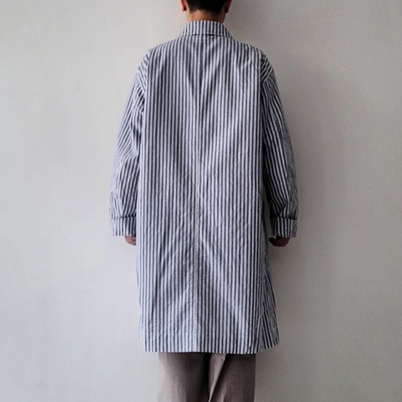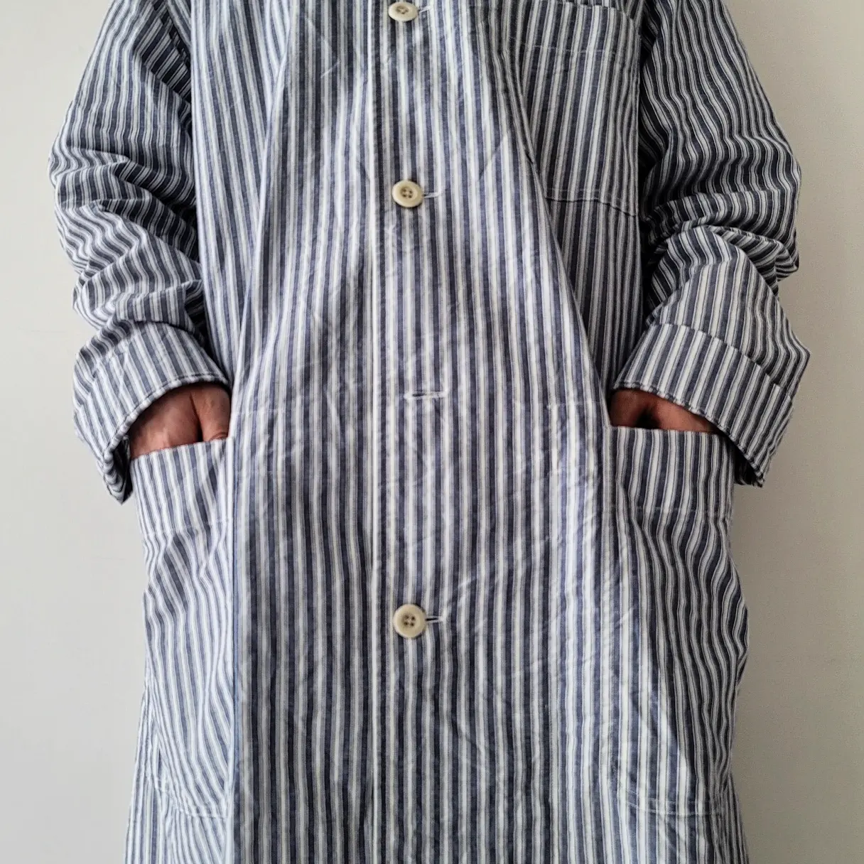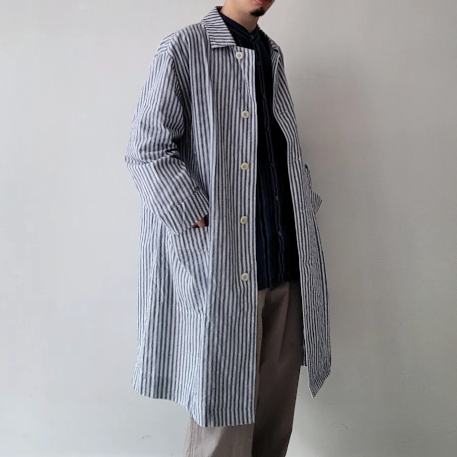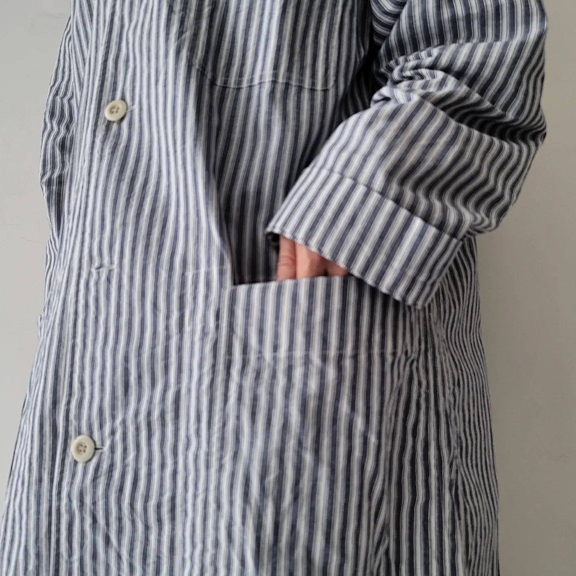 Alternate Stripe Cotton Linen Cloth Shirt Coat