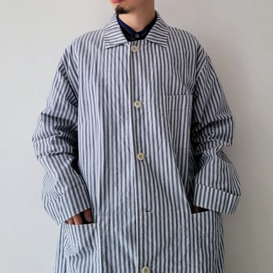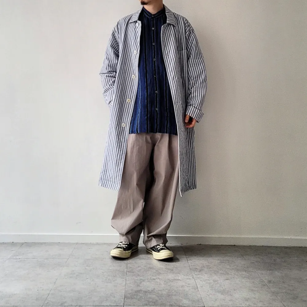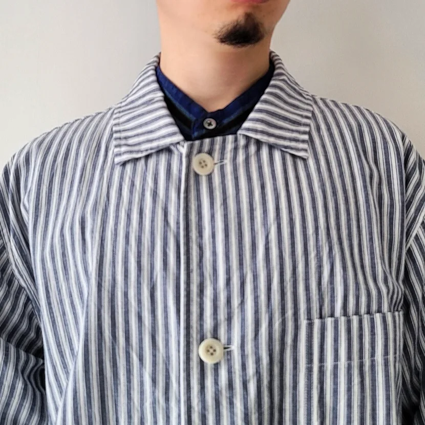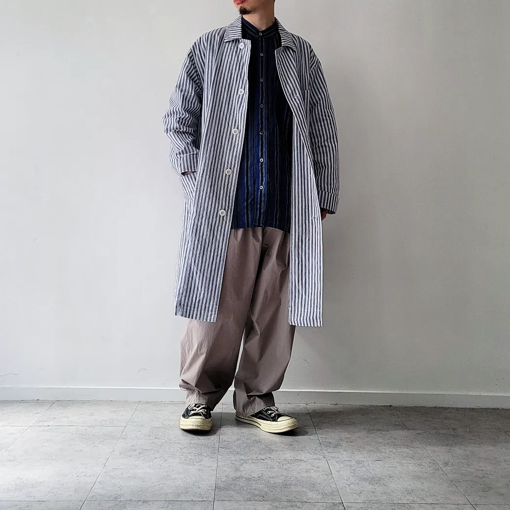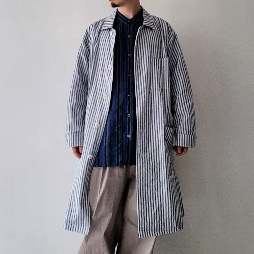 Alternate Stripe Cotton Linen Cloth Shirt Coat