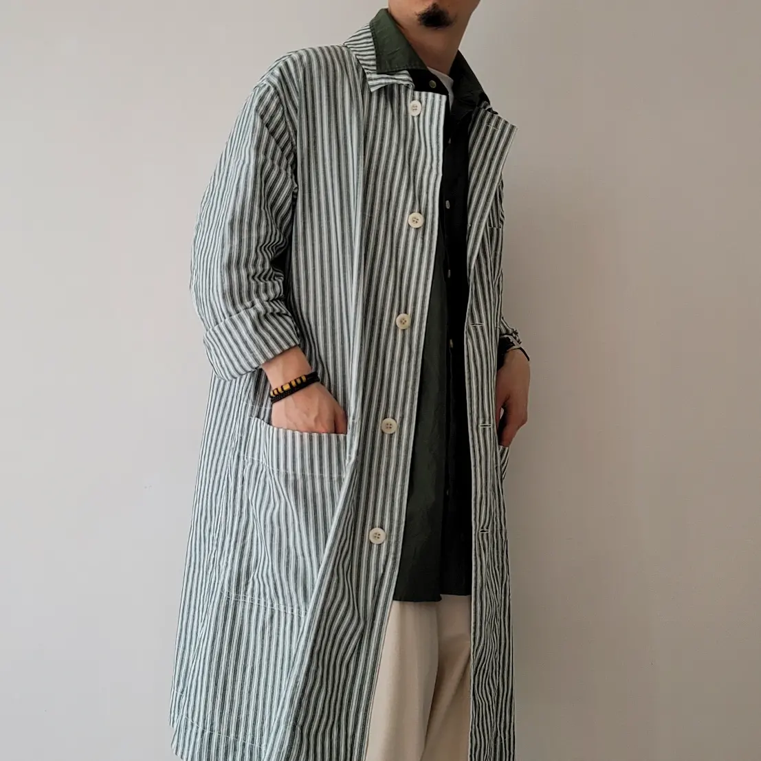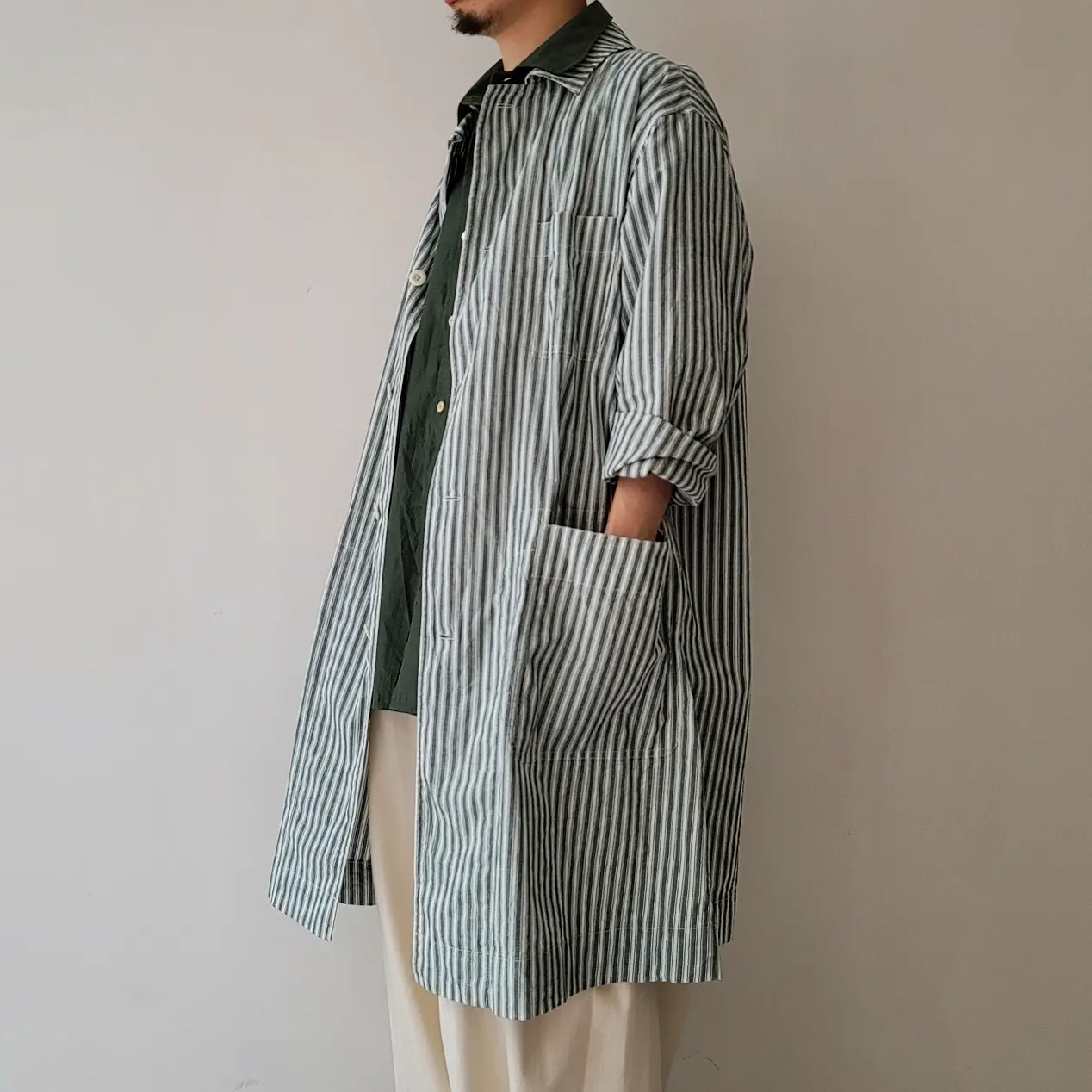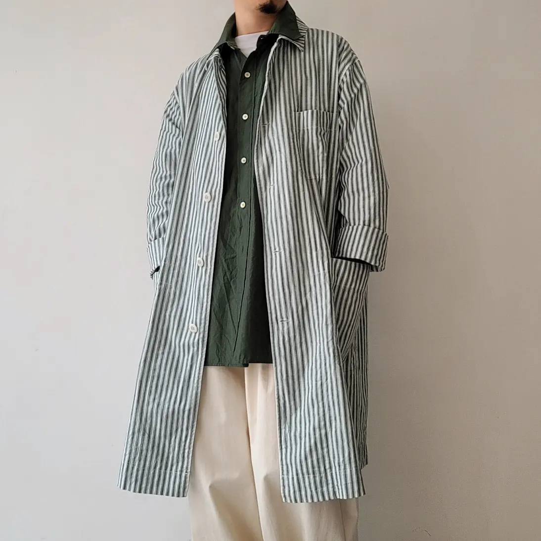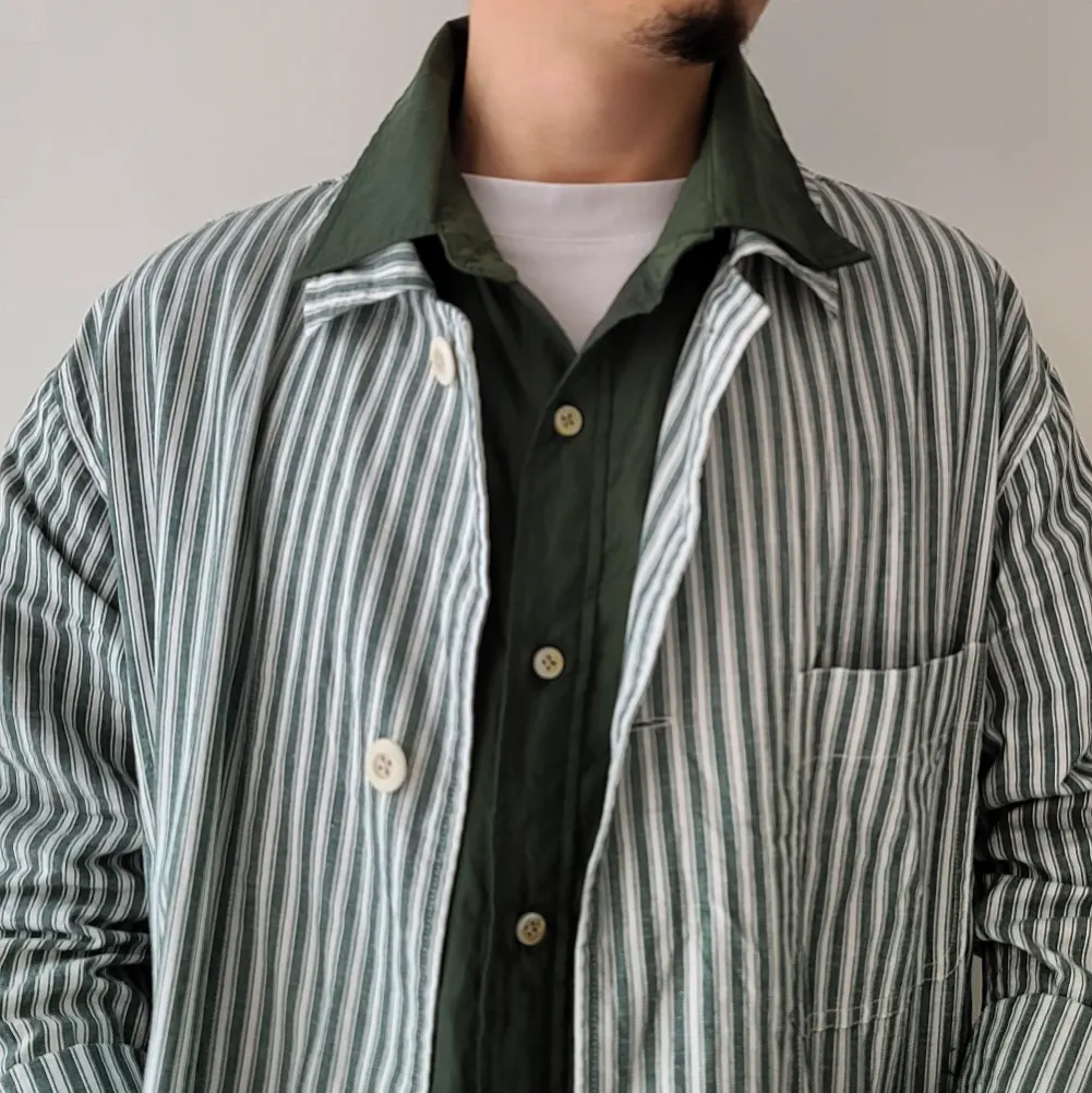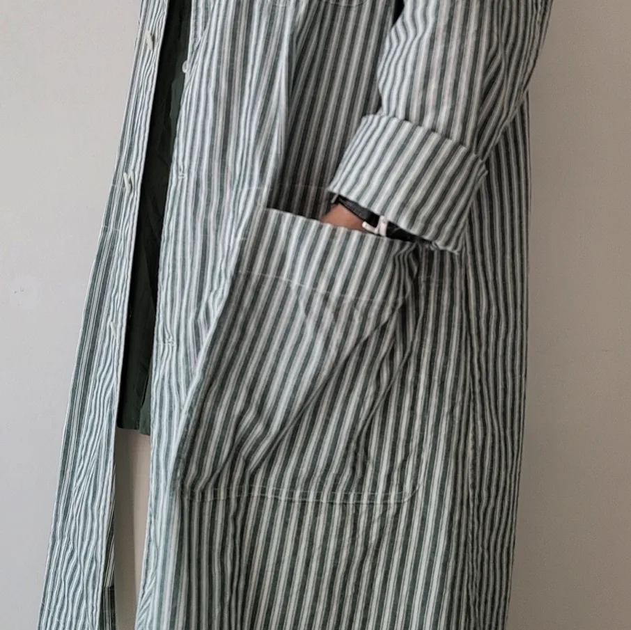 Alternate Stripe Cotton Linen Cloth Shirt Coat