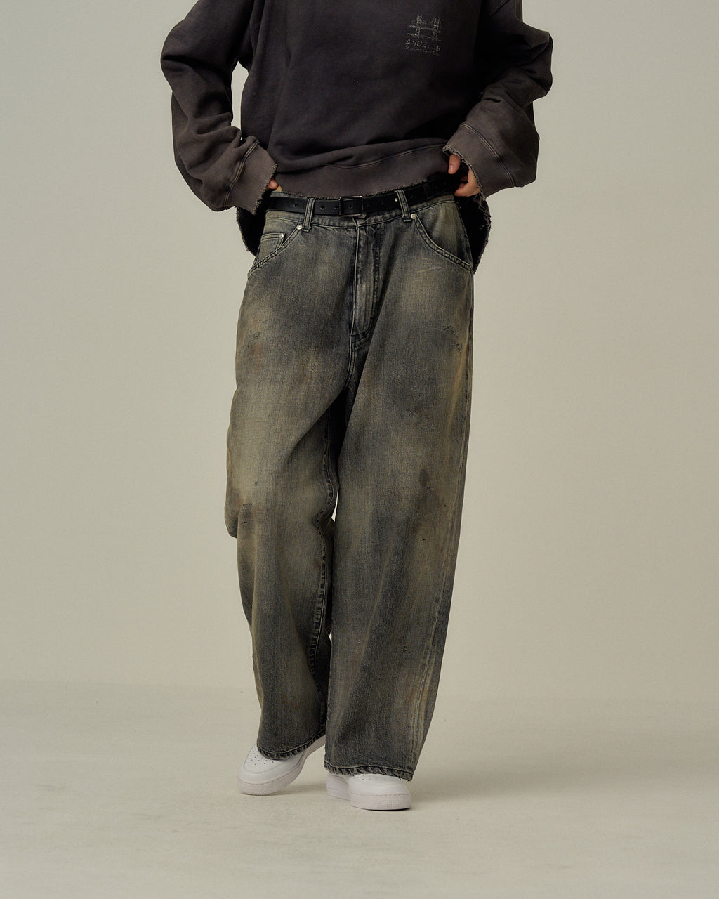 It features a relaxed waistline with a subtle taper, flowing smoothly to the hem in a semi-wide cut.