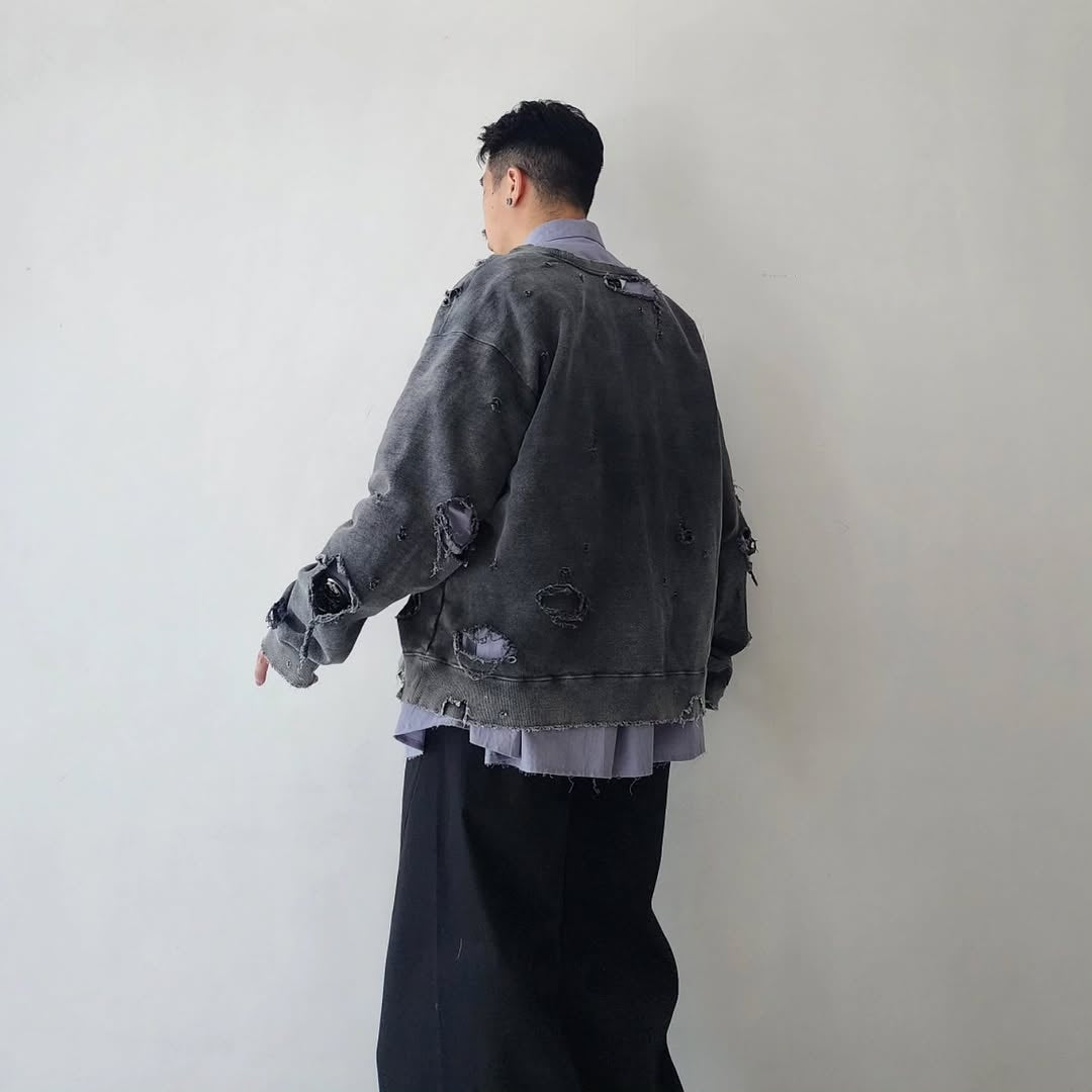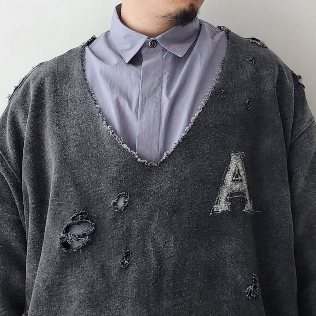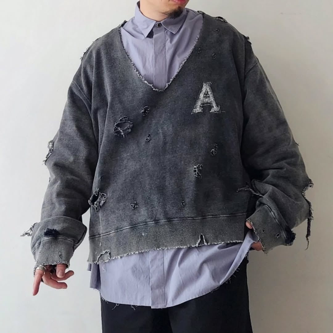 Because the front is largely ripped, it is styled like a skipper and can be worn over a shirt or blouson, for example.