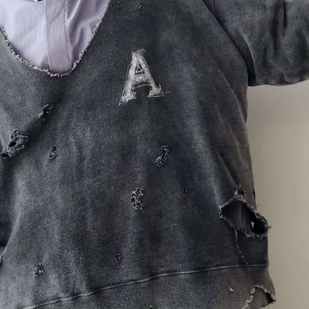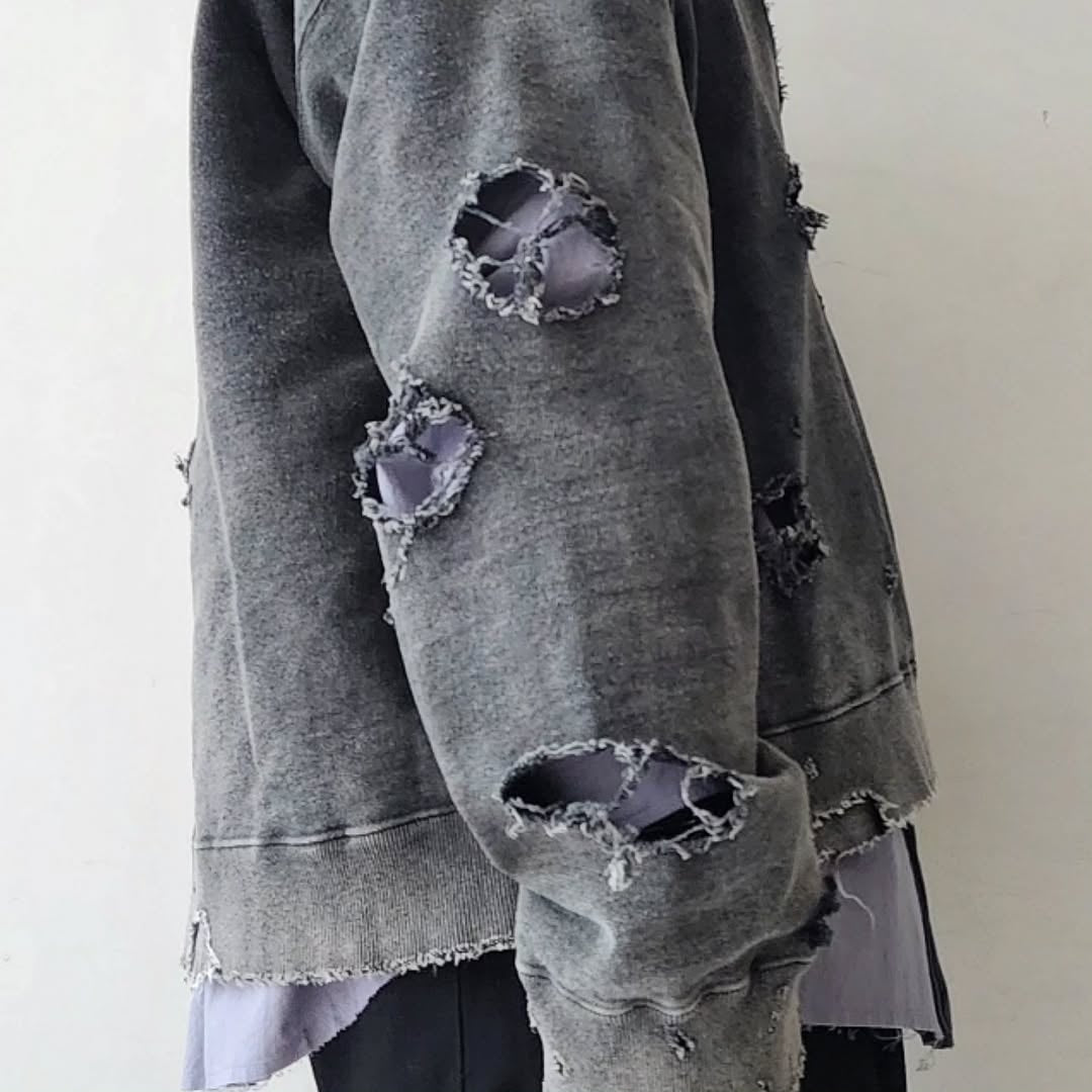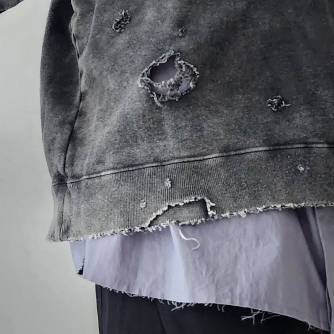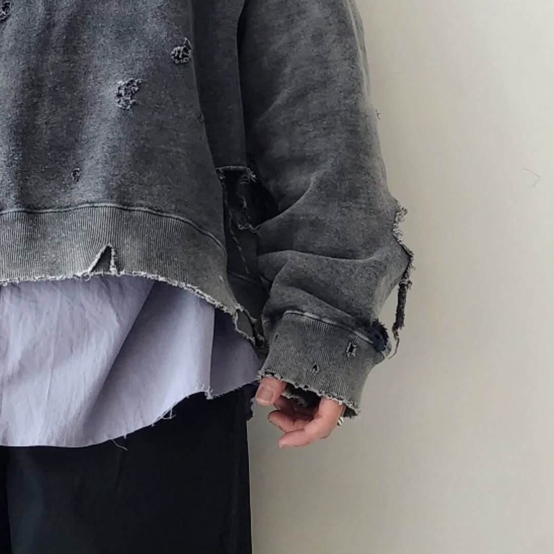 Because the front is largely ripped, it is styled like a skipper and can be worn over a shirt or blouson, for example.