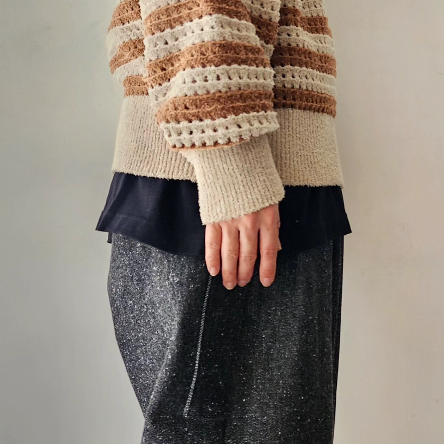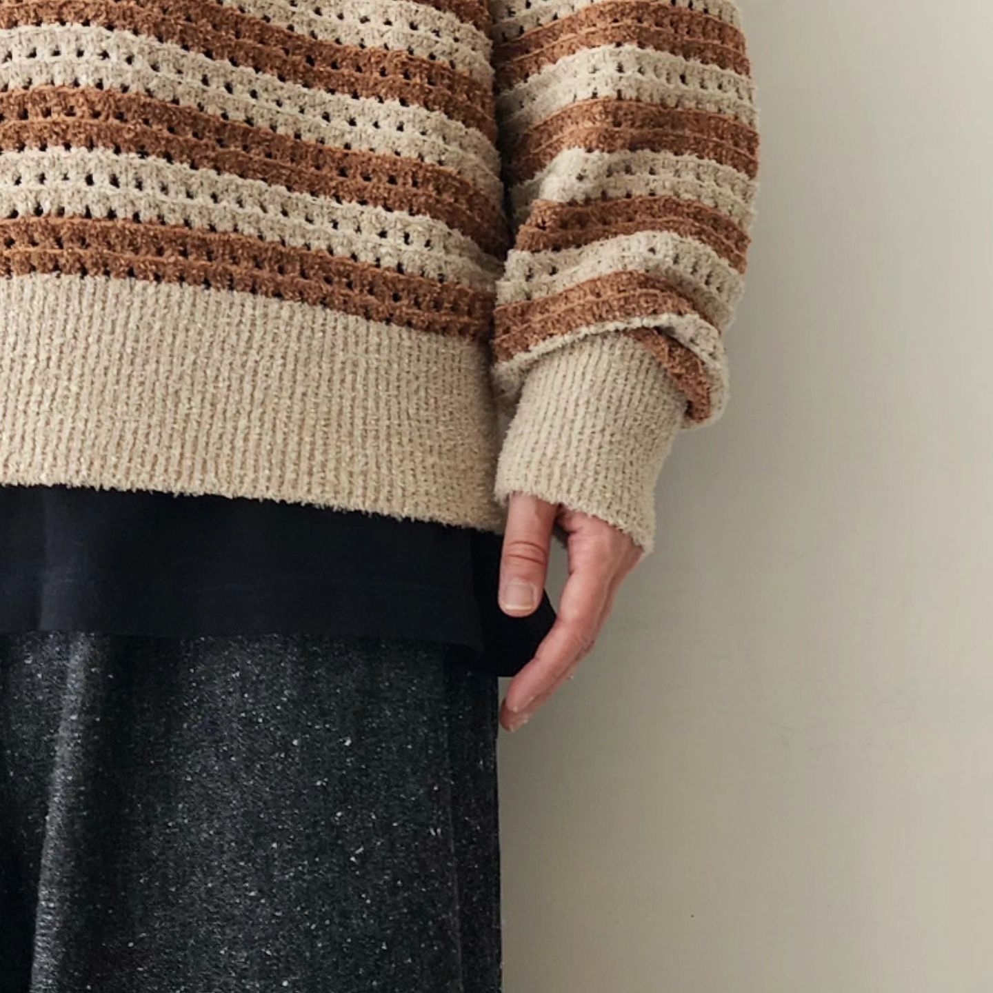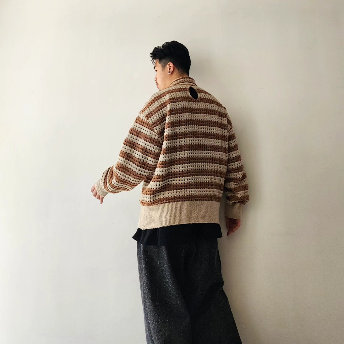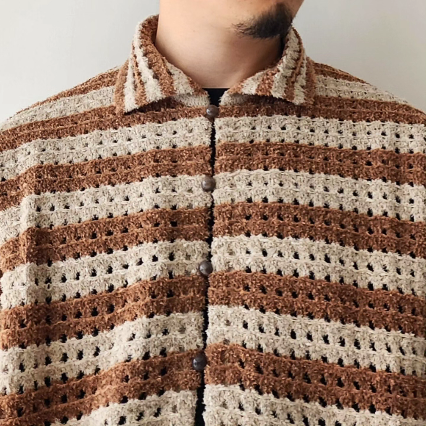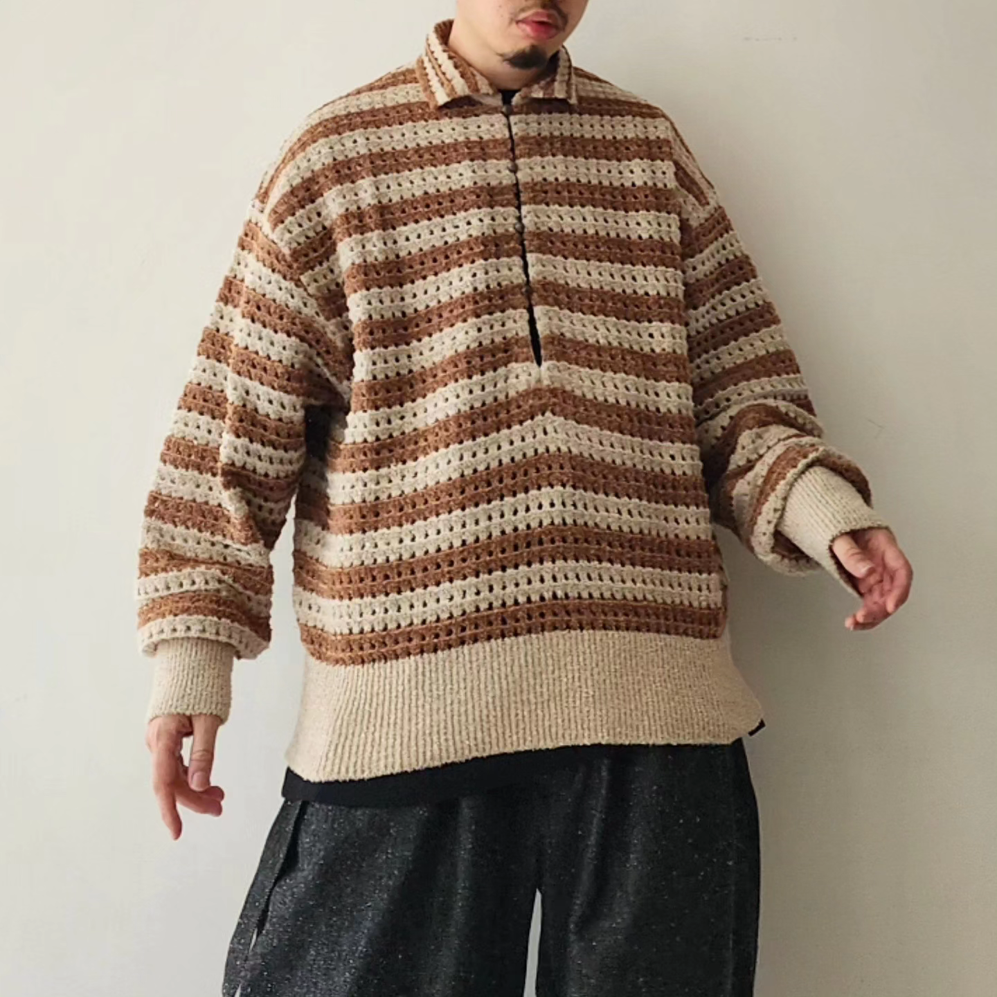 -The pulp, which is the raw material for washi paper, is made in Japan by being cut into slits, mixed with polyester fibers, and twisted while retaining the advantages of paper.One thread is made of washi paper, and the other is two strands of wool thread that is fluffy and feels good to the touch. A knit border polo with eyelet (hole) knitting.