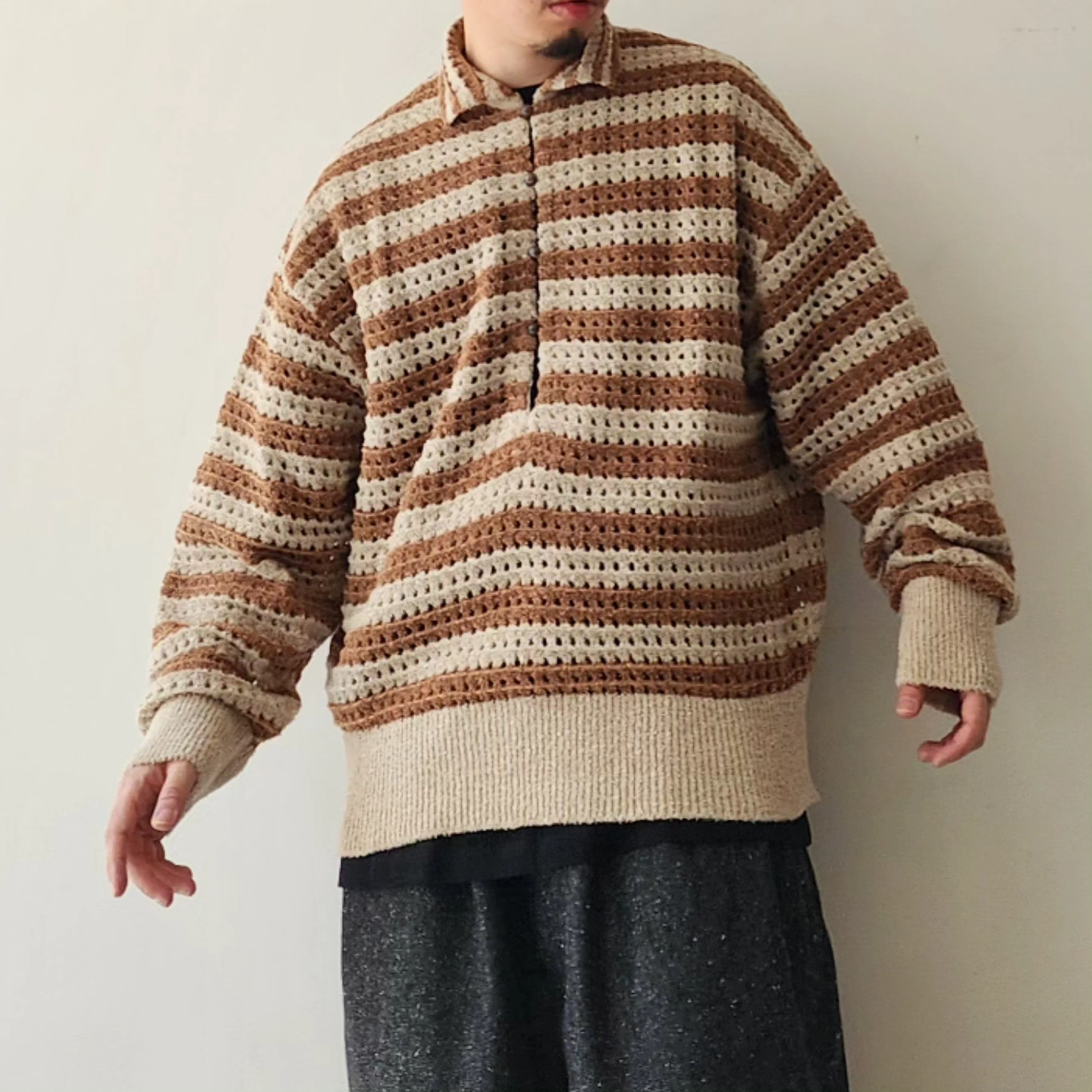 ARE NOT IS / Fluffy WASHI Eyelet Knit Polo