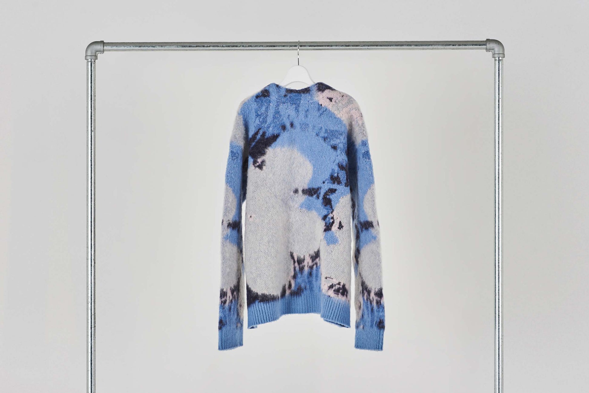 The item features a relaxed silhouette and the shaggy feel of the mohair.