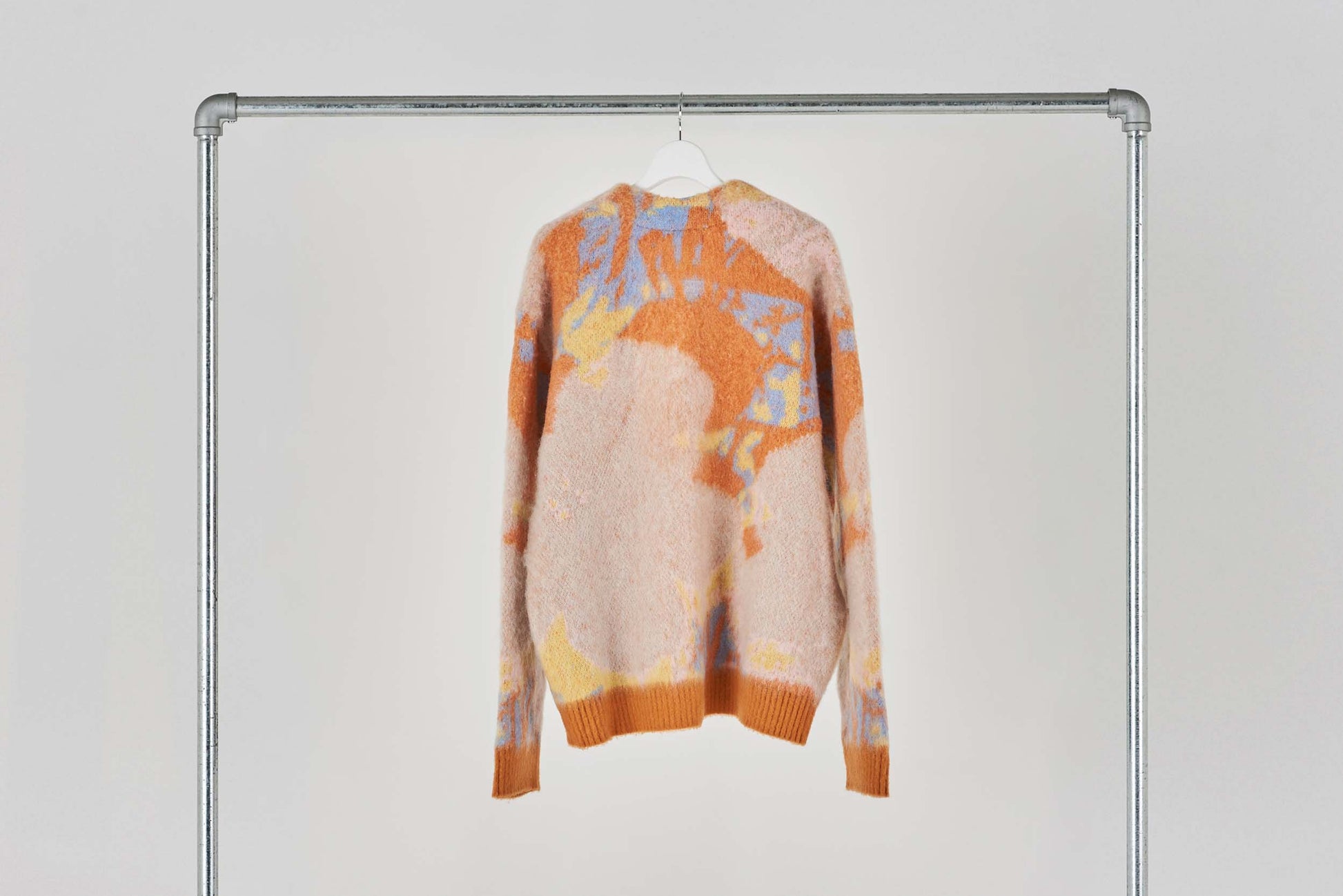 The item features a relaxed silhouette and the shaggy feel of the mohair.