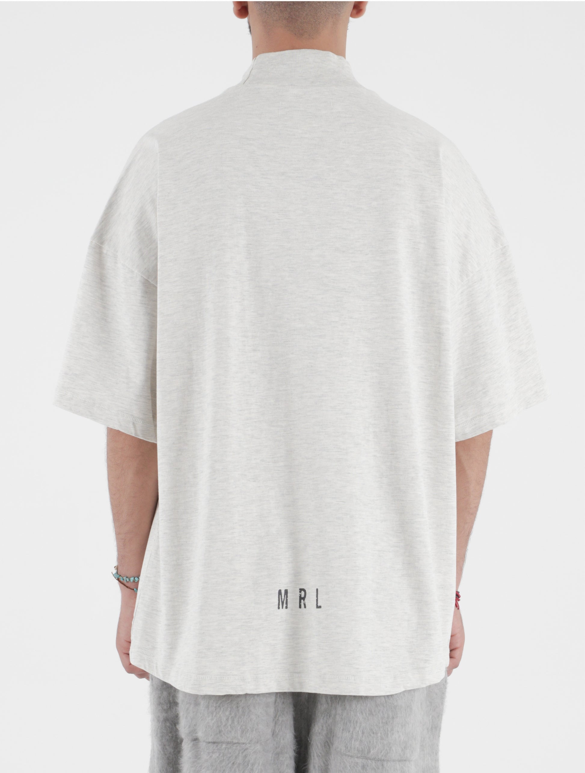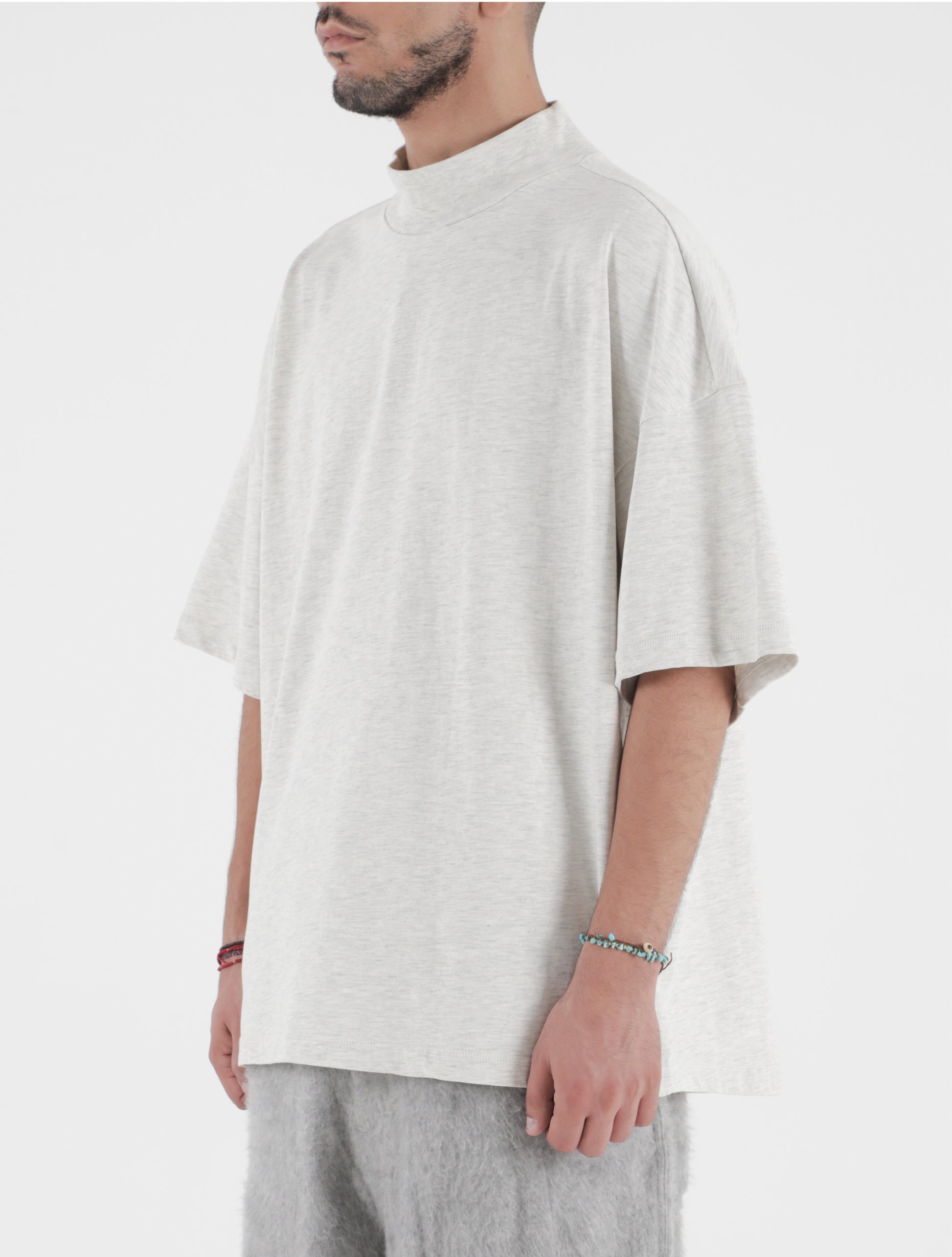 For this New Jersey collection t-shirt, we decided to use a premium 16'S Compact single cotton material with a slight feeling of firmness, to be comfortable in every situation of everyday life. We also created Half-turtleneck to create a relaxed and boxy silhouette.