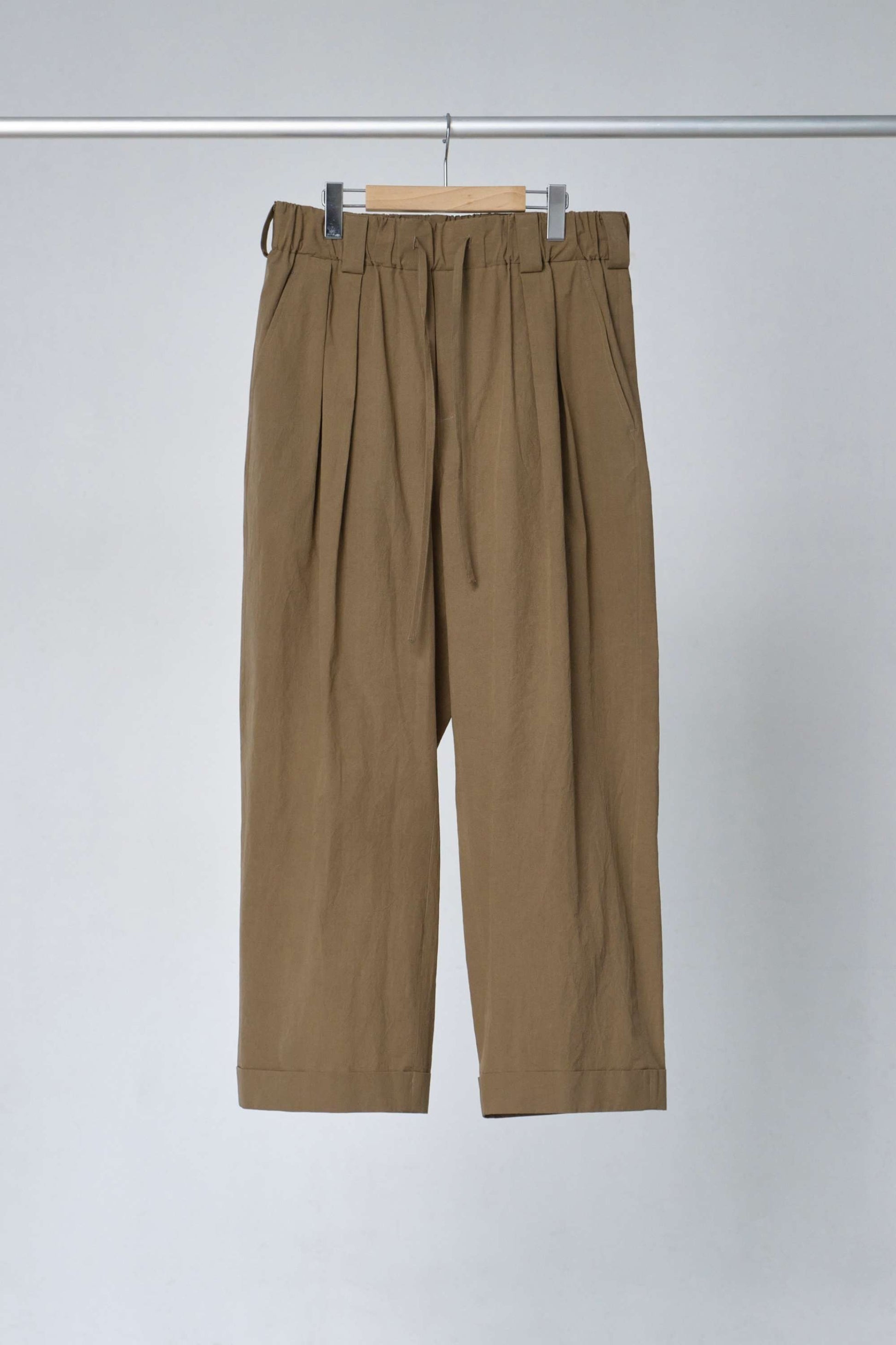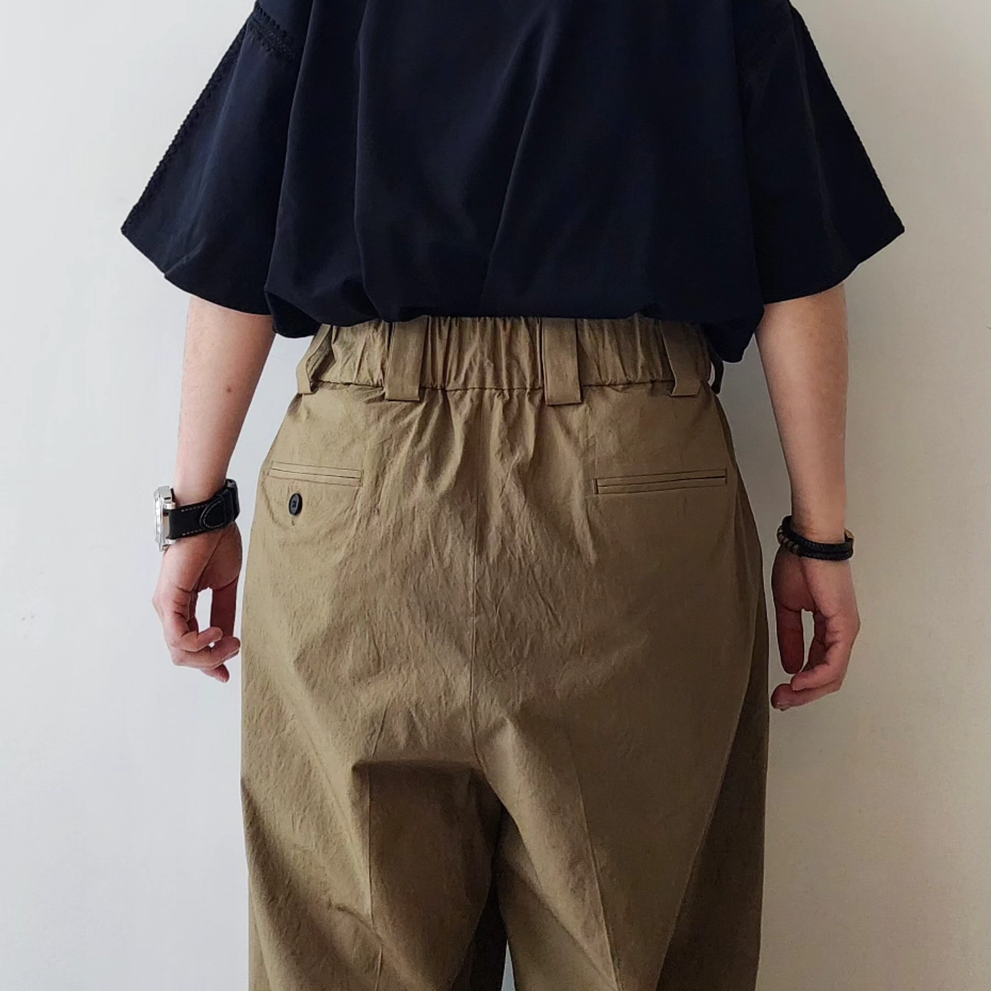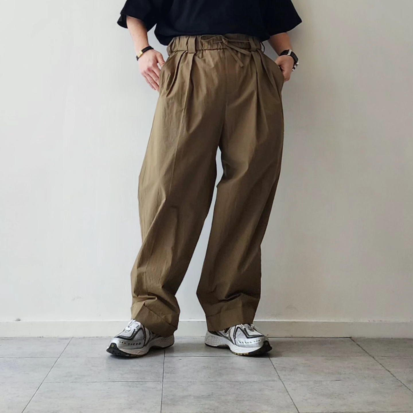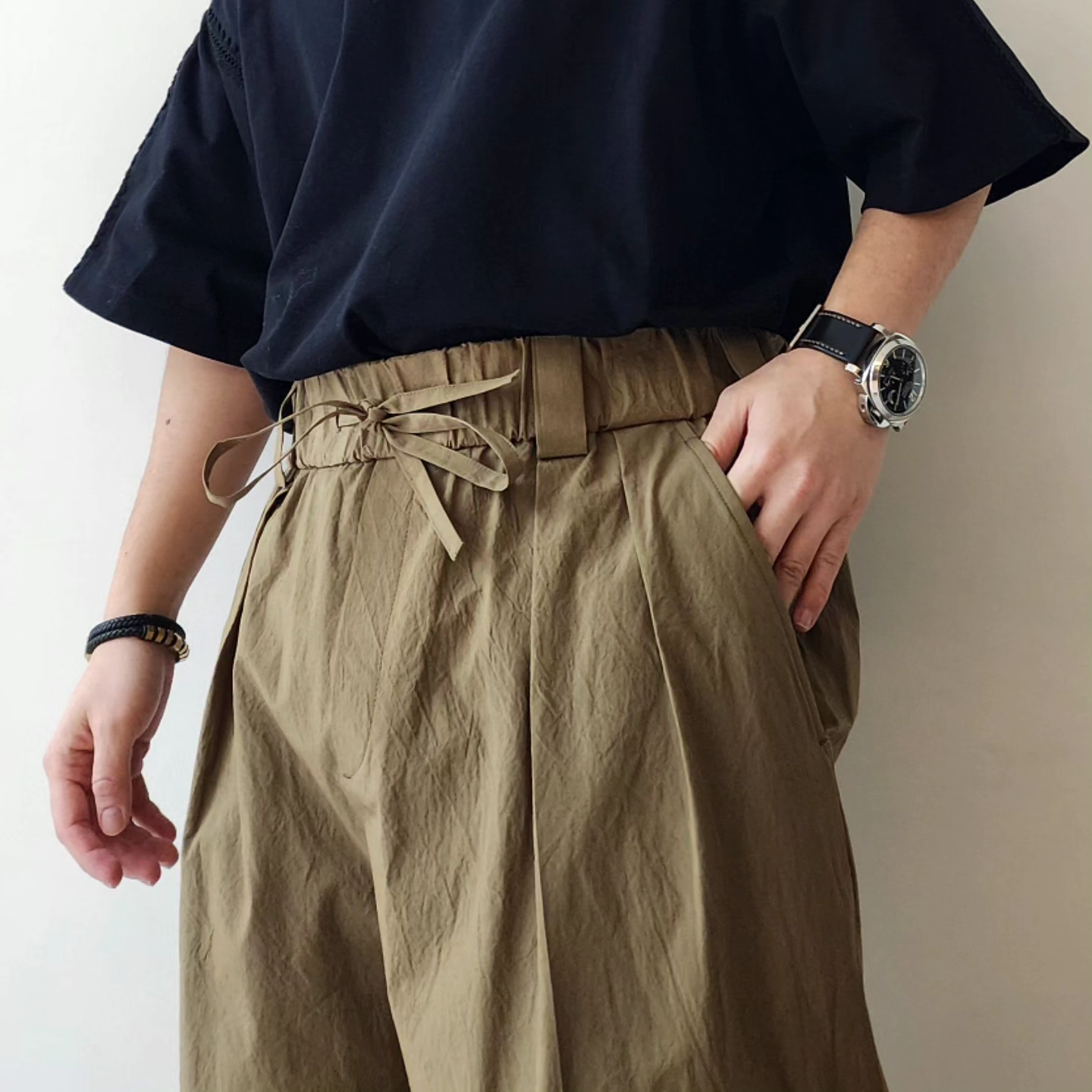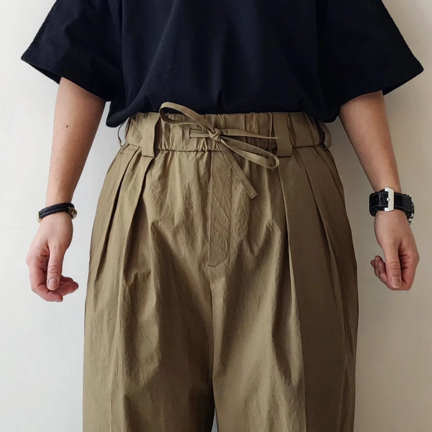 Easy specification with elastic waist and drawcord. It has a spacious and relaxed silhouette, but the double hem and center crease give it a comfortable fit.