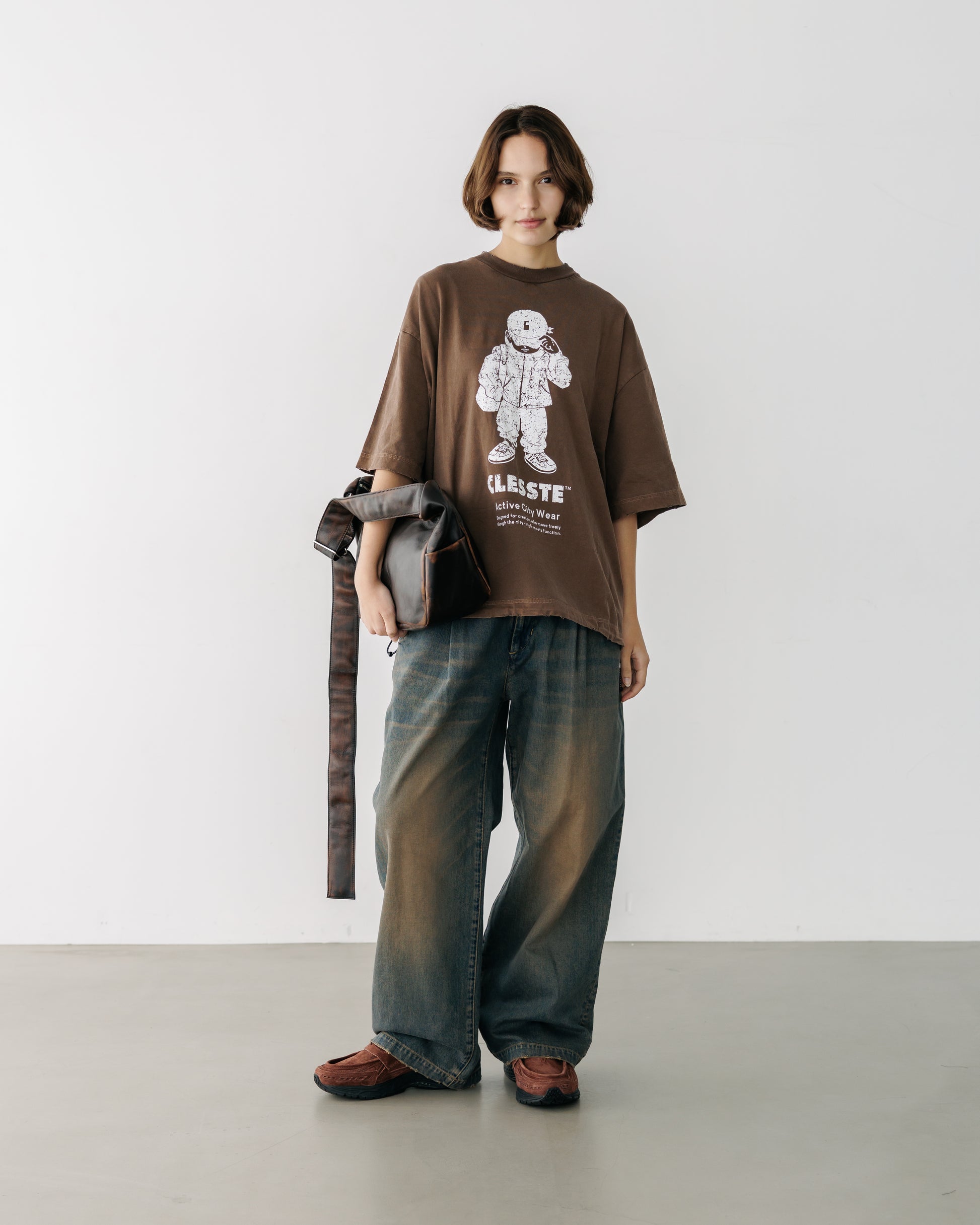 CLESSTE / 'Clesste Boy' Pigment Dyed S/S T-Shirt With Drawstrings (Faded Brown)