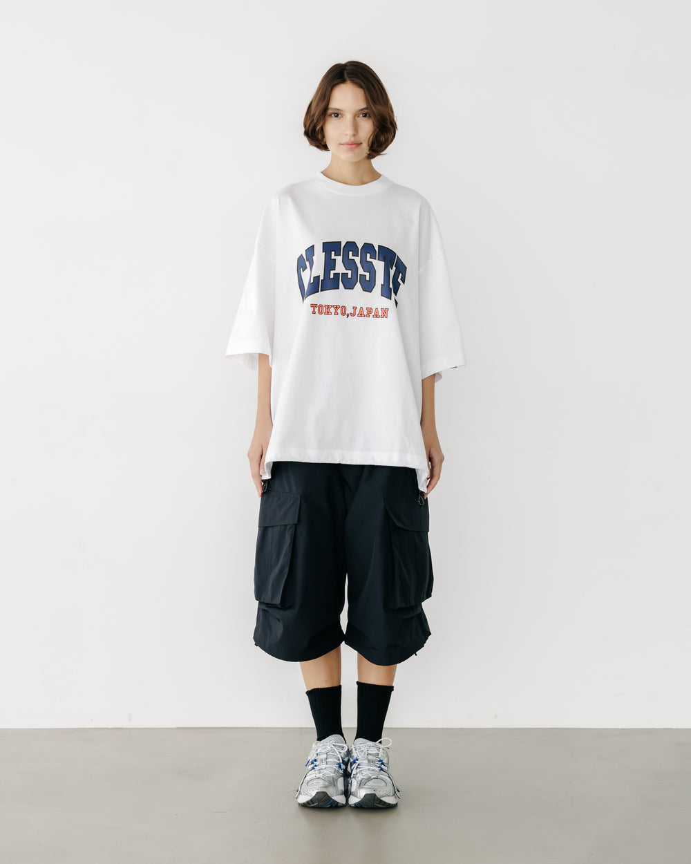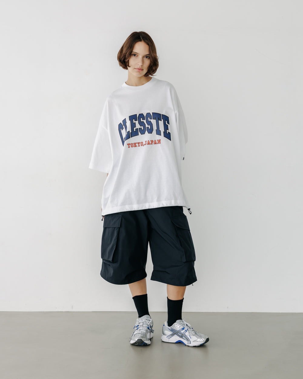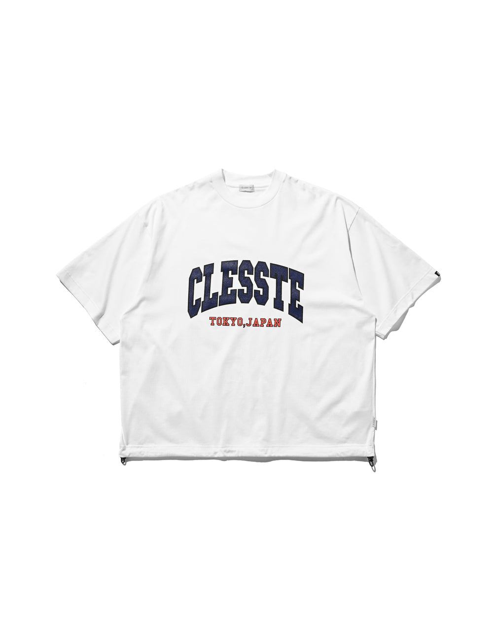 CLESSTE / College Logo Print Massive T-Shirt With Drawstrings (White)