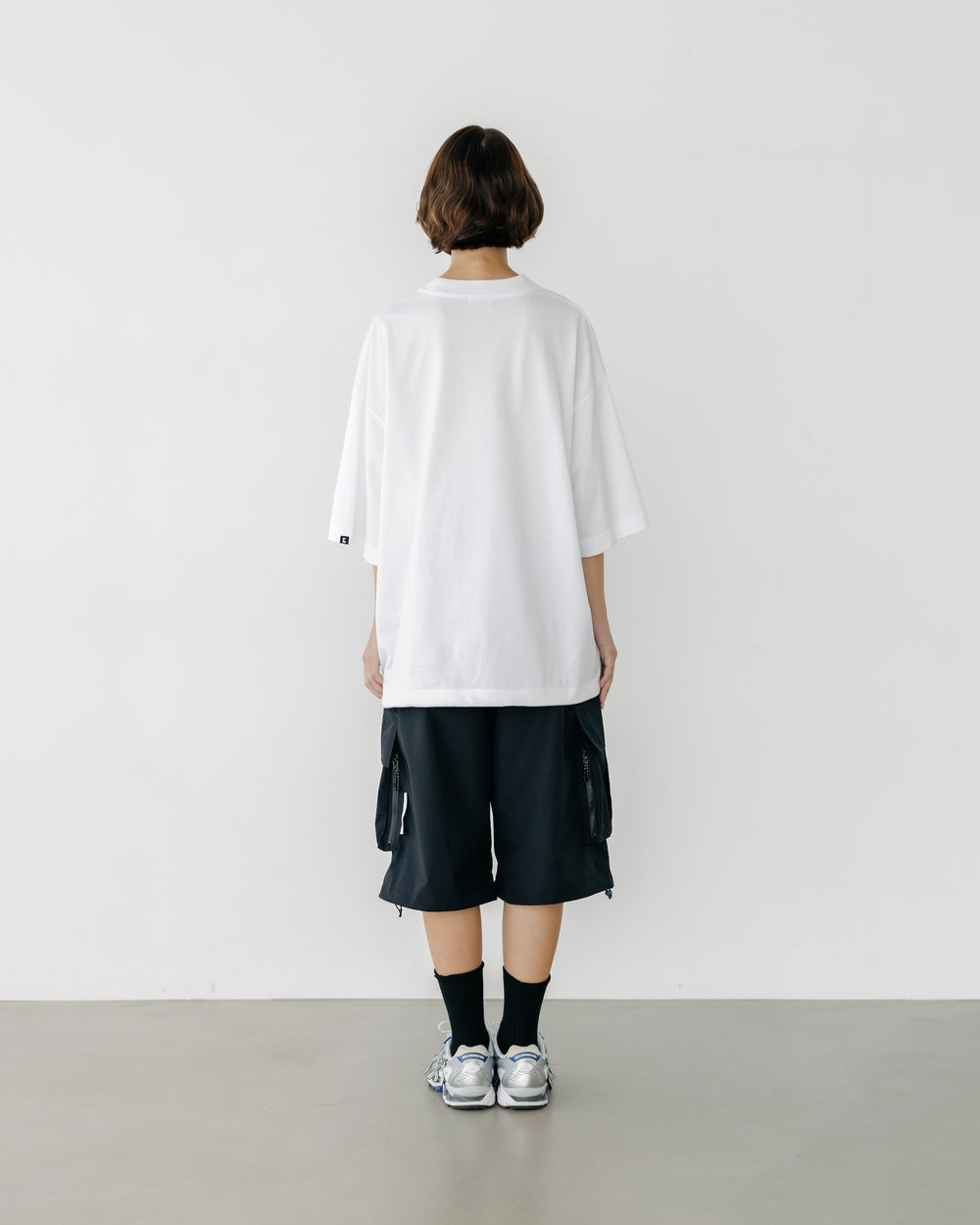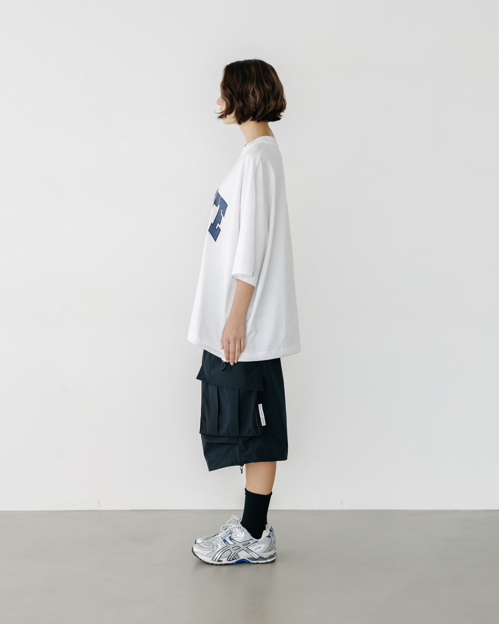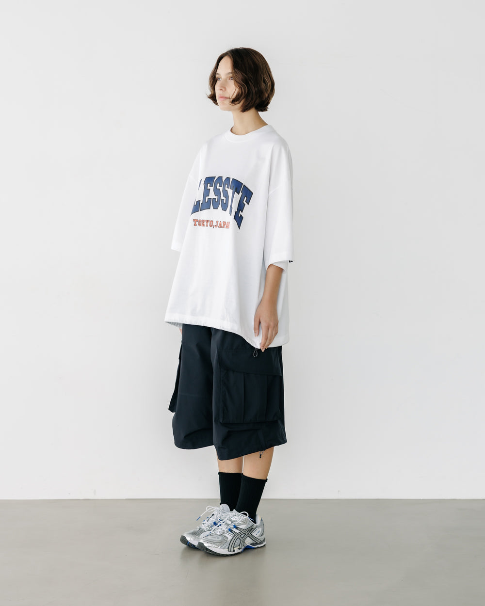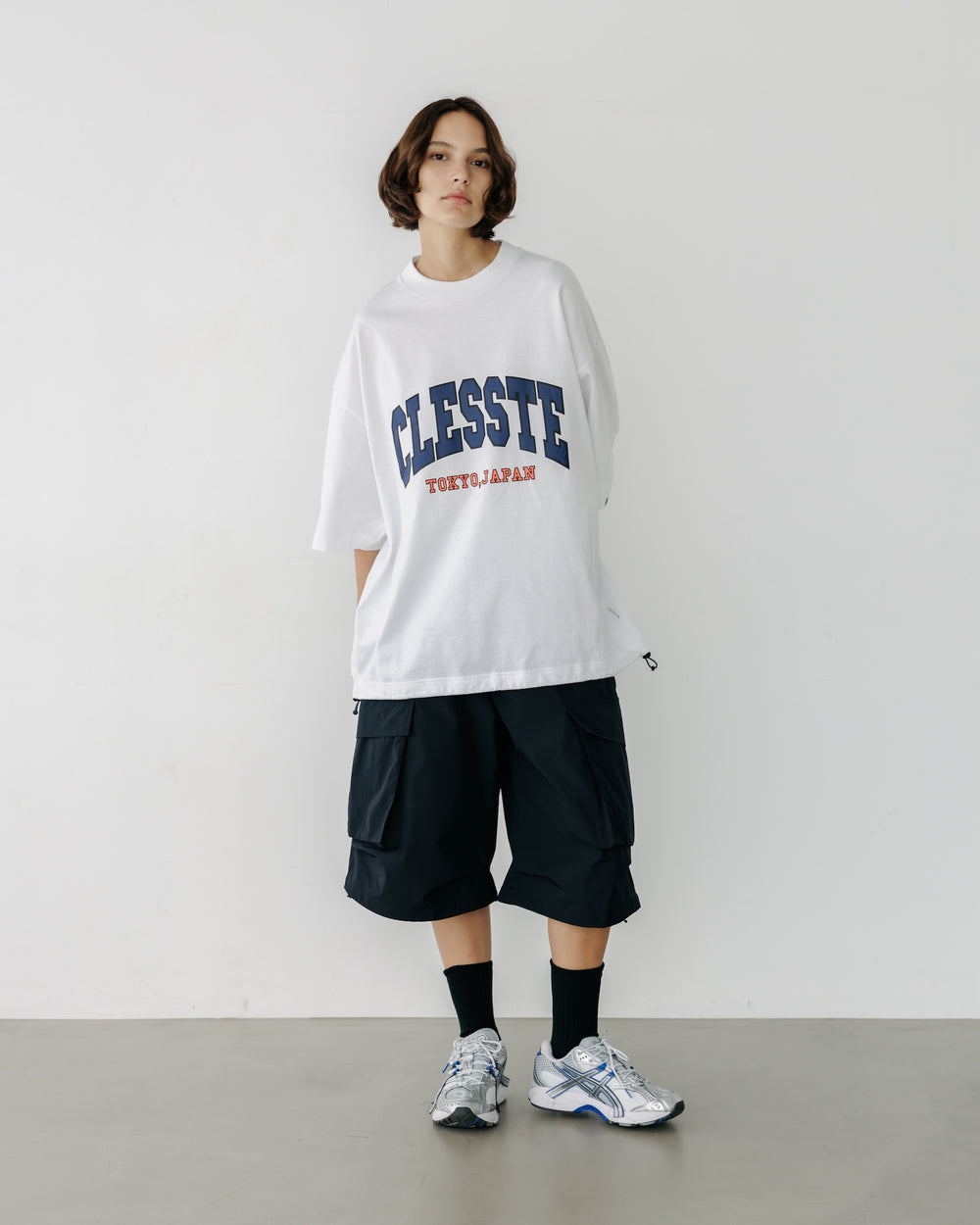 CLESSTE / College Logo Print Massive T-Shirt With Drawstrings (White)