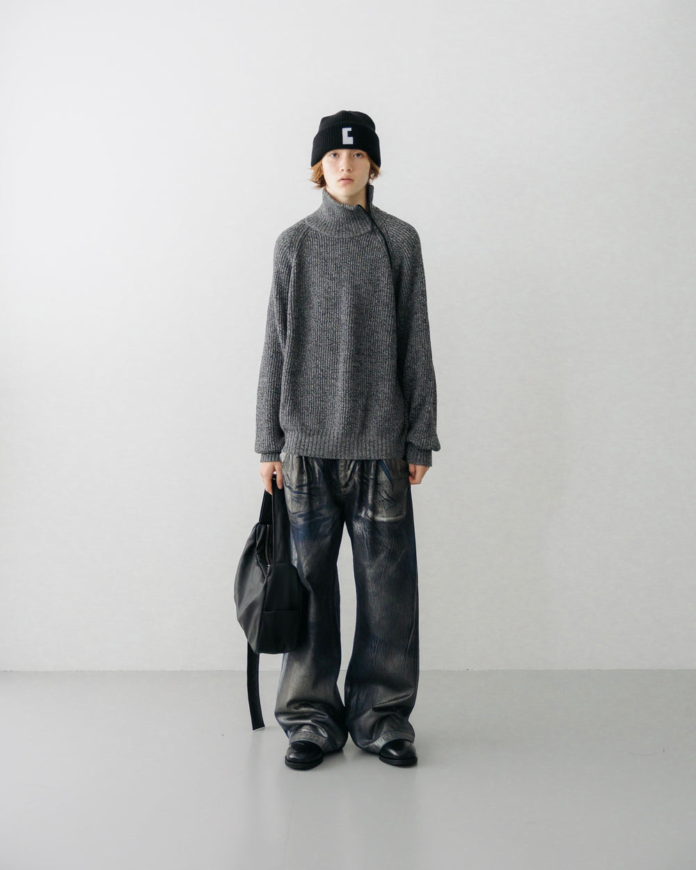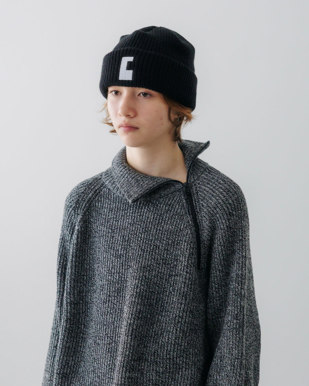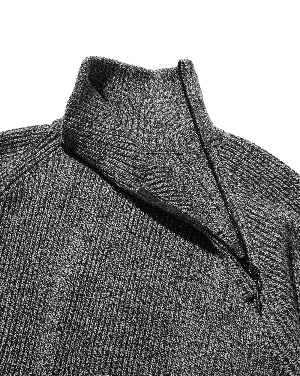-This half-zip knit is made of high-quality FINE WOOL and knitted at 7 gauge. The diagonally placed zip is a distinctive design. You can enjoy various styles by opening and closing the zip.