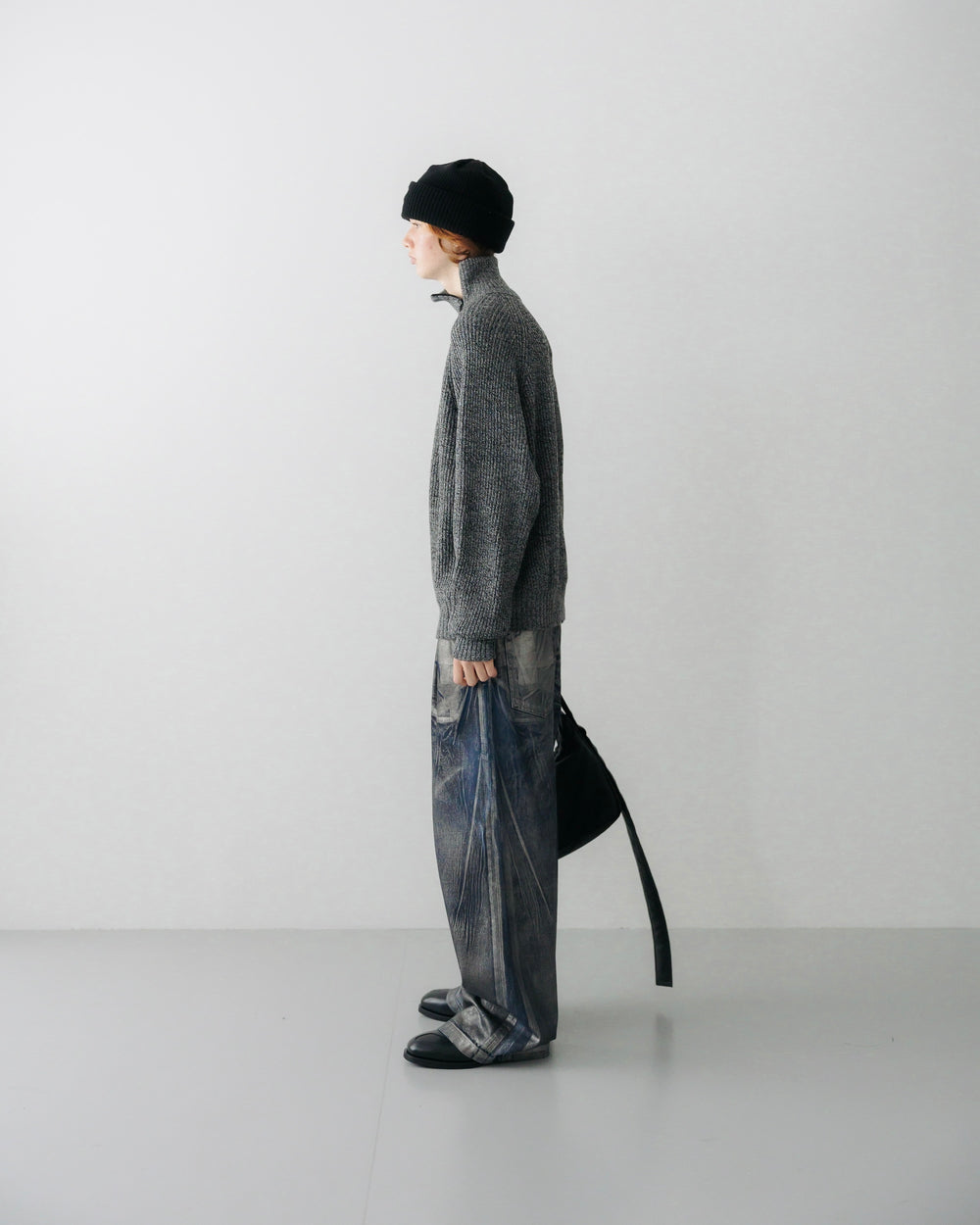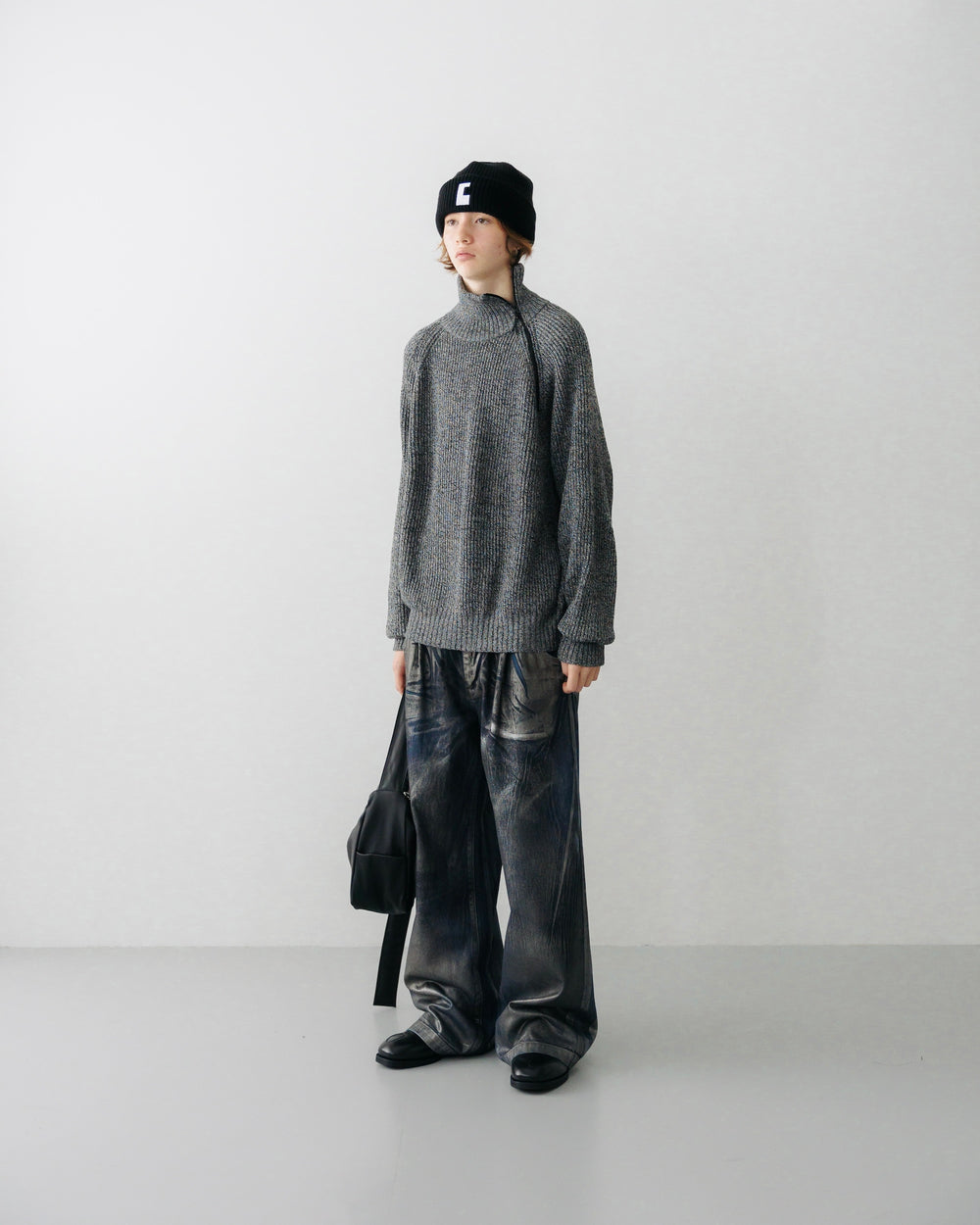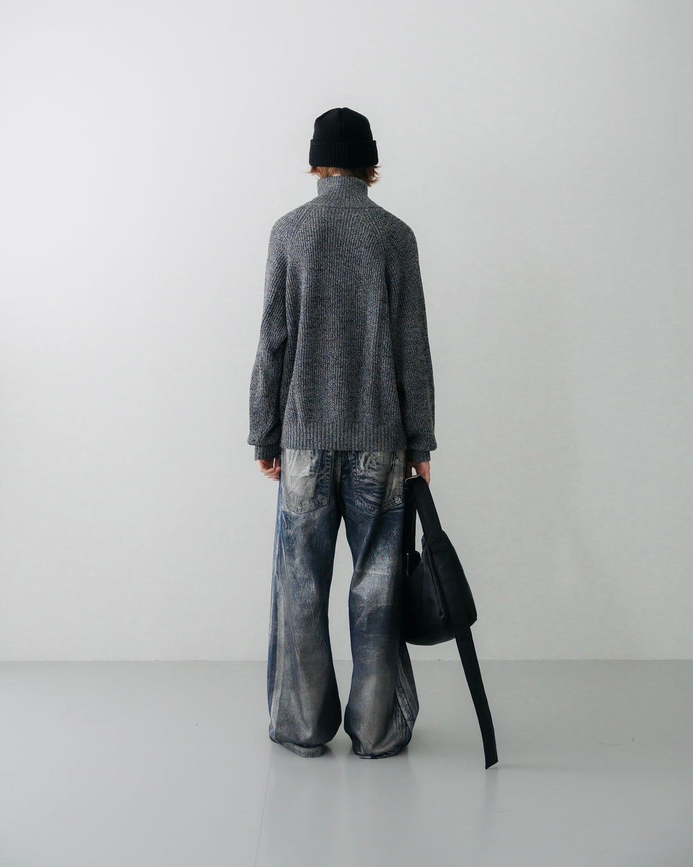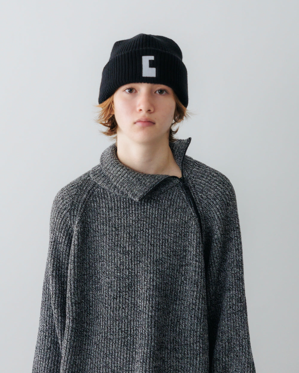-This half-zip knit is made of high-quality FINE WOOL and knitted at 7 gauge. The diagonally placed zip is a distinctive design. You can enjoy various styles by opening and closing the zip.