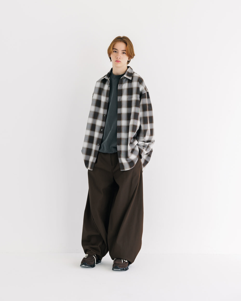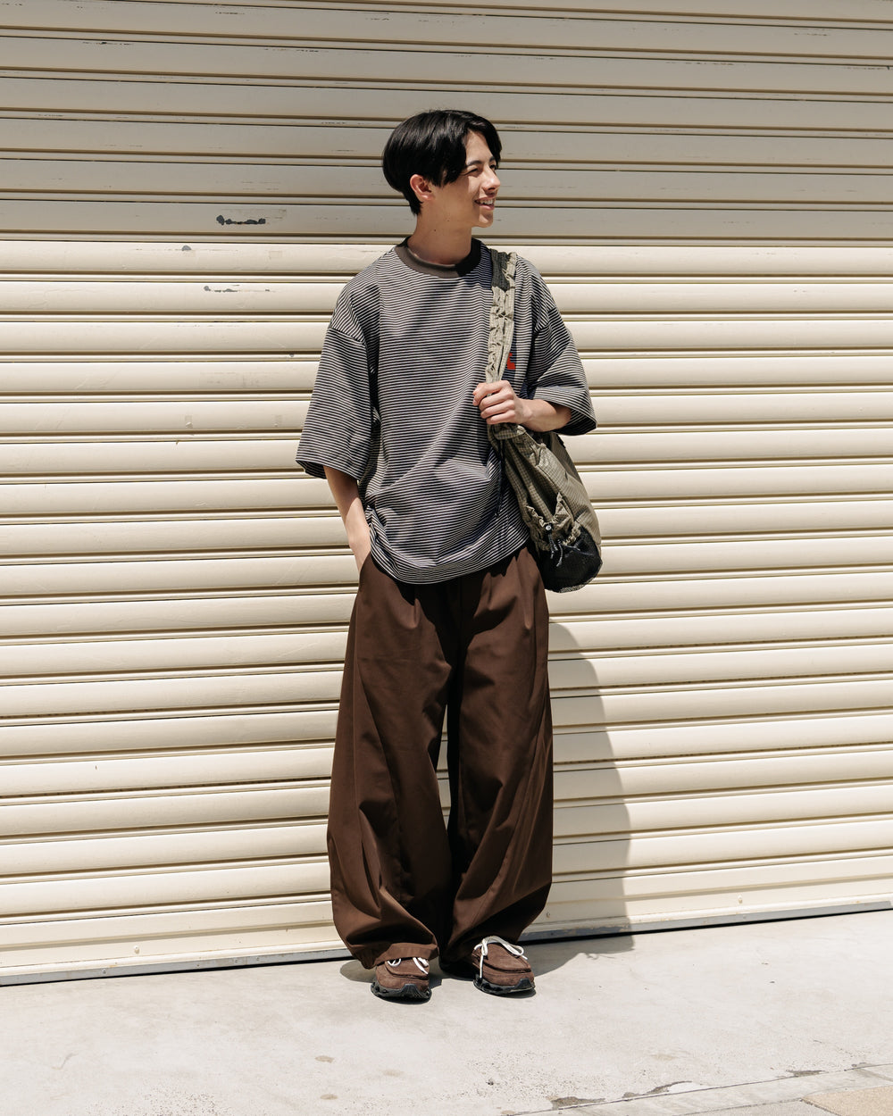 Wide pants with a rounded volume. MASSIVE TWISTED PANTS is a renewed version of the classic MASSIVE PANTS that has been around since the brand was launched.