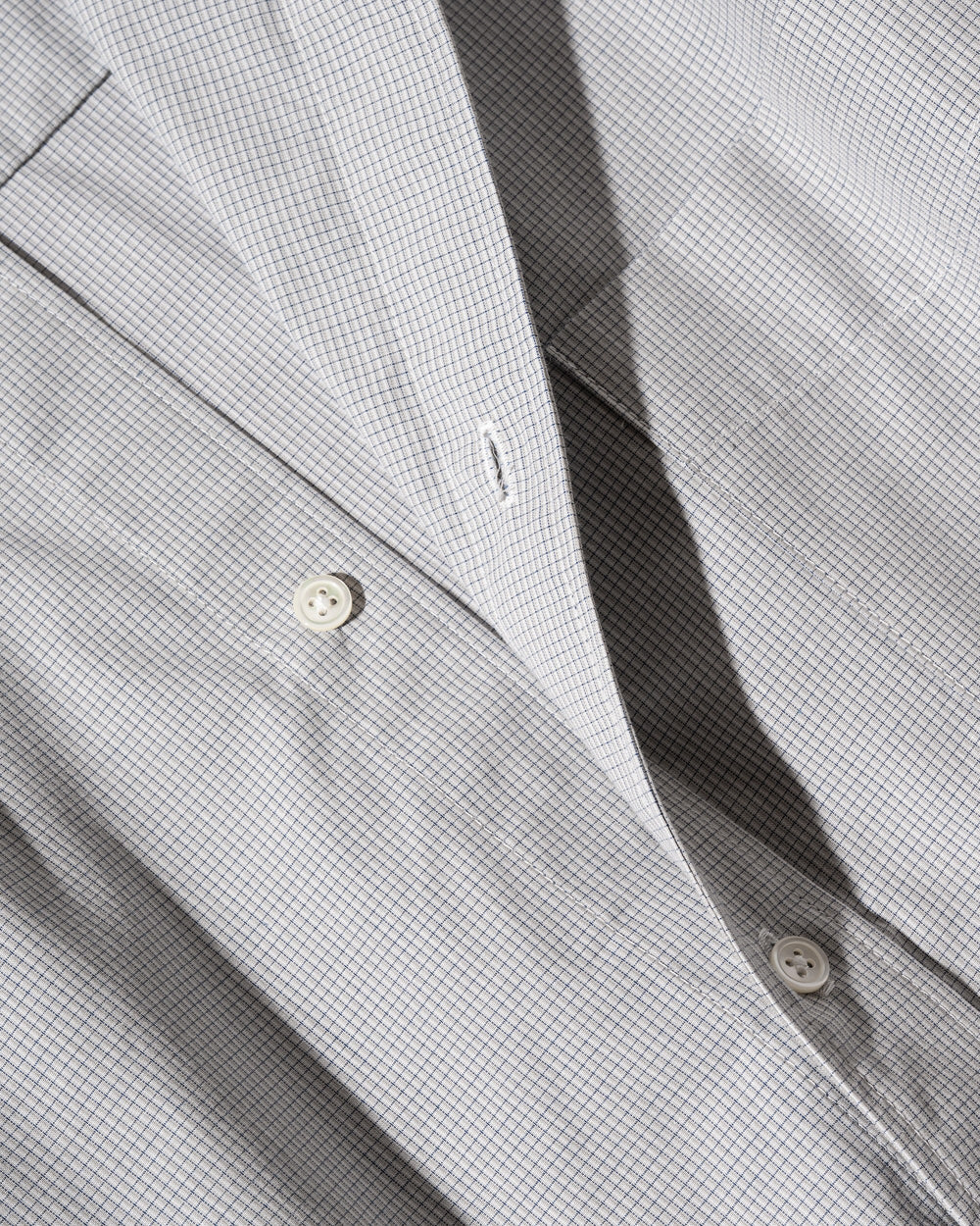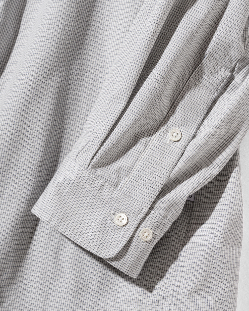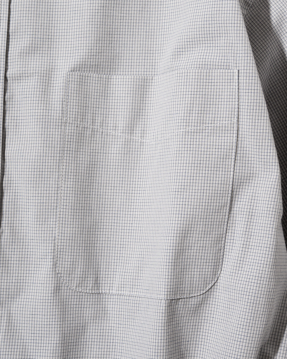 Although simple, the chest pocket and subtle check pattern add an elegant nuance, creating a relaxed adult style. Another point is its versatility, which allows it to be used with layered styles.