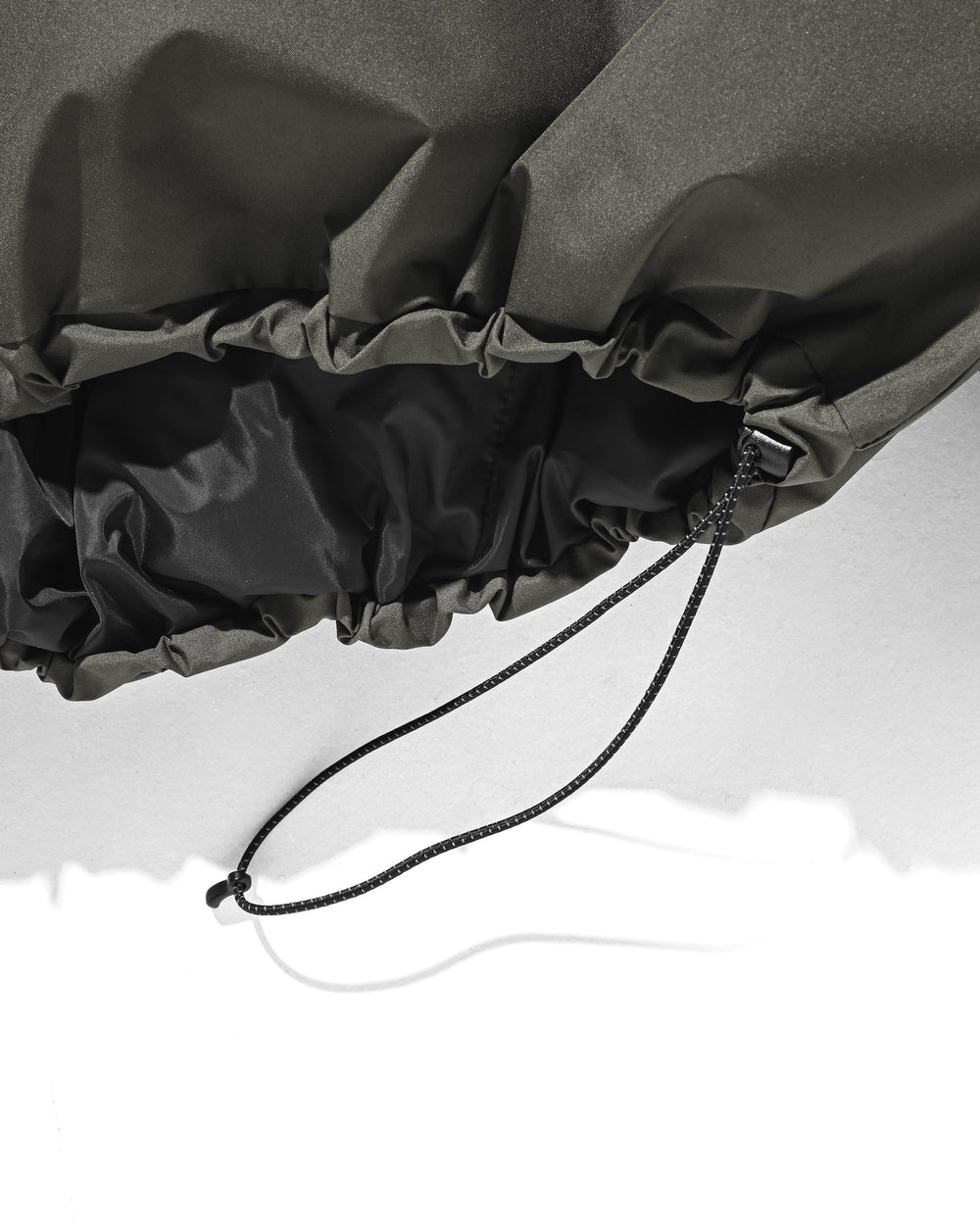 The cord on the hood allows you to adjust the fit, and the drawcord at the hem allows you to adjust the silhouette.