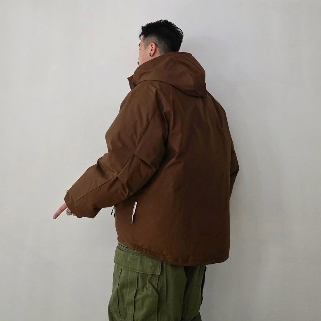 Based on the padded Happy Suit, a Level 7 standard under the US military's Extended Cold Weather Clothing System (ECWCS), designed for layering, this jacket features a contemporary, modern design.