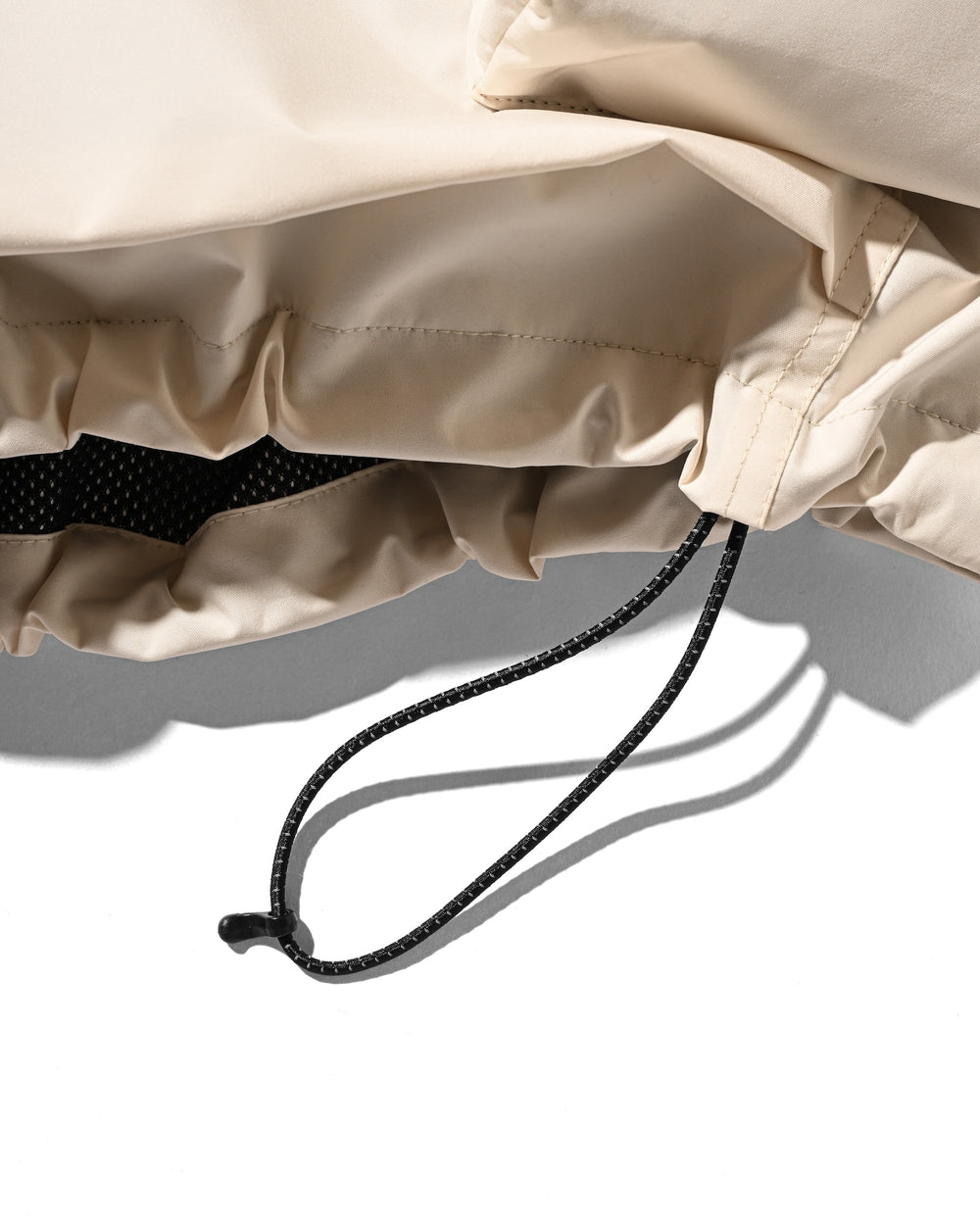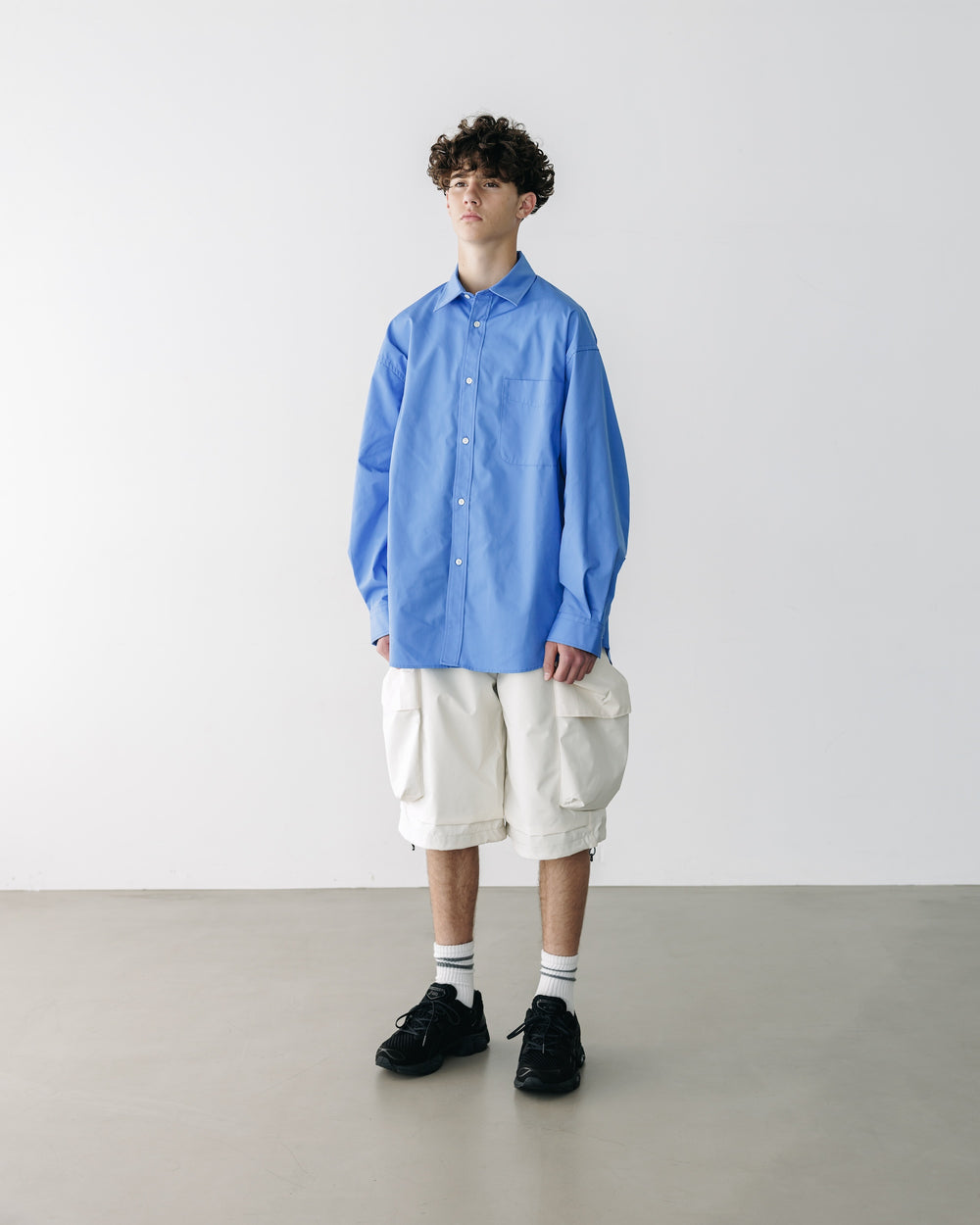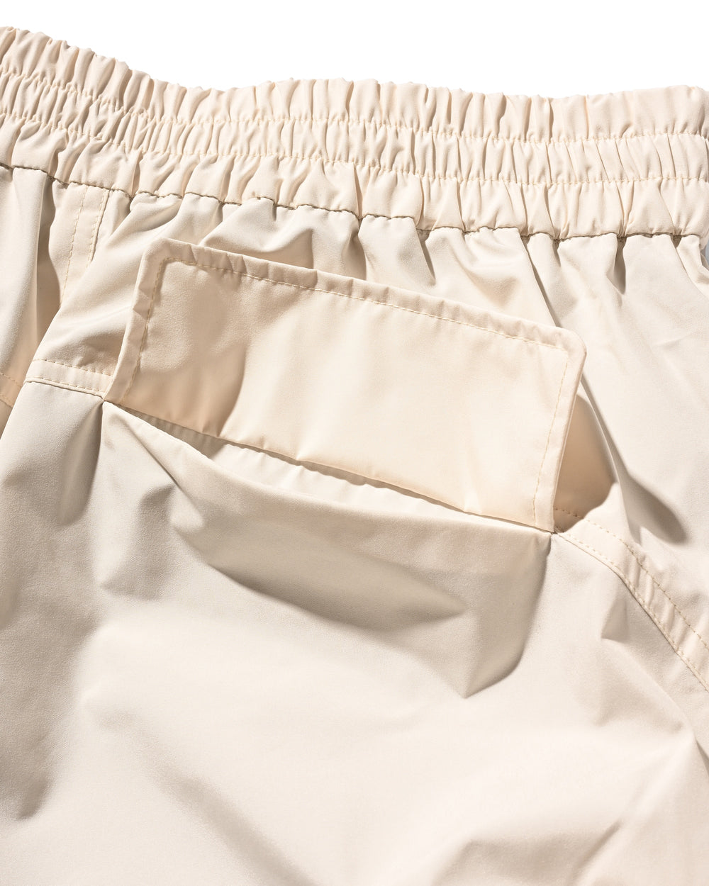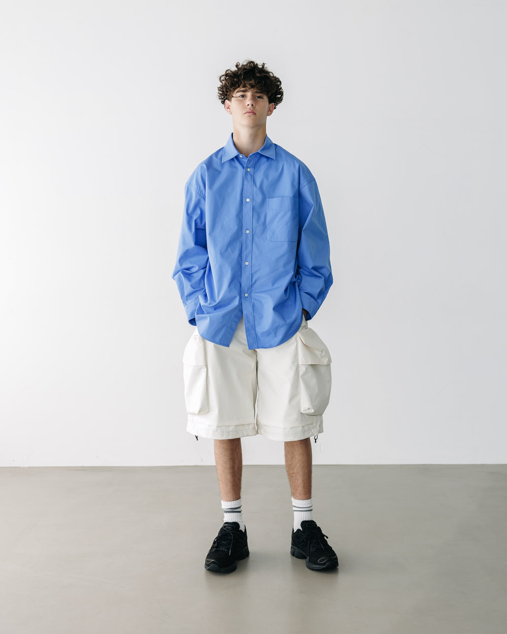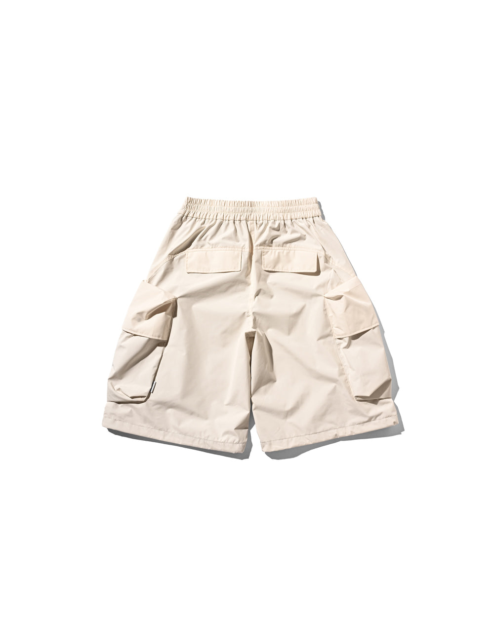 These half pants are based on the motif of overpants made to be worn over the M-51 cargo pants officially adopted in 1951, but have been updated to a more modern style. The side seams have a three-dimensional design with a twist on the front, and the cargo pockets on the sides have also been changed to a three-dimensional design. The waist is elastic and has a drawstring. There is also an adjuster at the hem.