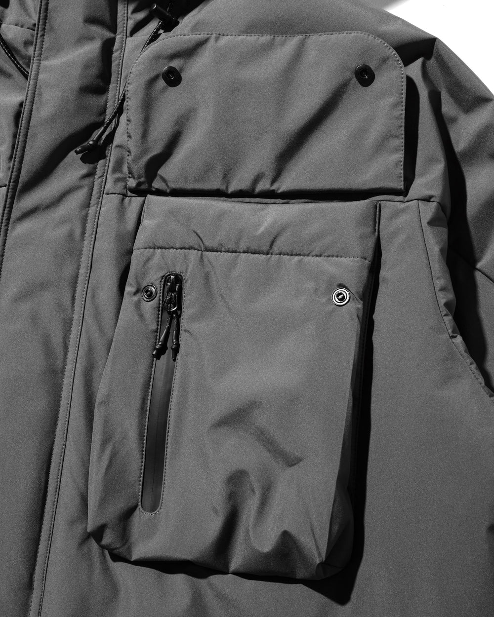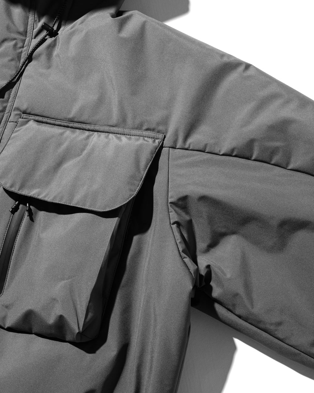 -PRIMALOFT® is used for the padding. This outerwear is perfect for the cold season, combining warmth and lightness. PRIMALOFT® is an advanced padding material that provides warmth and softness like down, while also being resistant to moisture and maintaining high heat retention. This is a versatile item that is perfect for daily use as well as use in cold regions and outdoor scenes.