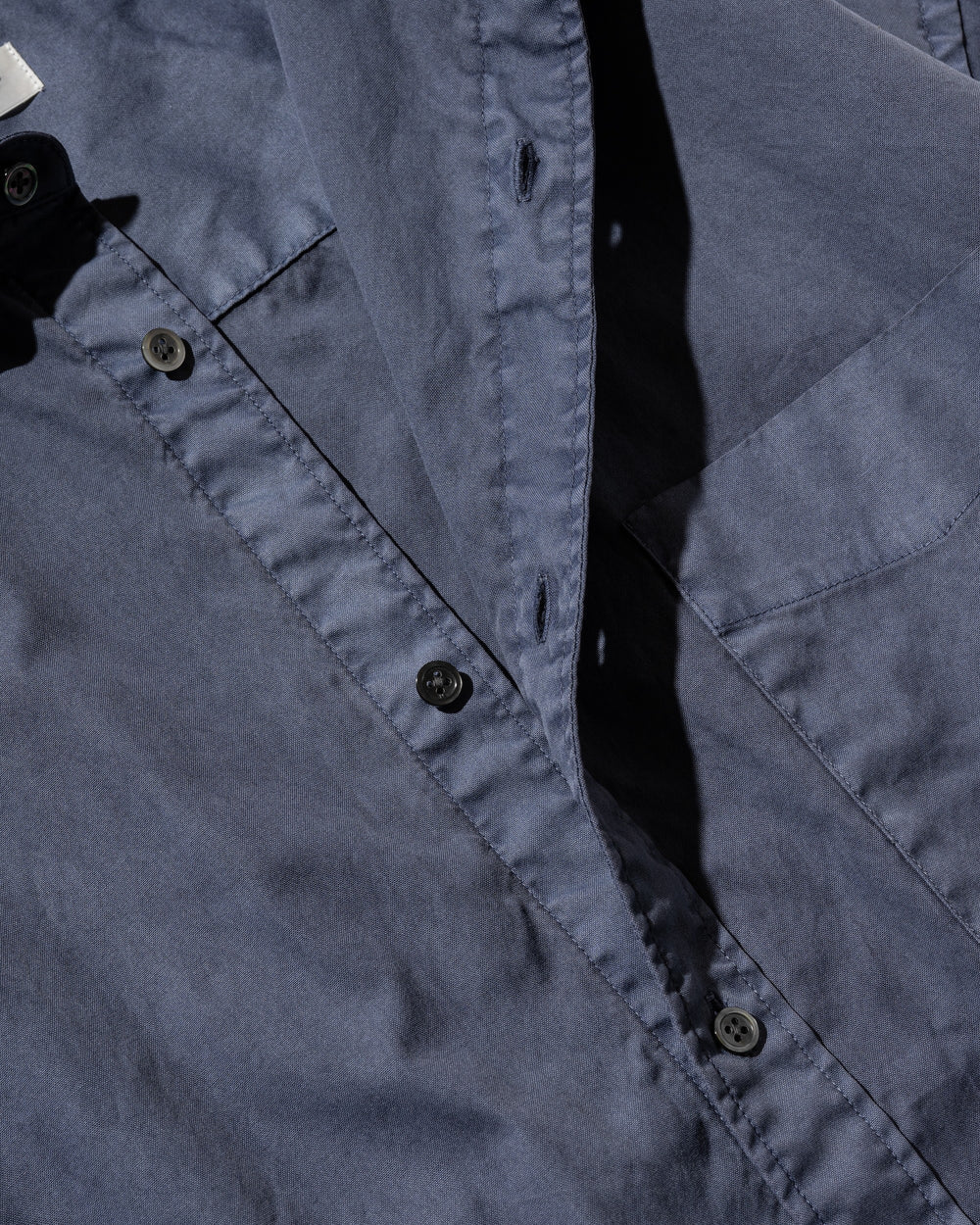 This Oxford shirt features a vintage-like texture and a modern silhouette. The cotton Oxford fabric is pigment-dyed to create a unique uneven color and faded look that differs from piece to piece. The more you wear it, the more the color fades, making it a piece you can enjoy changing over time.
