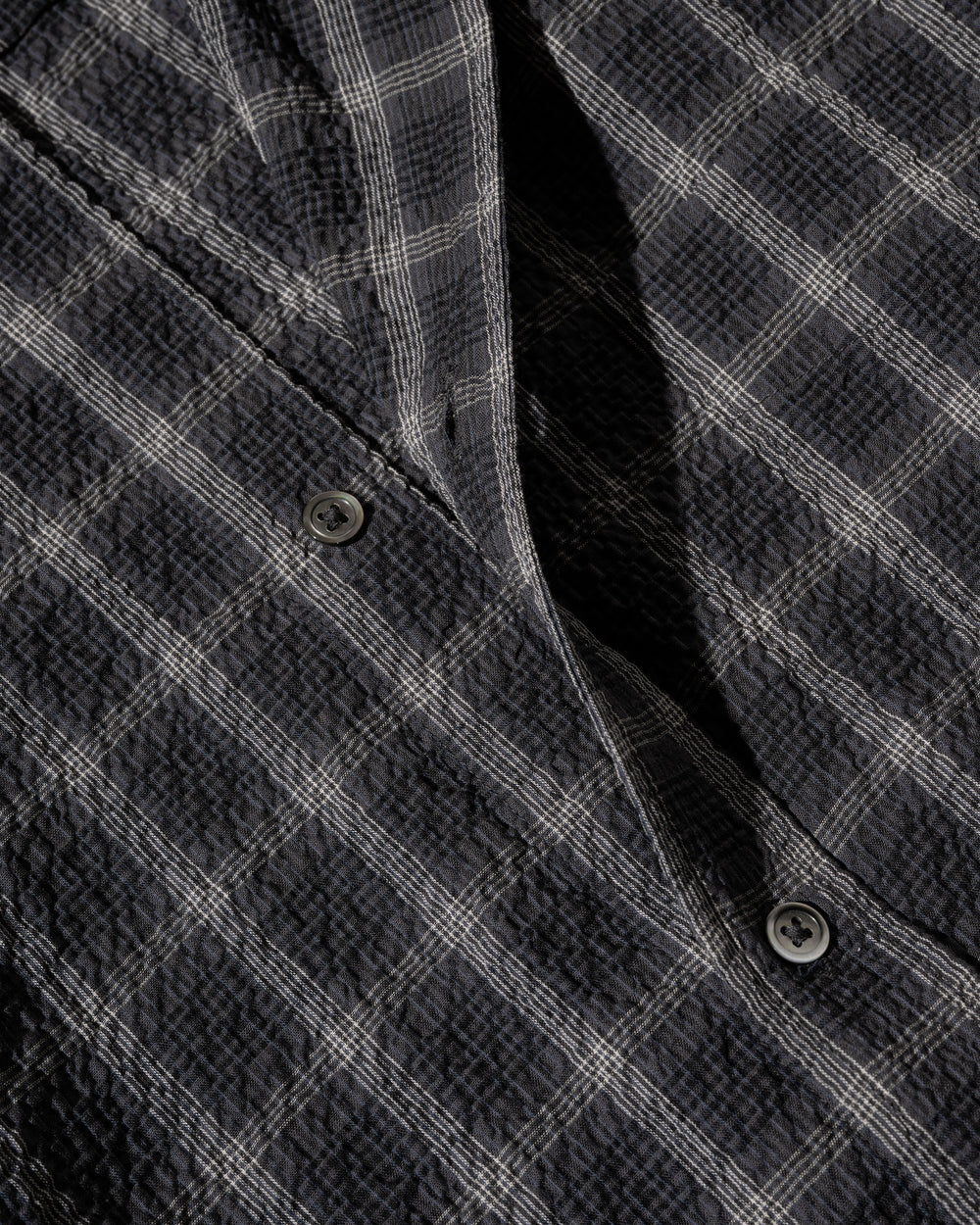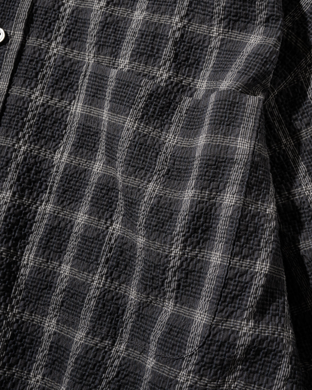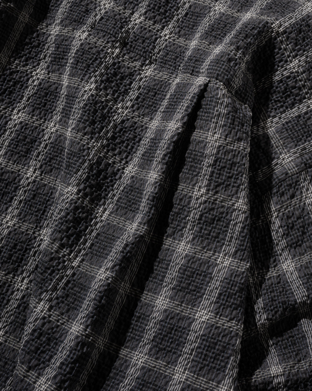 This piece is made of seersucker fabric, which features a unique uneven texture. It has a smooth and dry texture that does not stick to the skin even on sweaty days. With just the right amount of firmness and lightness, it is an item that gives a relaxed yet elegant impression. In addition, it is less likely to wrinkle after washing, so it can be used daily without ironing.