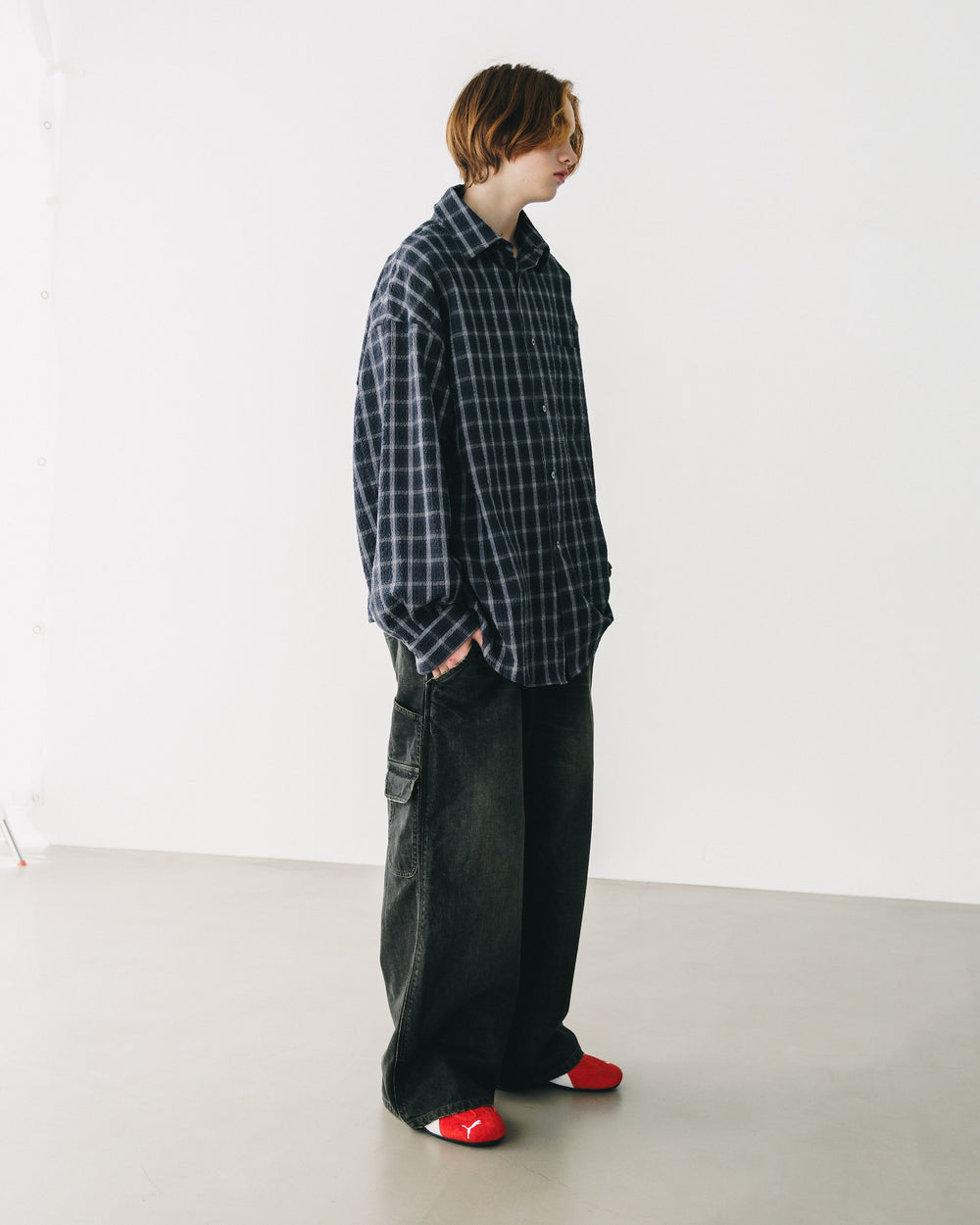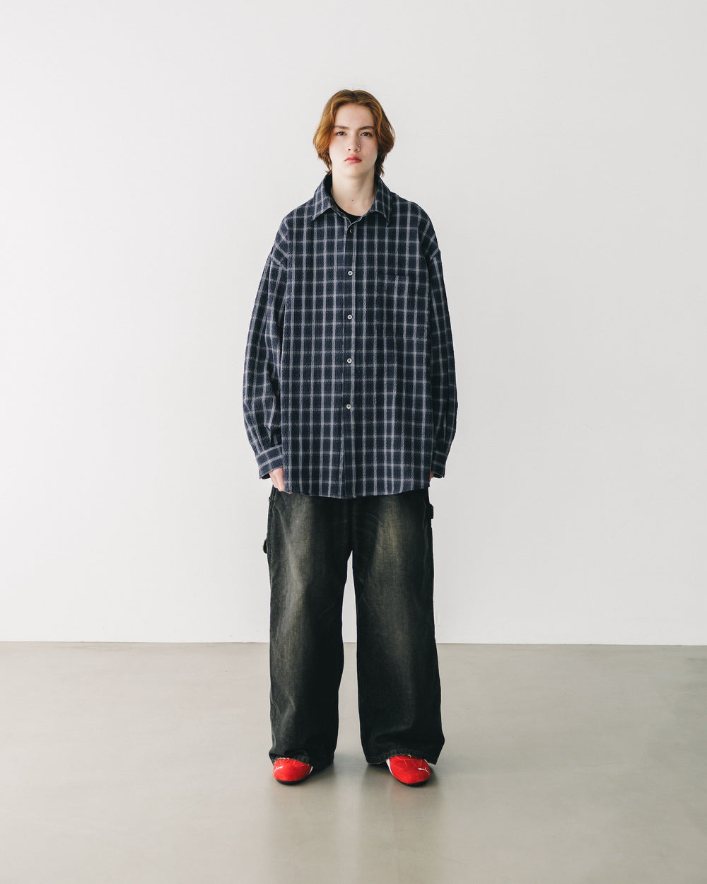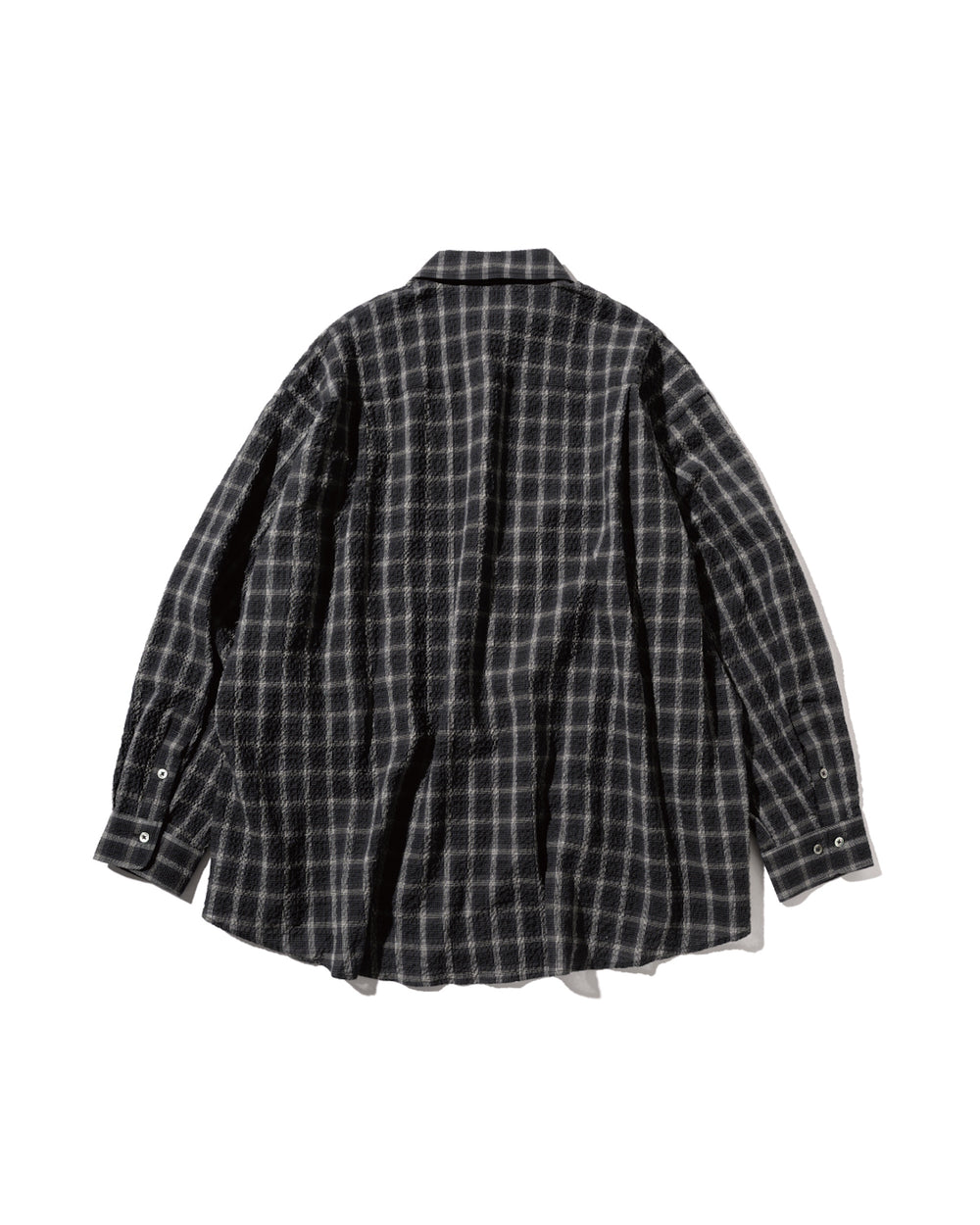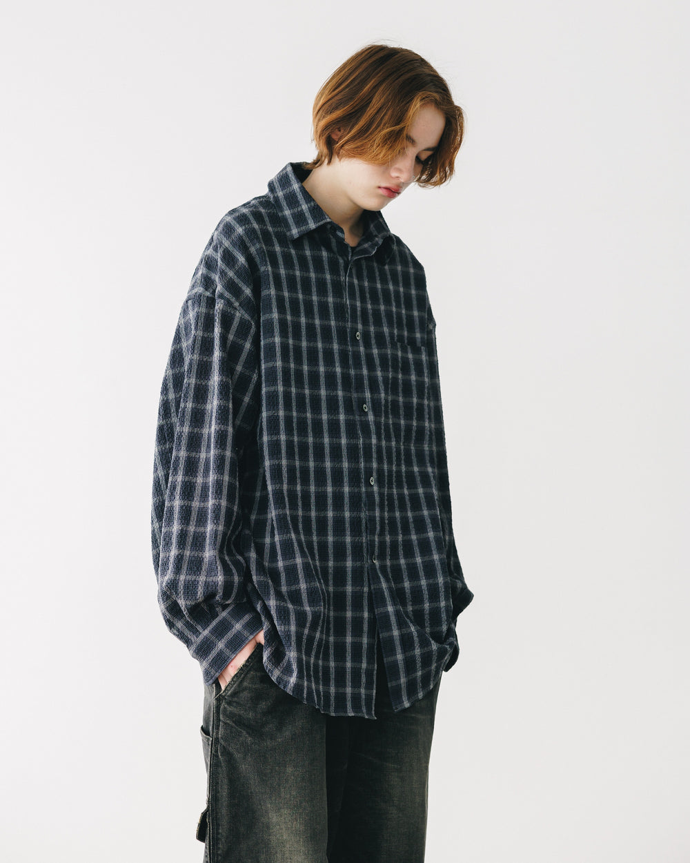 This piece is based on the classic American shirt design, but reconstructed with a modern urban sensibility. It features a large collar that maintains a classic atmosphere while adding an accent to your styling. The overall silhouette is oversized, giving it a relaxed and comfortable fit. The sleeves feature a three-dimensional pattern, combining ease of movement and design.