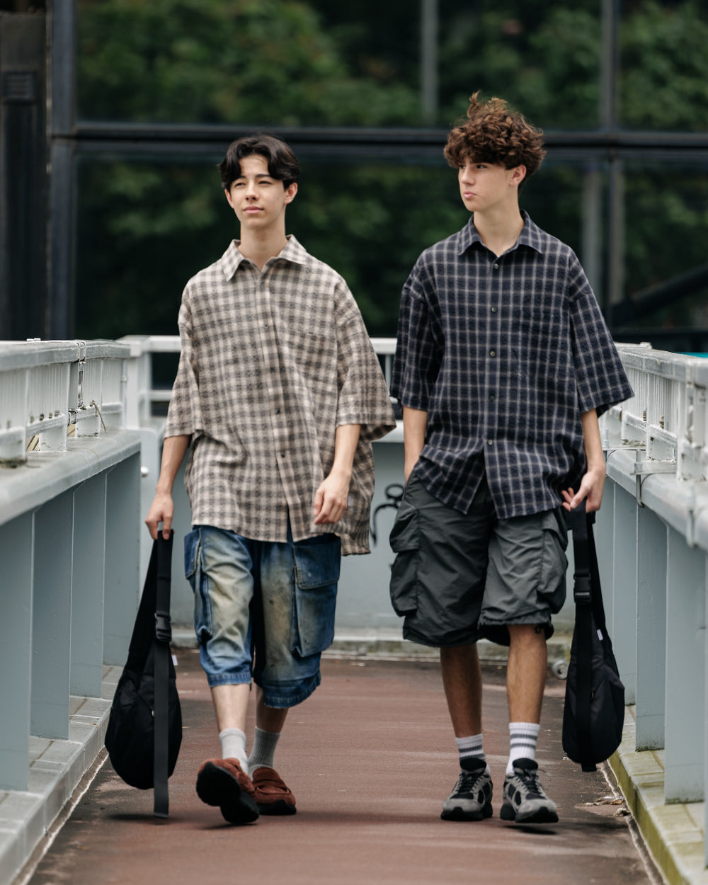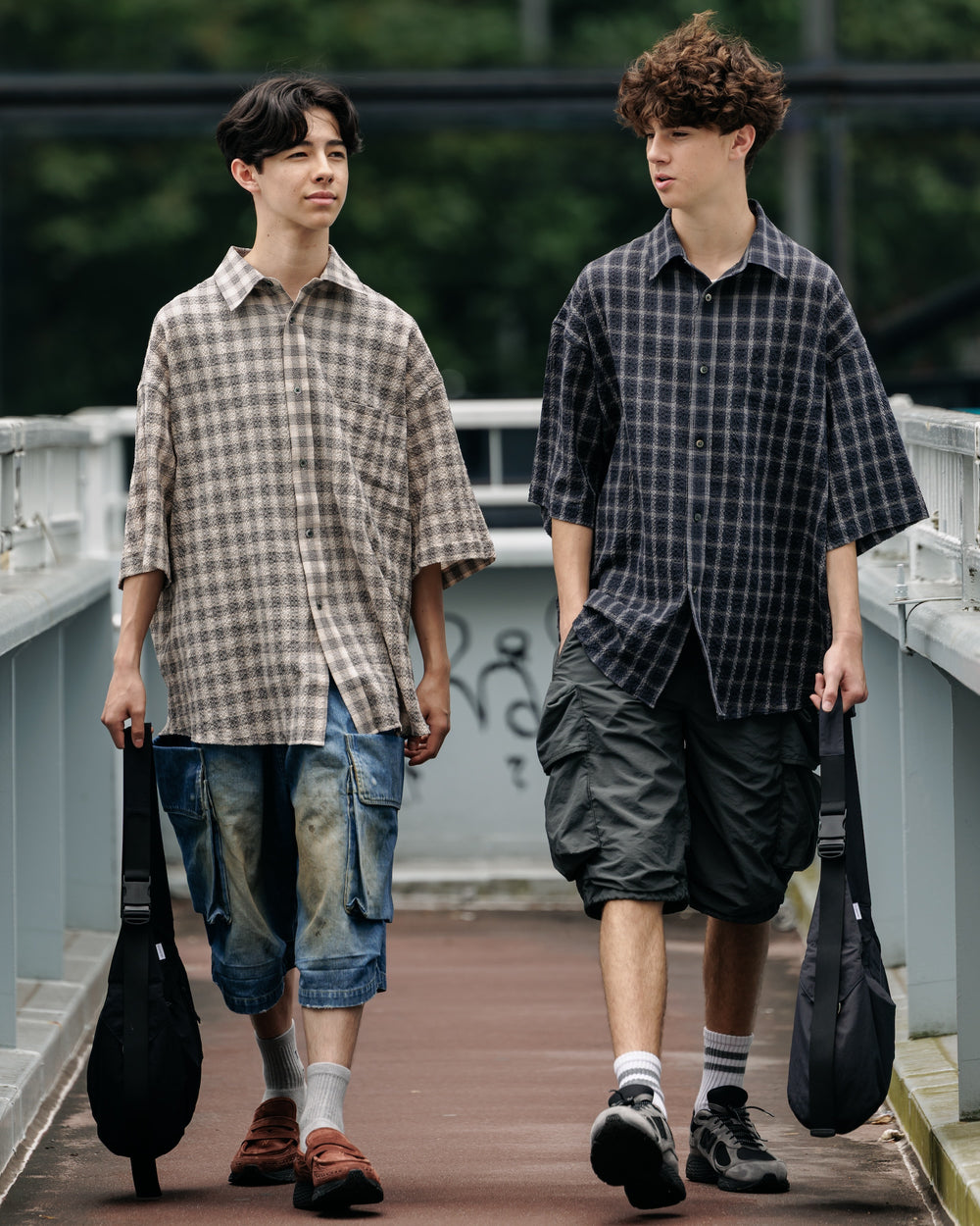 This piece is based on the classic American shirt design, but reconstructed with a modern urban sensibility. It features a large collar that maintains a classic atmosphere while adding an accent to your styling. The overall silhouette is oversized, giving it a relaxed and comfortable fit. The sleeves feature a three-dimensional pattern, combining ease of movement and design.