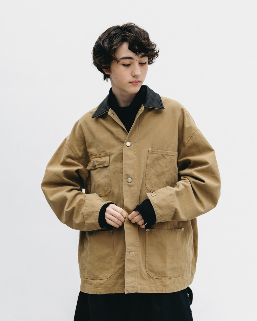 Based on the motif of a chore coat, this utility coat has been reconstructed with a modern size balance to create a low-over silhouette, combining the ruggedness of classic workwear with a relaxed, urban silhouette.