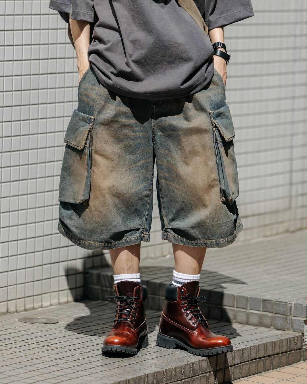 CLESSTE / Vintage Dyed Selvedge Denim City Military Half Pants (Vintage Brown)