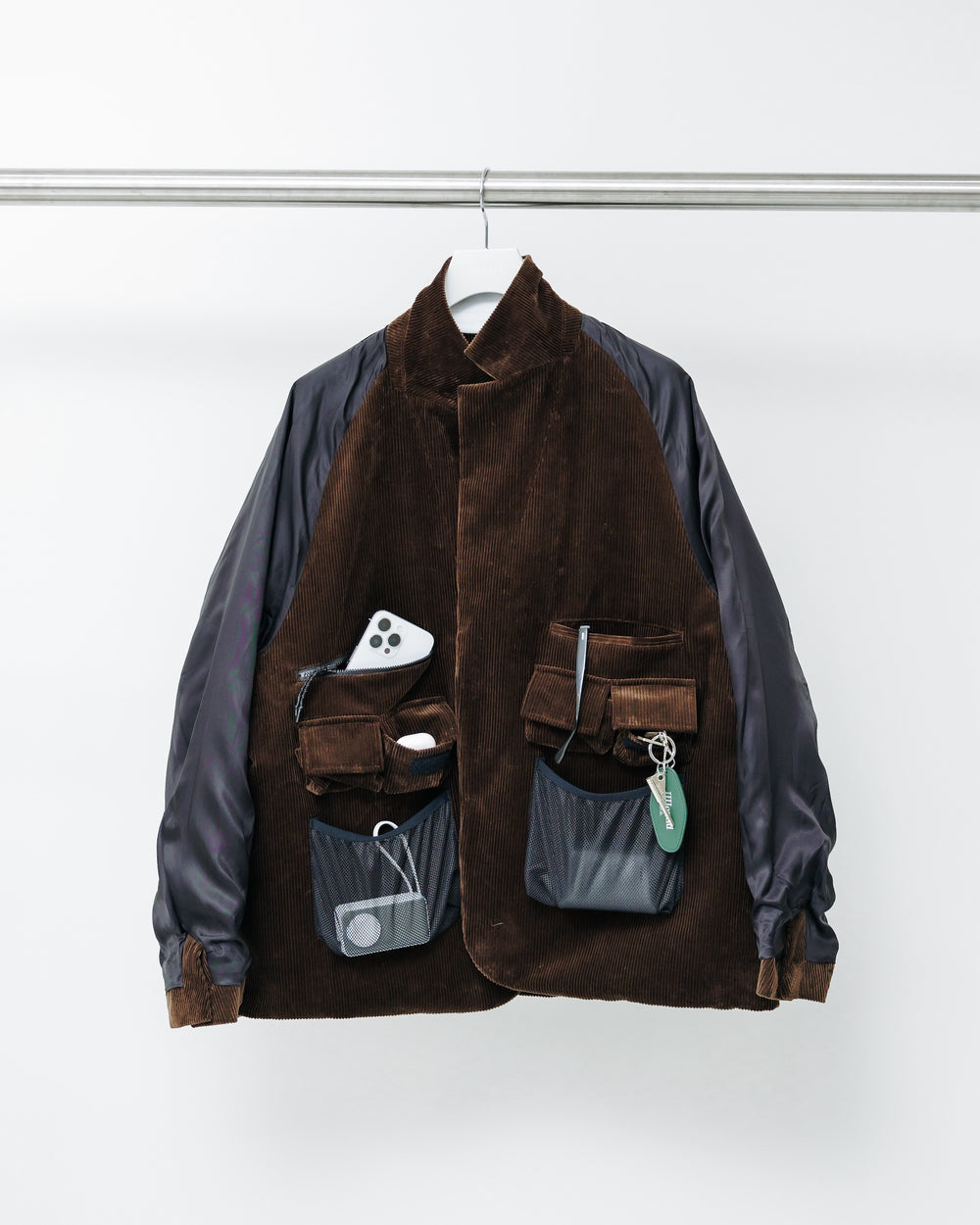 -Equipped with many pockets for creators. Eight inner pockets and two outer pockets for storage. Based on a notch lapel 2B single suit, it has raglan sleeves and is easy to wear for a wide range of people. The collar can also be worn as a stand-up collar.