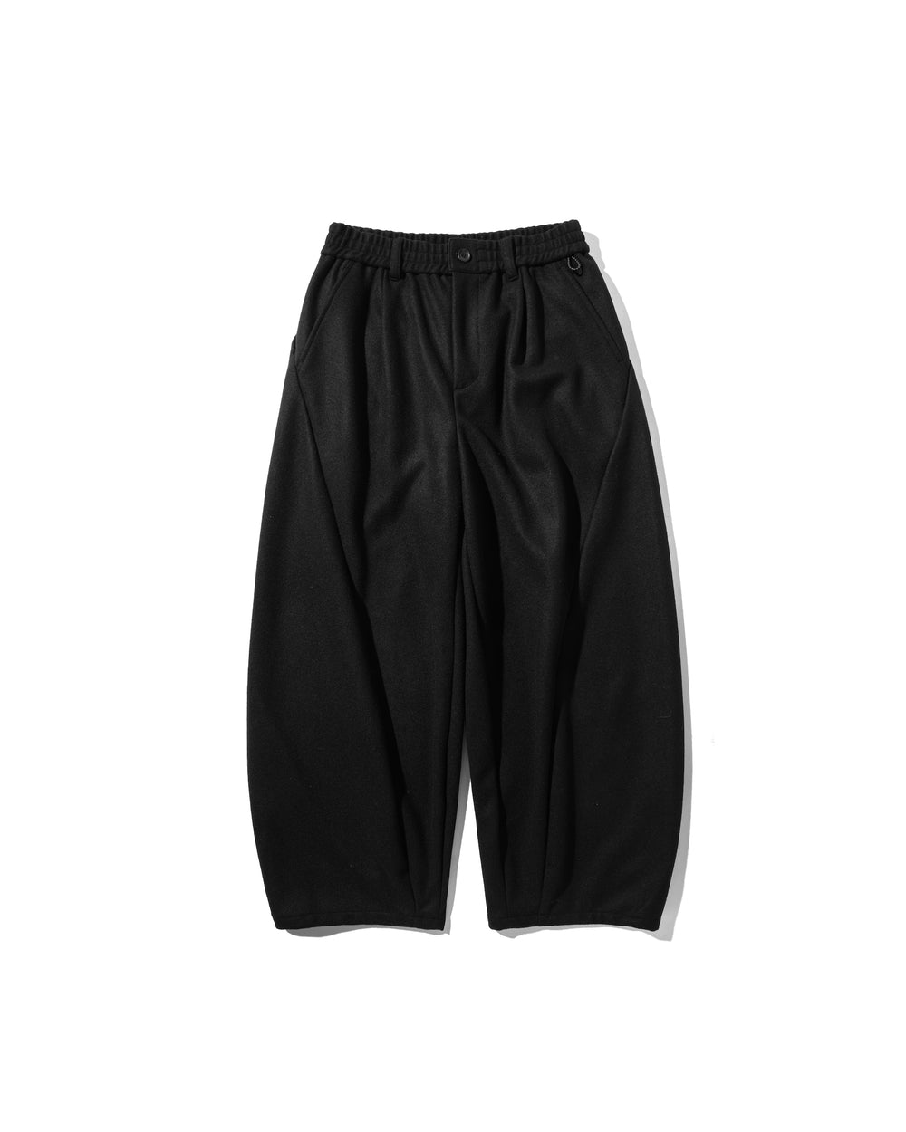 -Wide pants with a rounded volume. Made of warm wool melton material, this is the perfect piece for the fall and winter season.