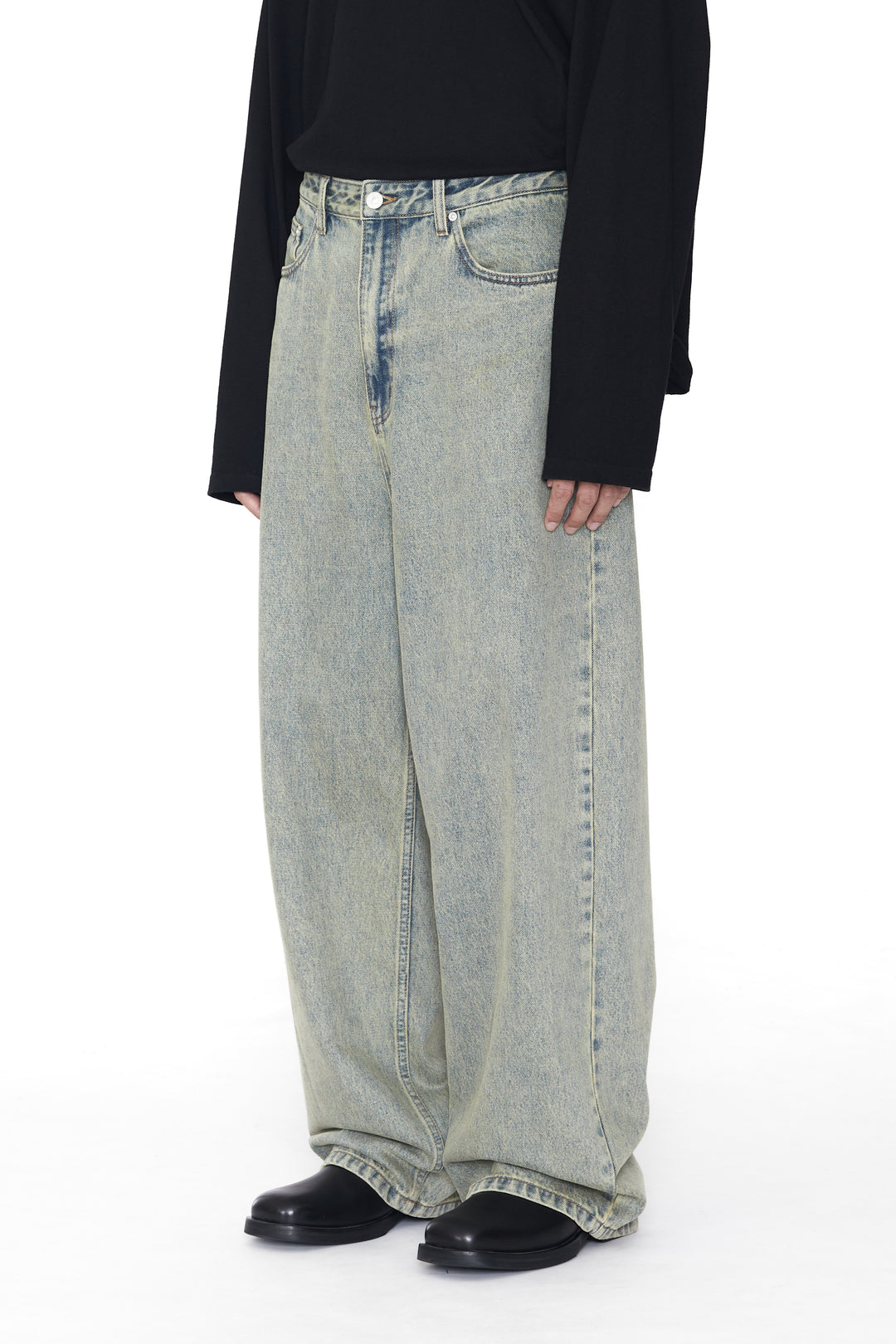 Wide-leg Luft jeans in indigo acid wash.