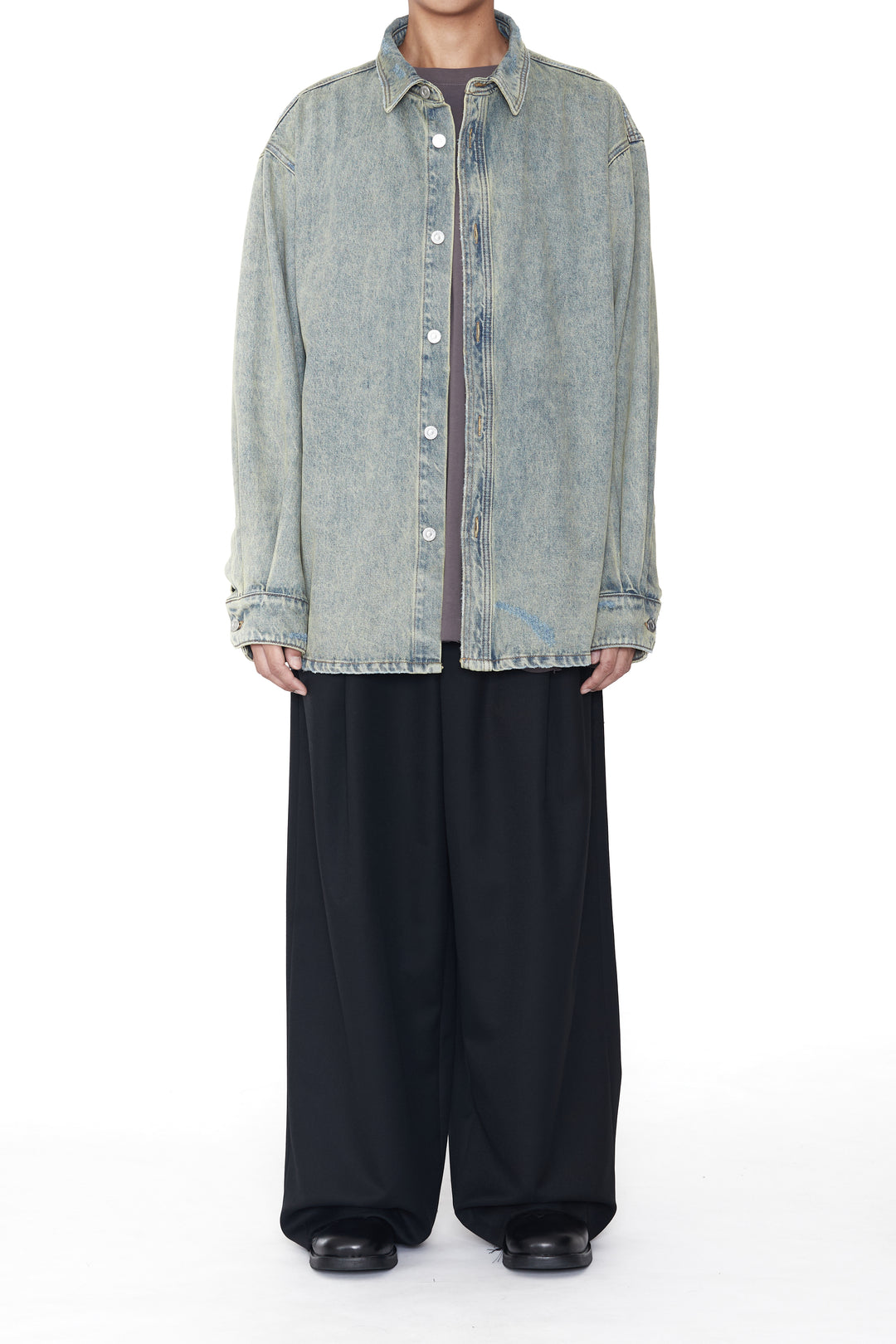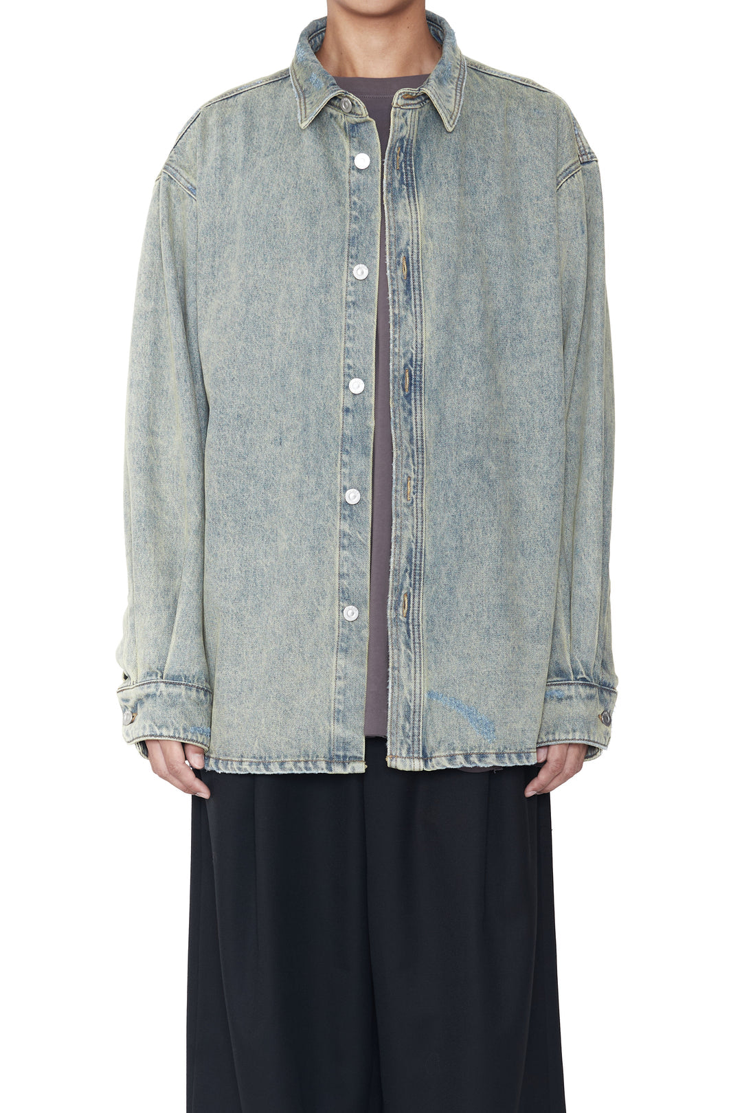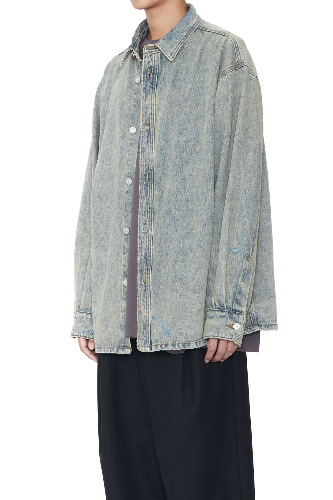 CODA / Indigo Acid Washed Distressed Oversized Denim Shirt