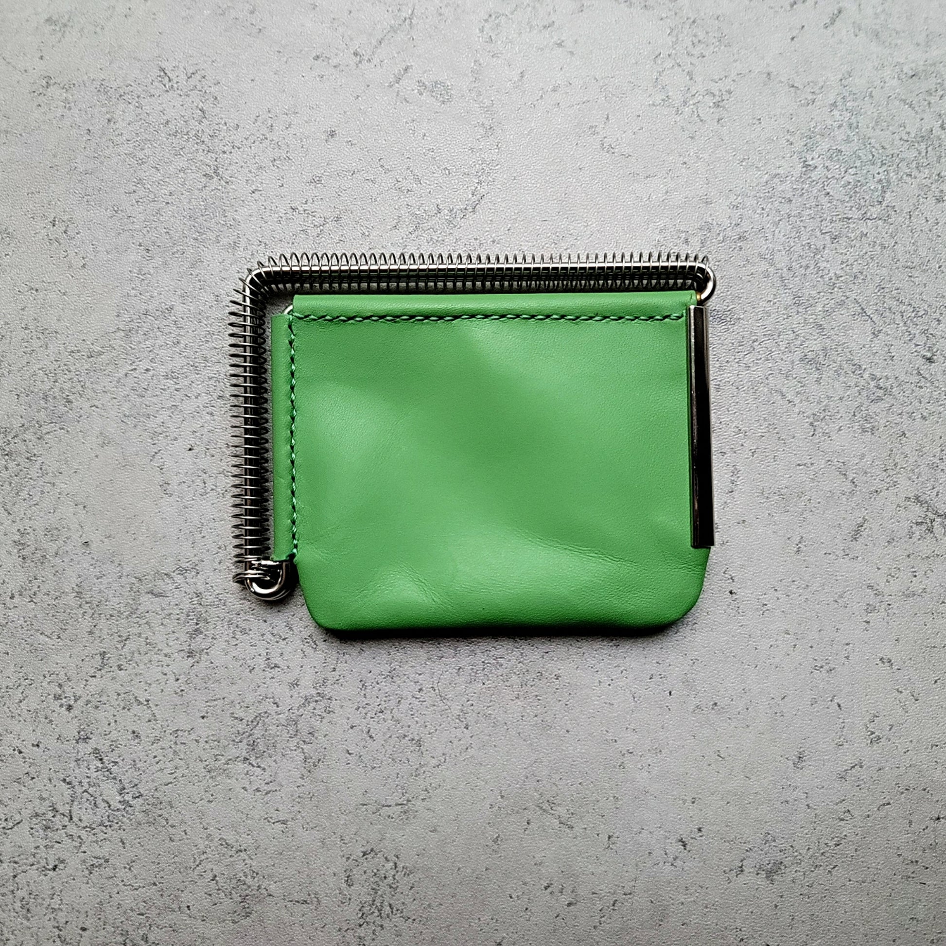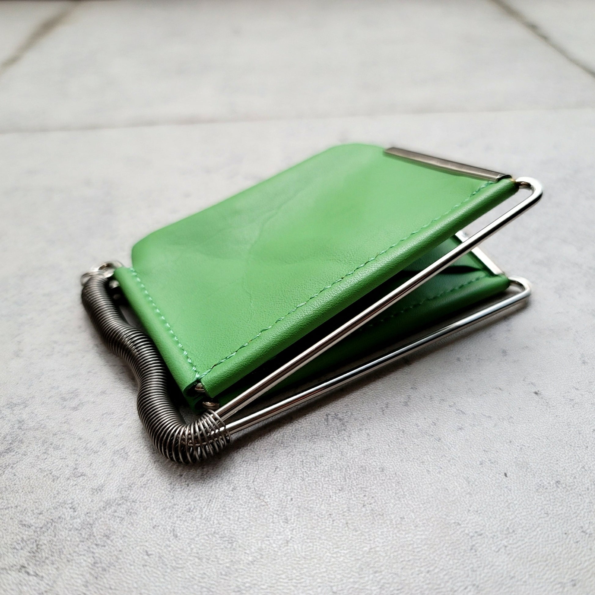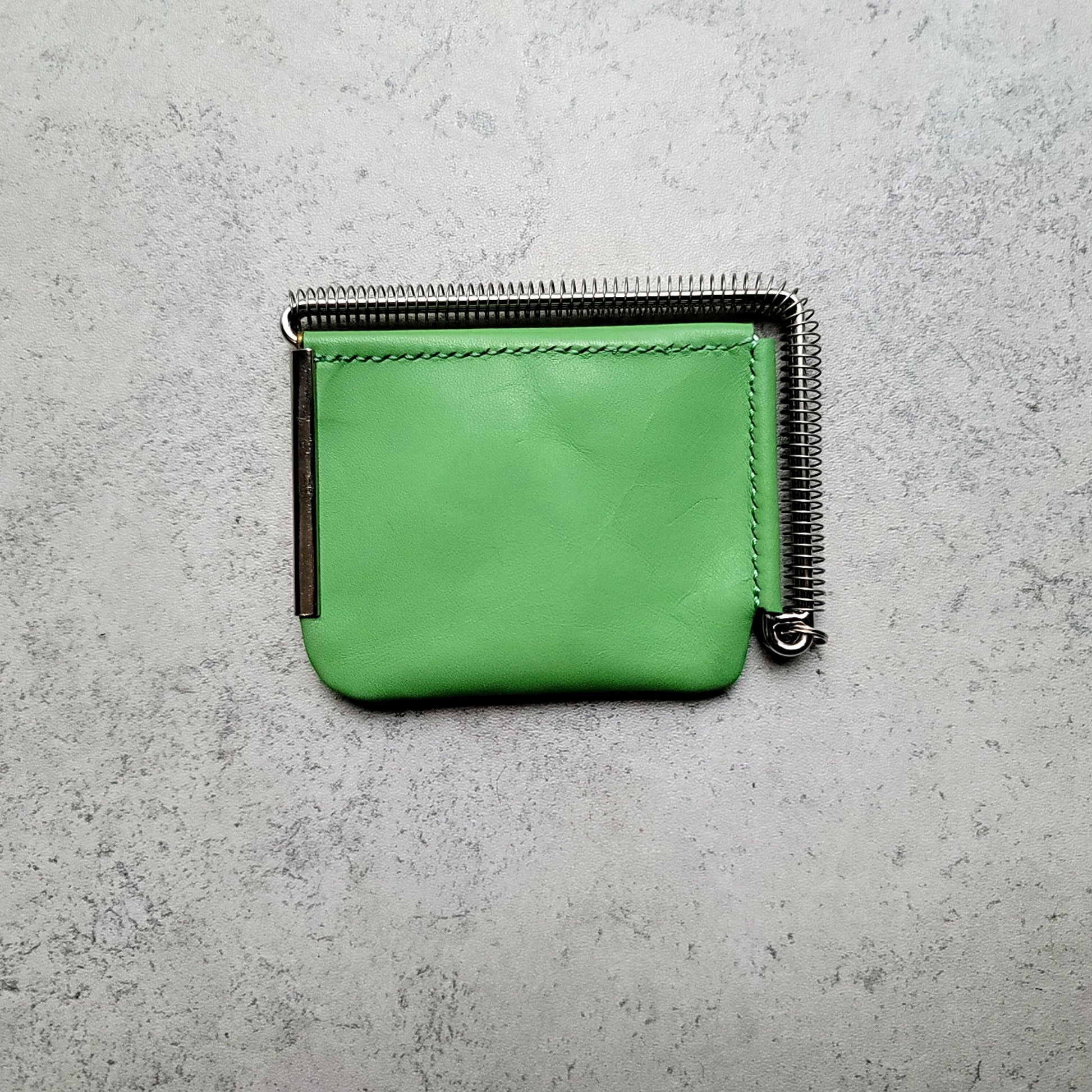 - A combination of L-shaped parts combined with a spring and metal frame and flat oil smooth cow leather that softens and softens with use. By sliding the spring, it can be opened, and when the frame is closed, it is automatically locked by the spring.