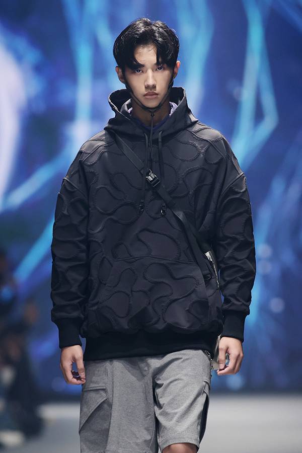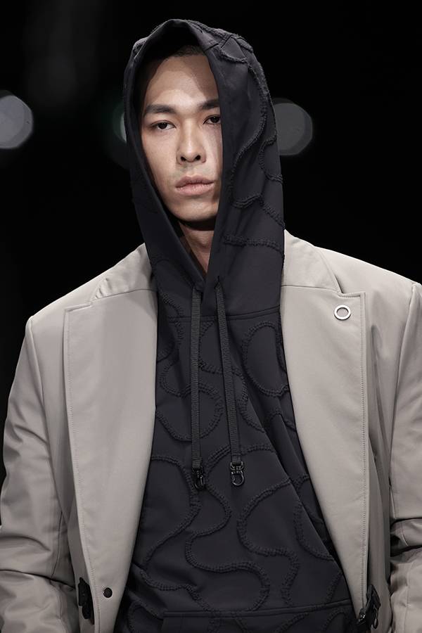 - 單品為寬鬆落肩的數據設定,連帽版型符合頭圍,做出更為立體的剪裁。將口罩鍊概念帶入抽繩,以WJ勾扣收尾,360度旋轉調節更能隨心所欲地配戴口罩