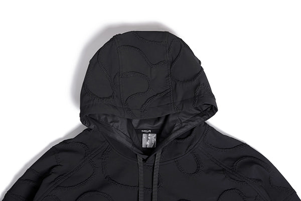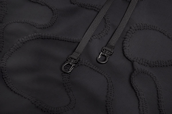 - 將CORDURA®軟殼衣材質與台灣頂級刺繡絎縫技法結合,皺縮的線條是對於水波紋的呈現
