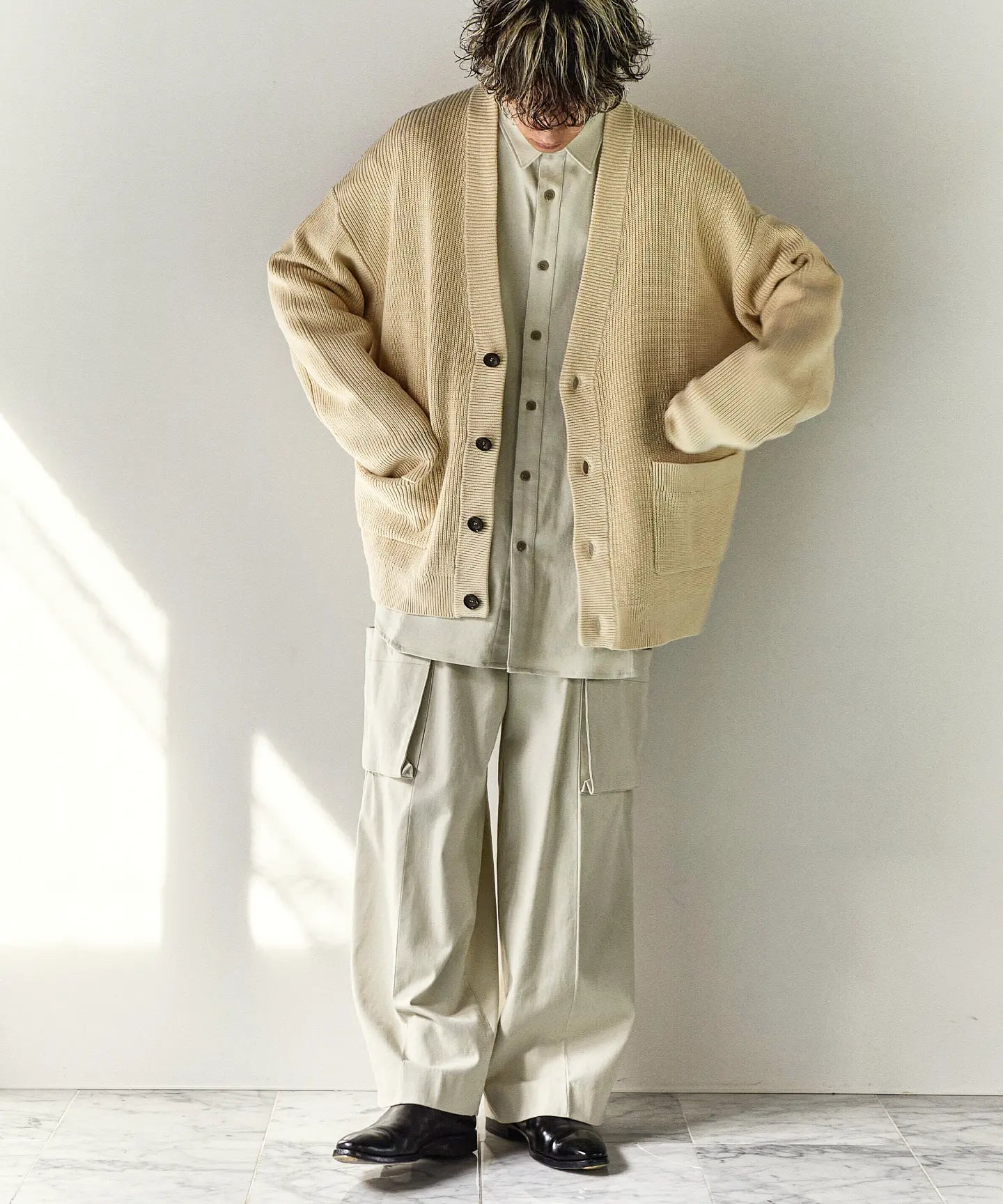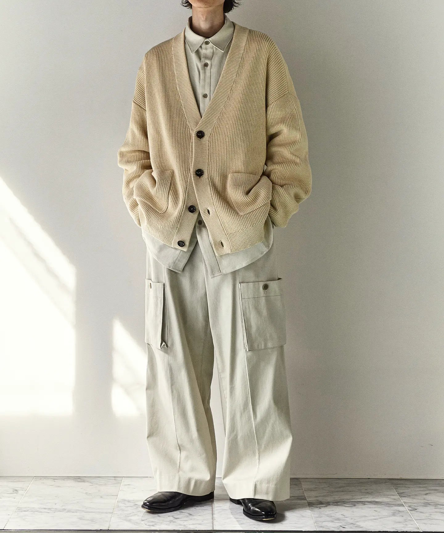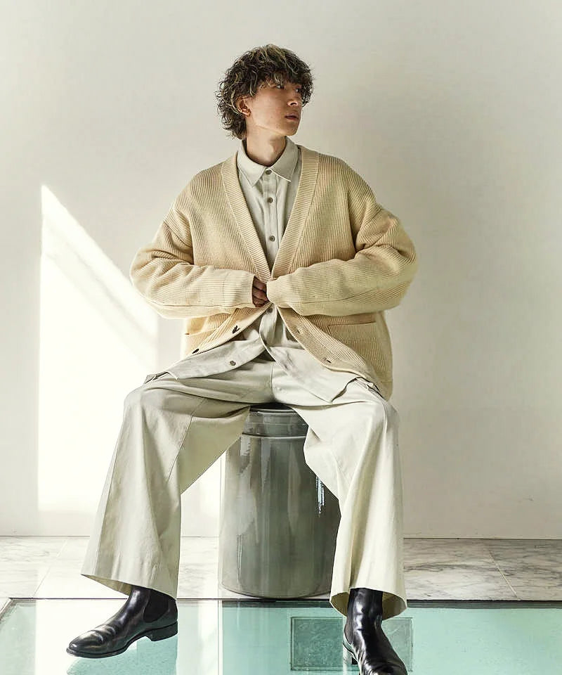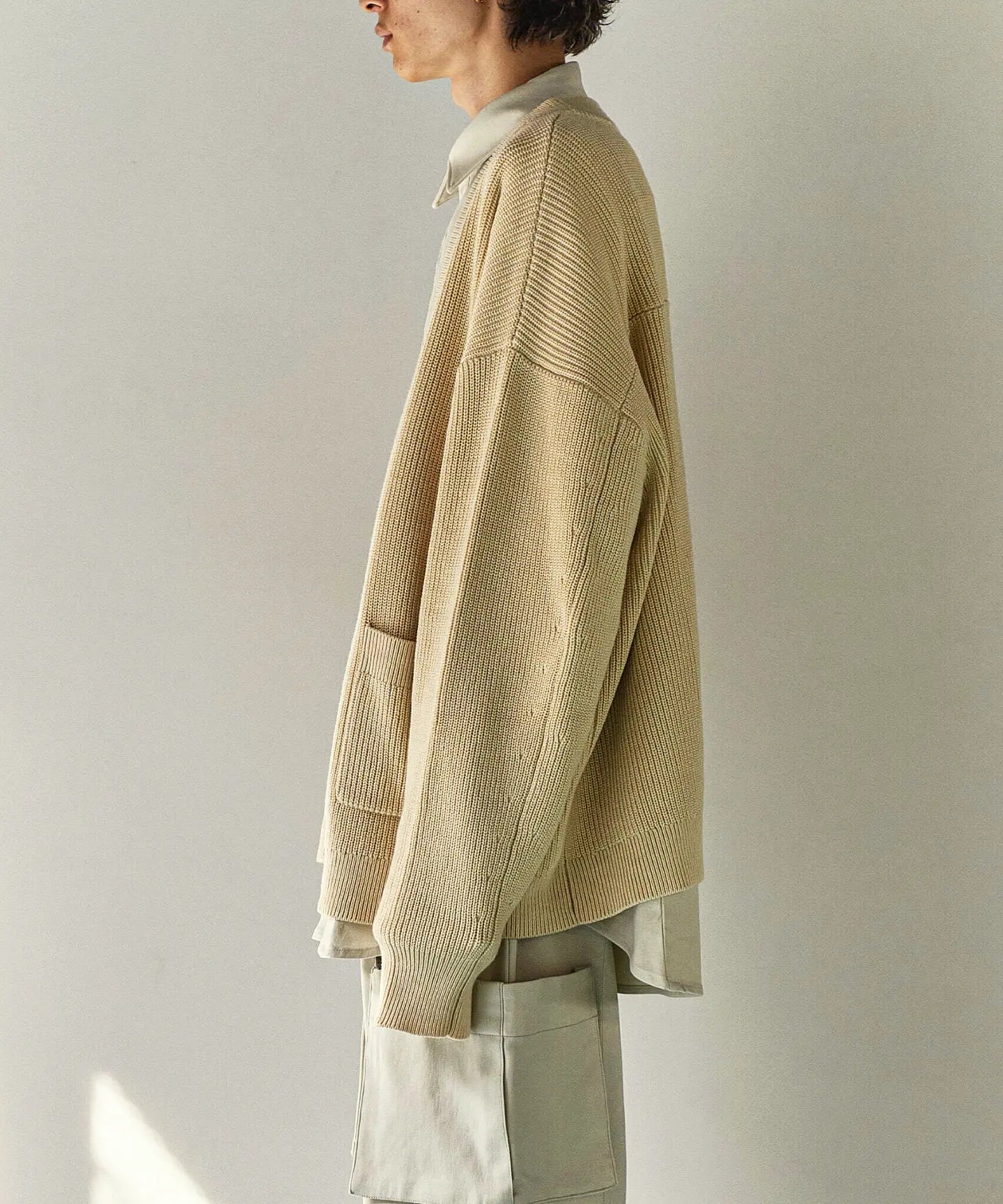 - One of the best Japanese cotton for a dense yet lightweight feel and elegant look. It has a relaxed fit with round and dropped shoulders. A special attention to the design with the ribbed neckline and side pocket to revisited this essential of the men’s wardrobe.