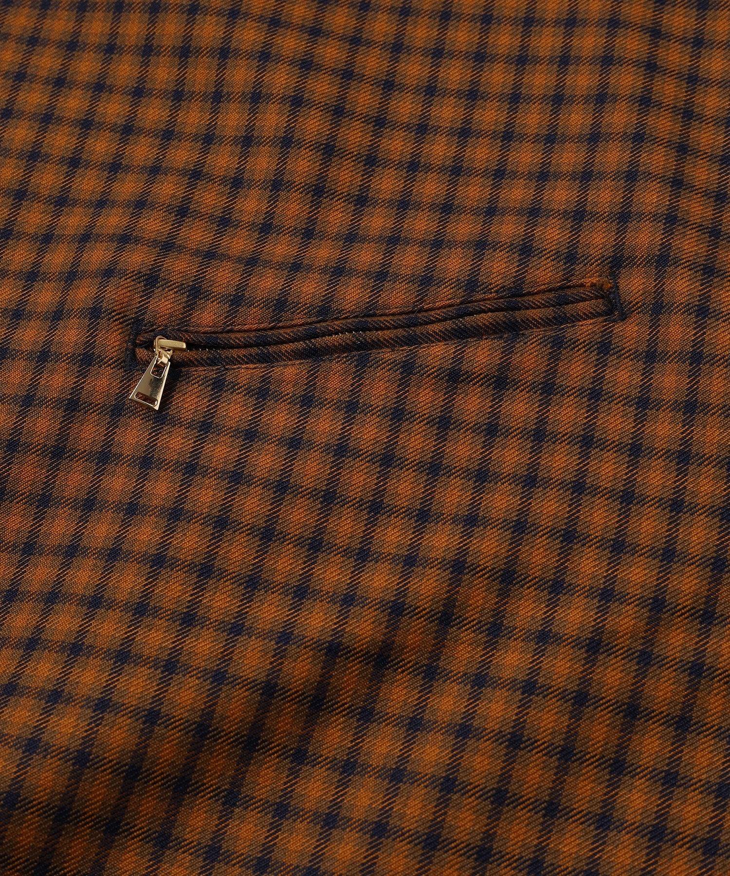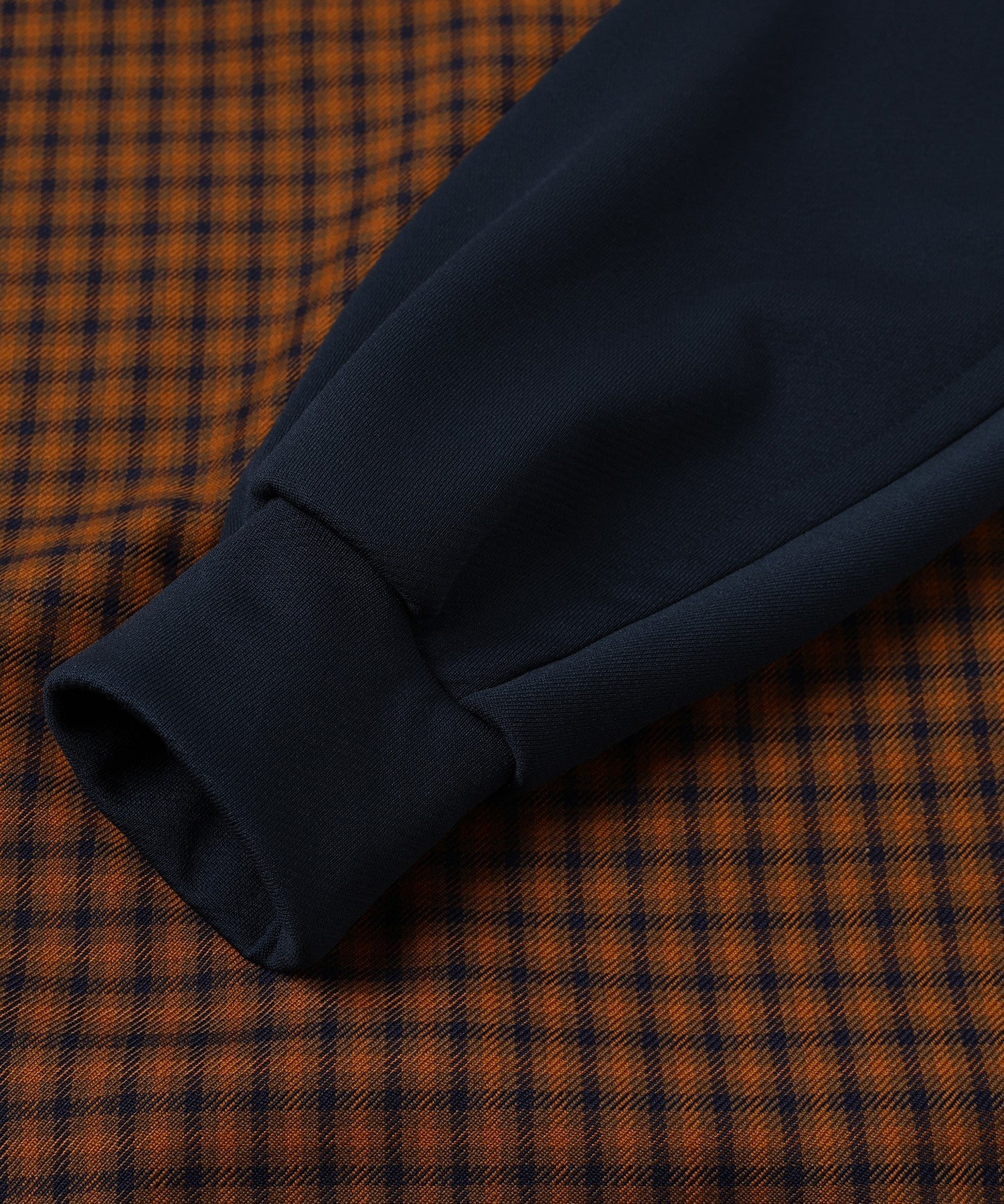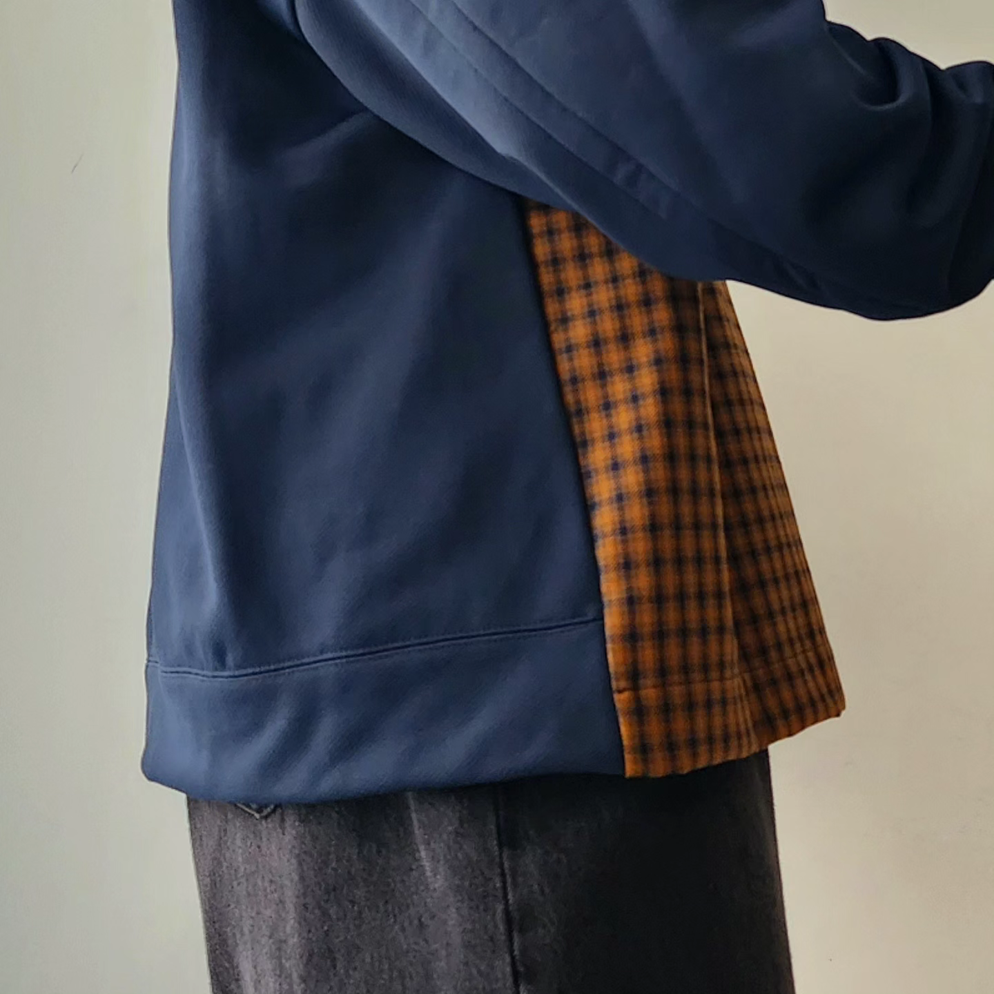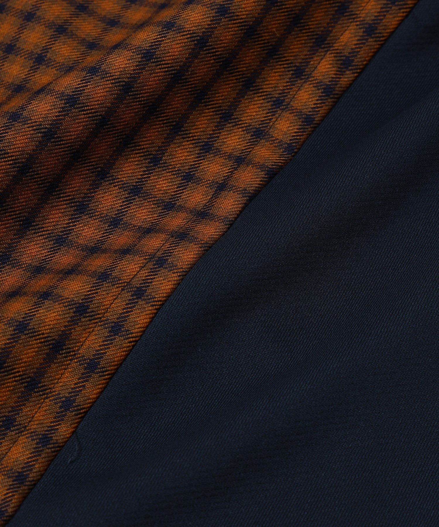-Combination design of gun club check made from Shetland and recycled polyester and puffy twill fleece.